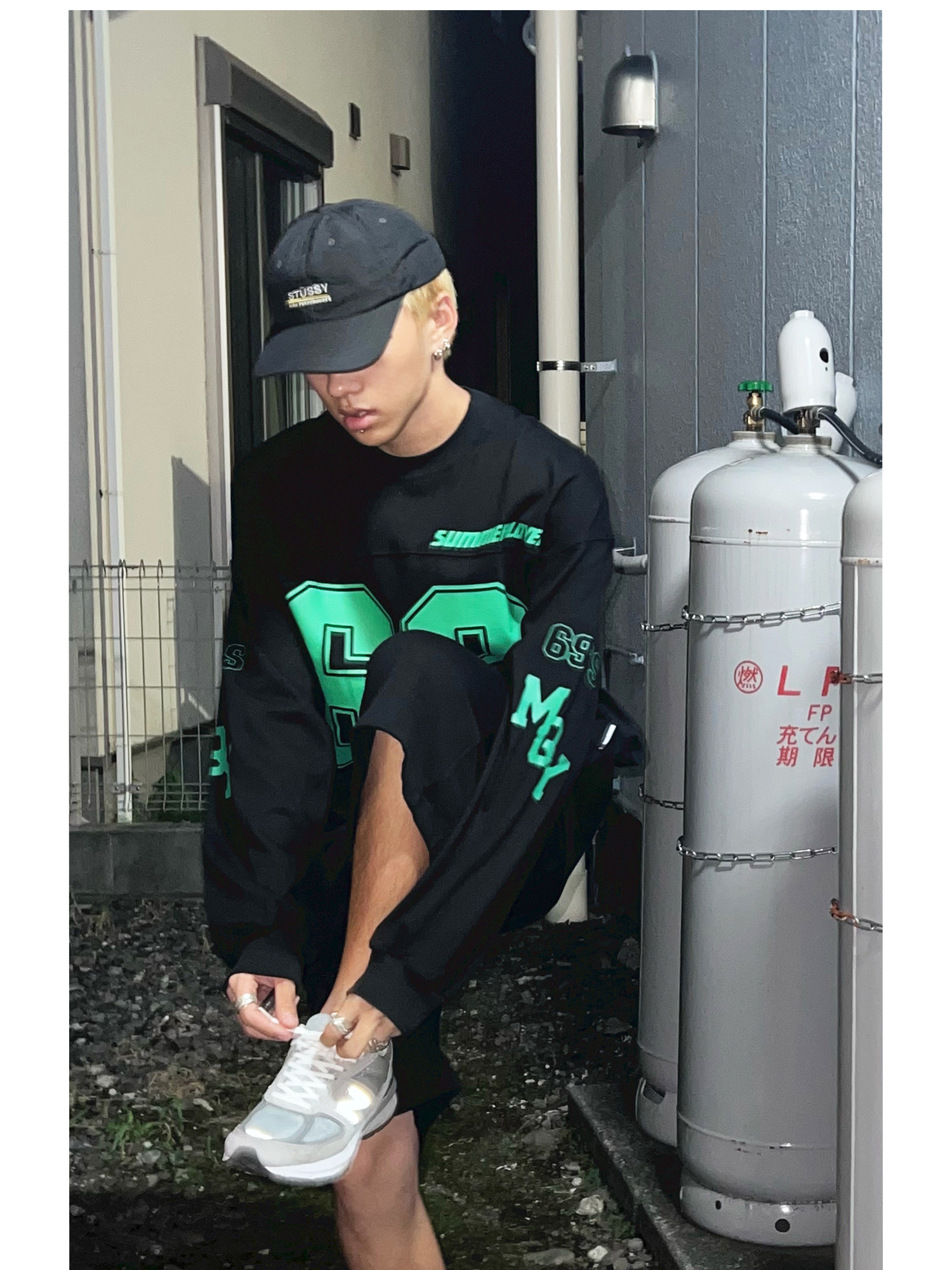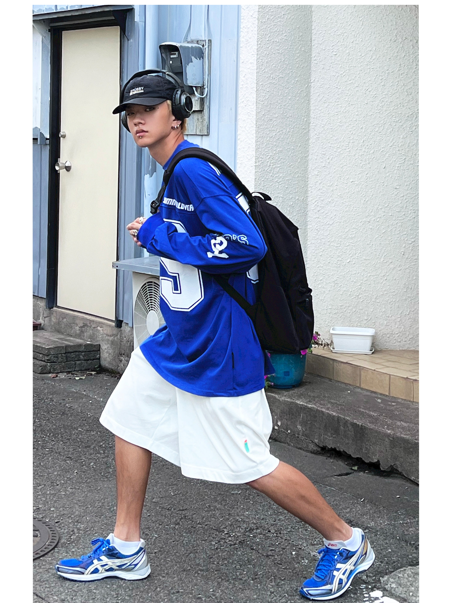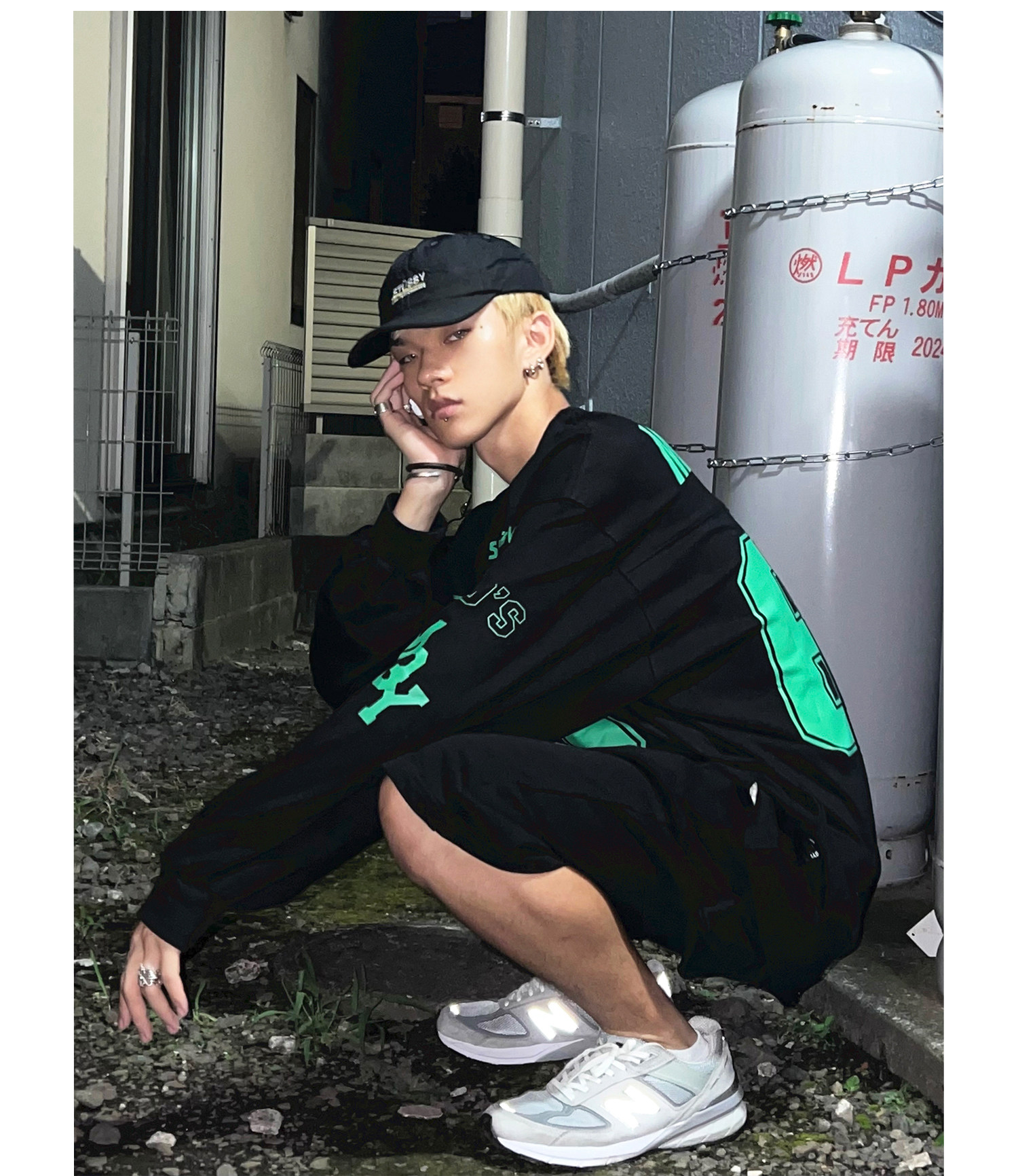 富士見 美式街頭字母印花厚棉T男寬鬆ins潮牌oversize長袖棒球T恤