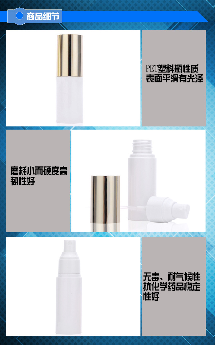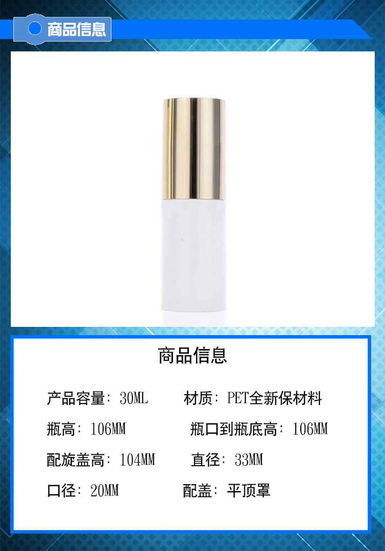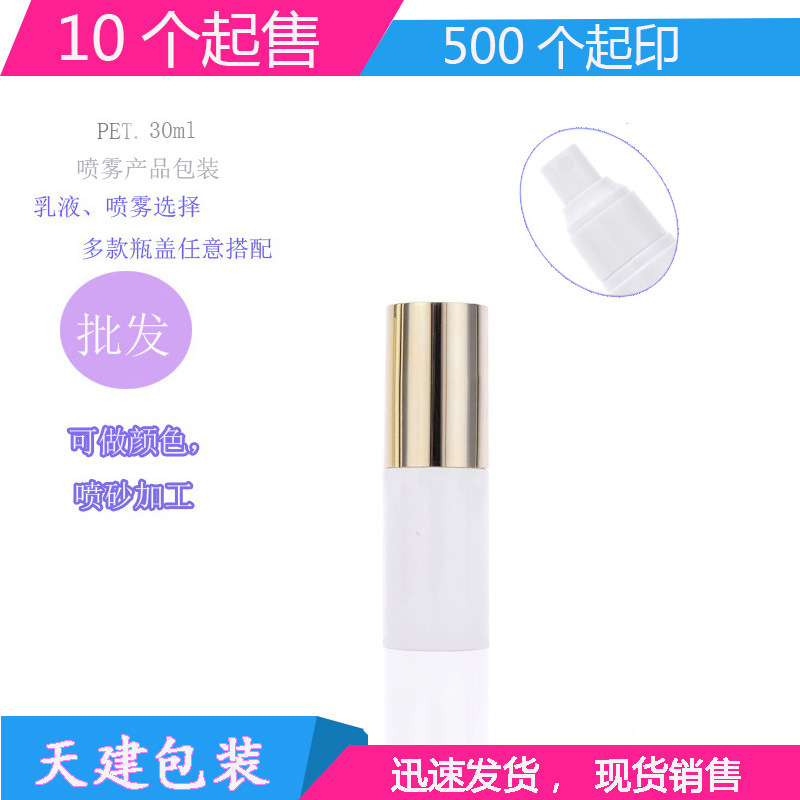 厂价直供30ml院装塑料瓶 PET喷雾瓶乳液瓶 电镀金盖瓶子 化妆品瓶