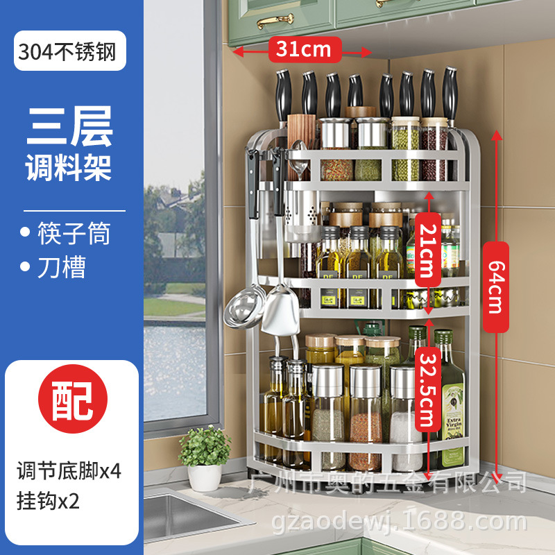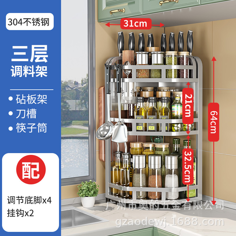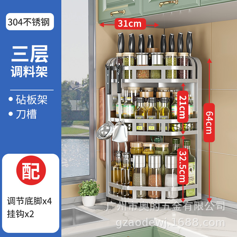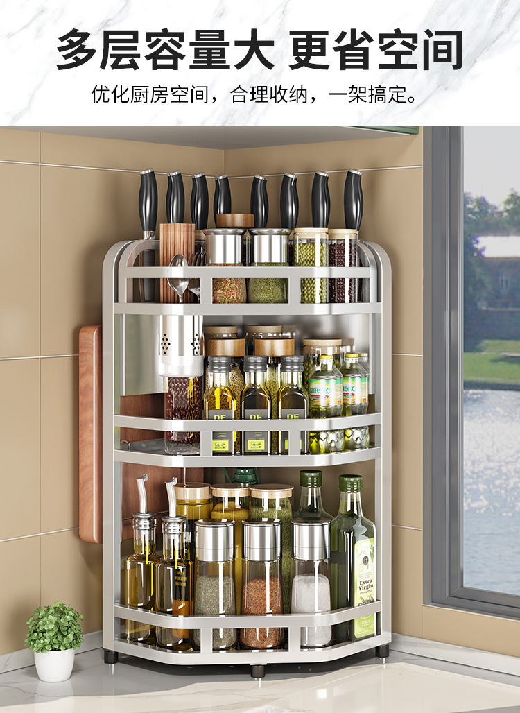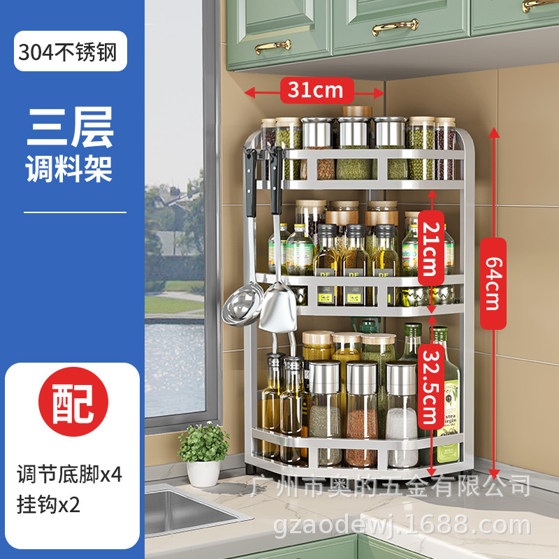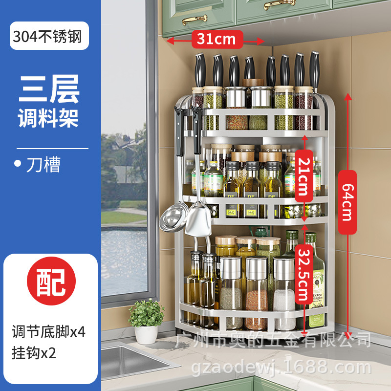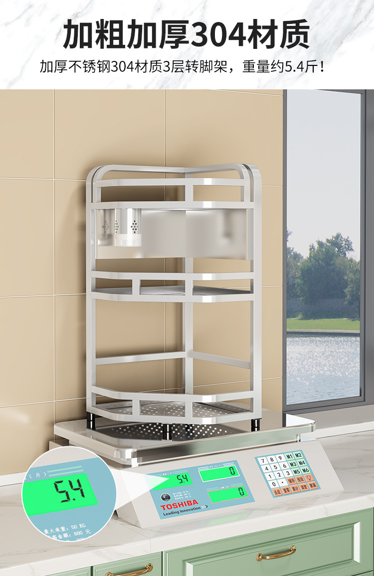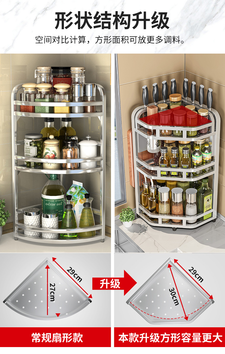 加粗304不锈钢厨房转角架三角置物架多功能台面调料调味品收纳架