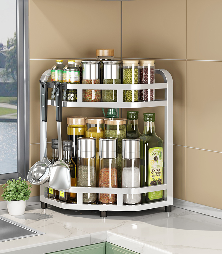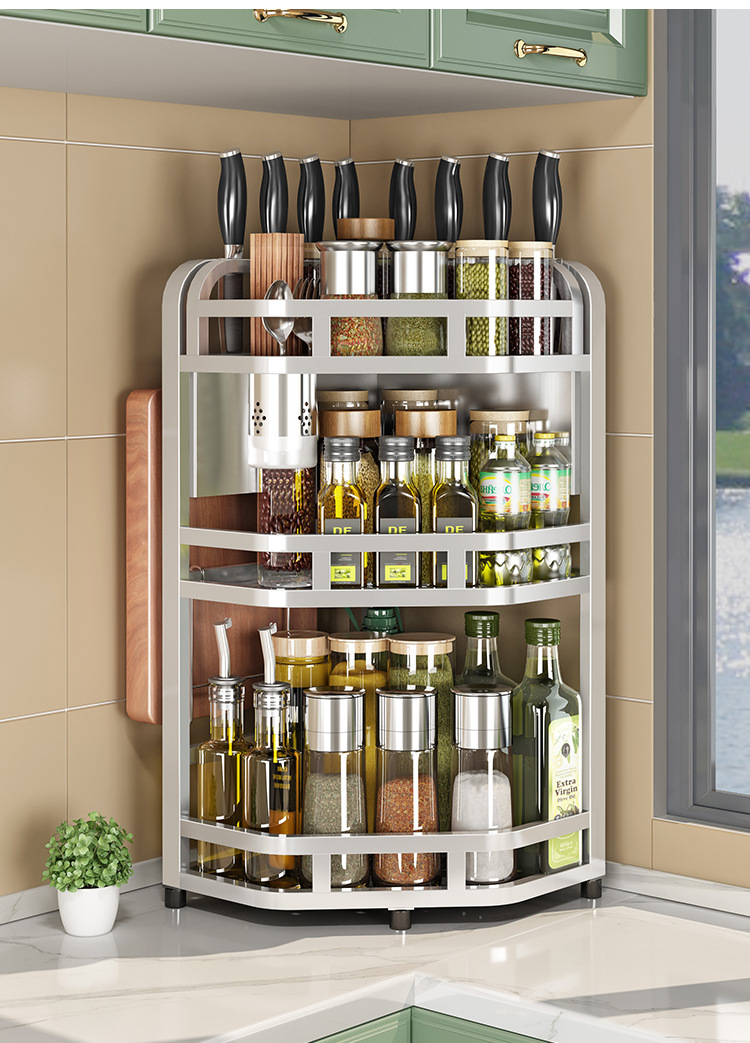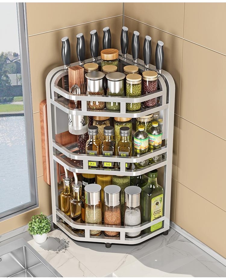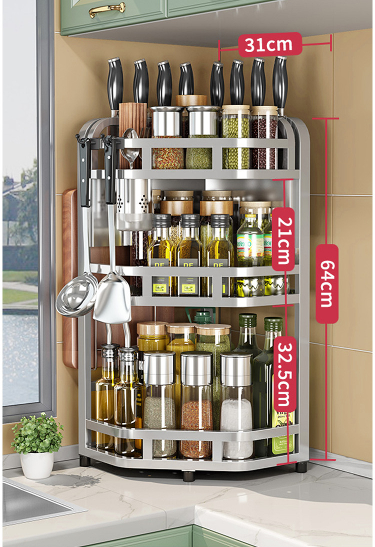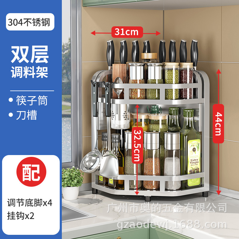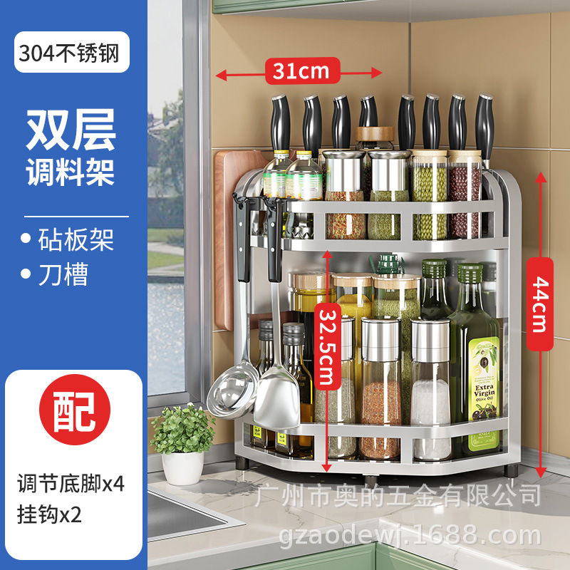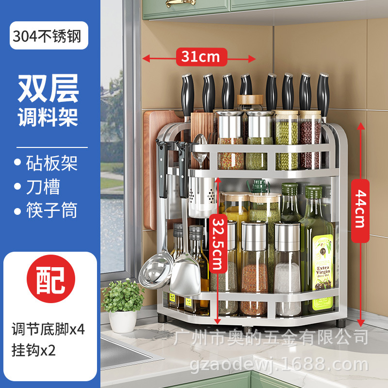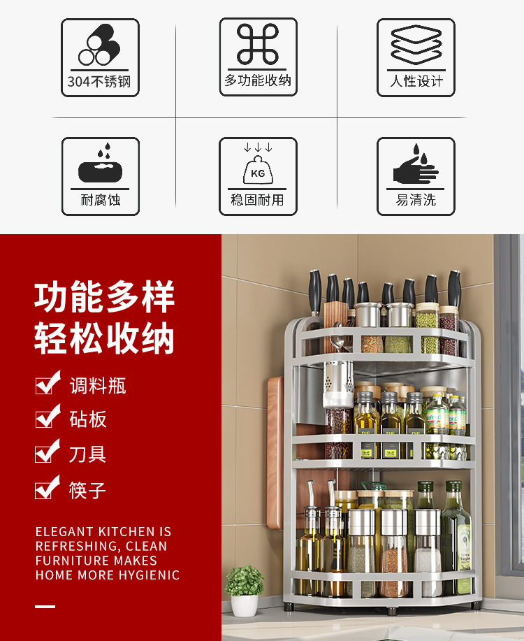 加粗304不锈钢厨房转角架三角置物架多功能台面调料调味品收纳架