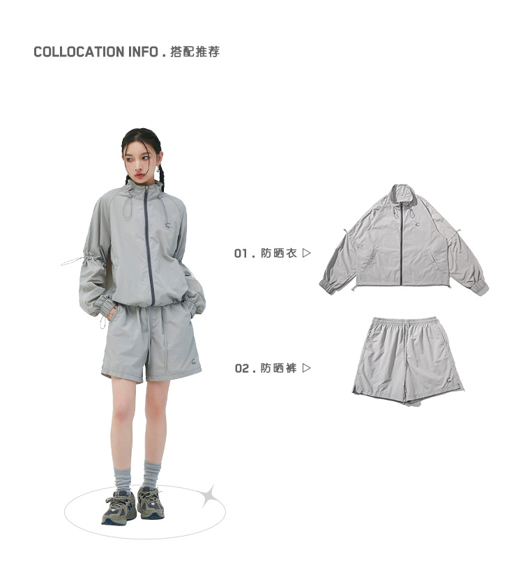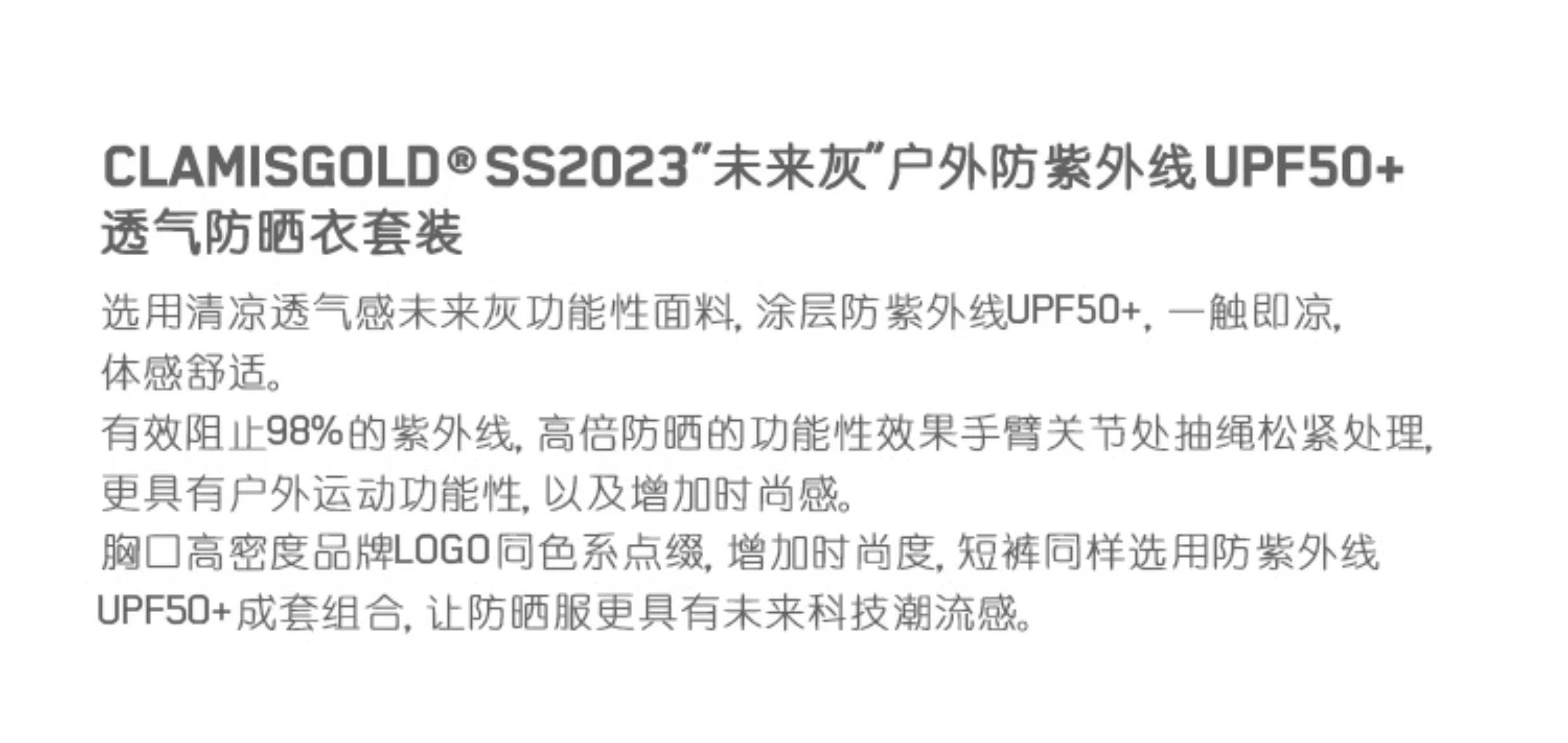 CLAMISGOLD“未來灰”防曬衣套裝UPF50+騎行服戶外運動薄款衝鋒衣