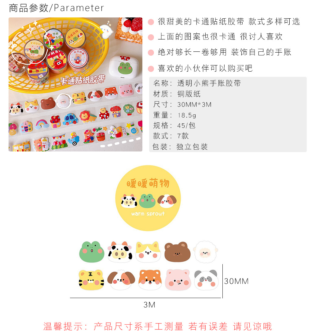 腾亿优品透明小熊胶带创意手账索引贴学生贴纸ins风diy装饰贴画潮