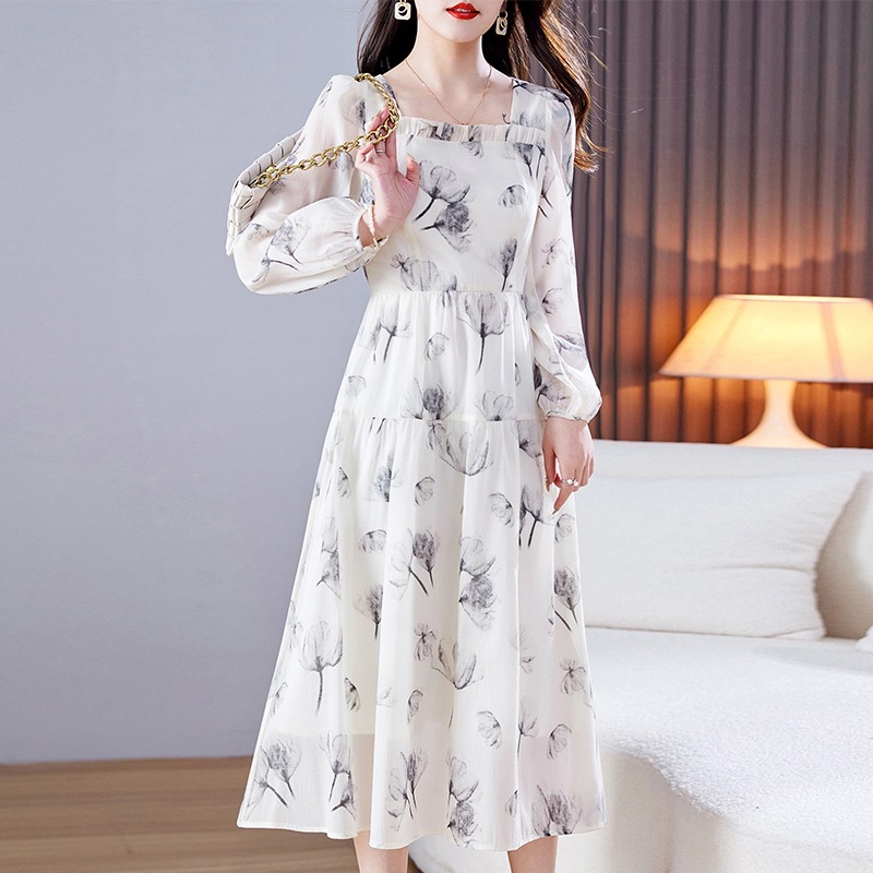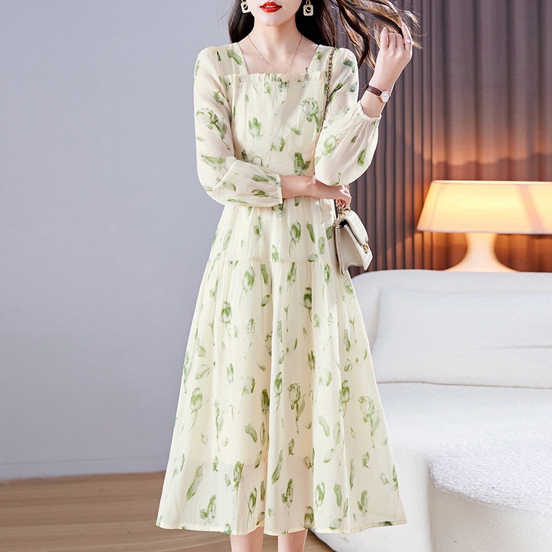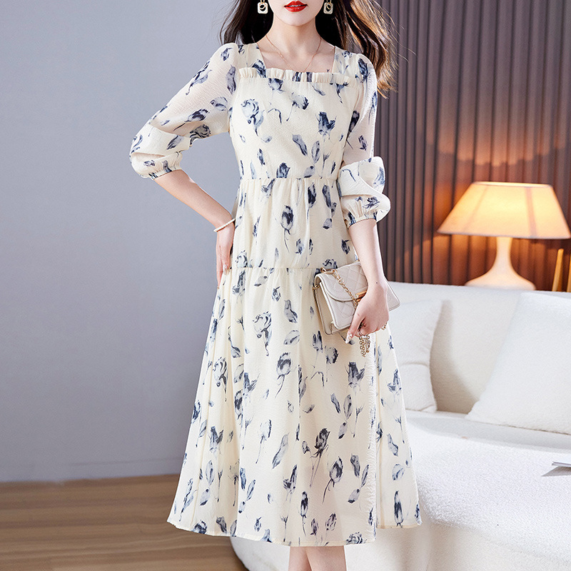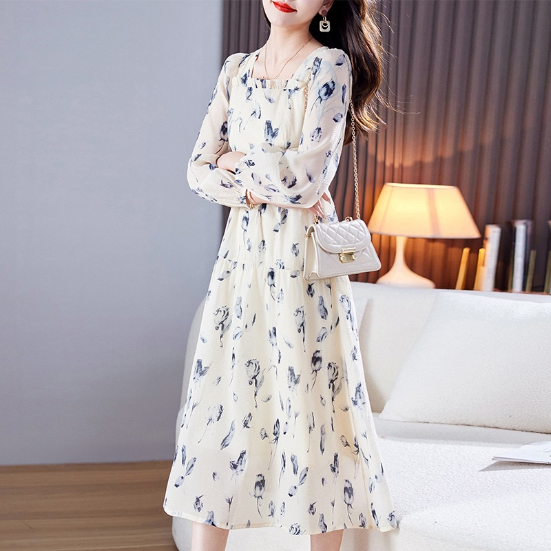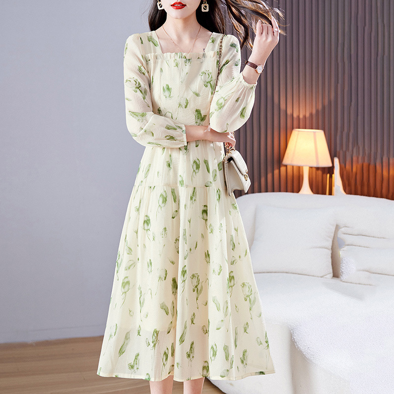 雪纺碎花连衣裙女春2023新款气质女神范时尚设计感精致小香风裙子
