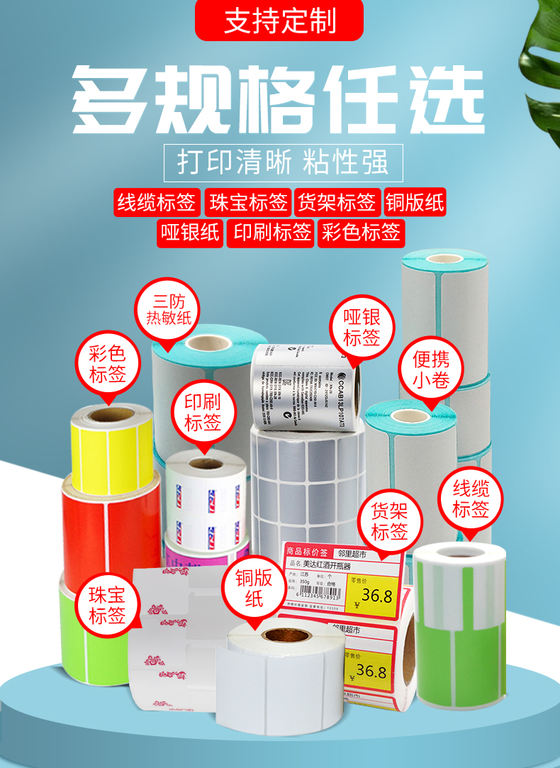 卷筒不干胶标签亚银透明防水PVC热敏纸铜版纸合成纸彩色标签