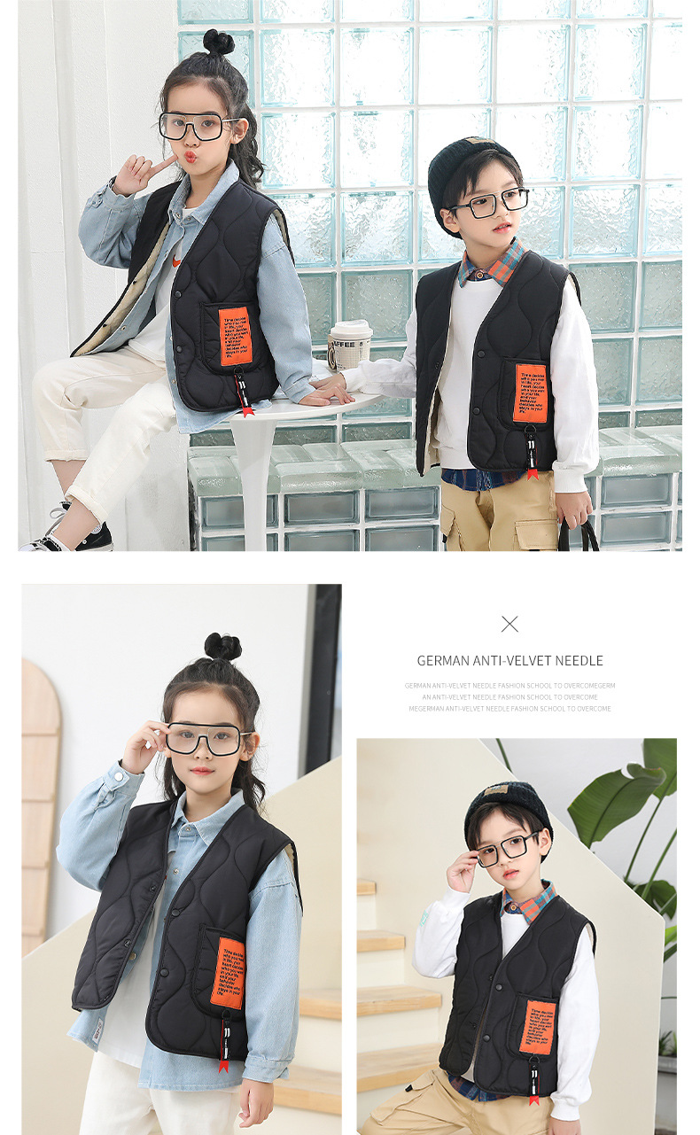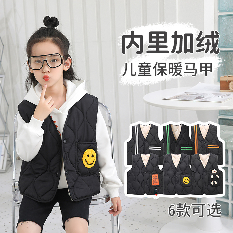 背心秋冬加绒加厚外穿外套女童男童坎肩童装上衣开衫儿童保暖马甲