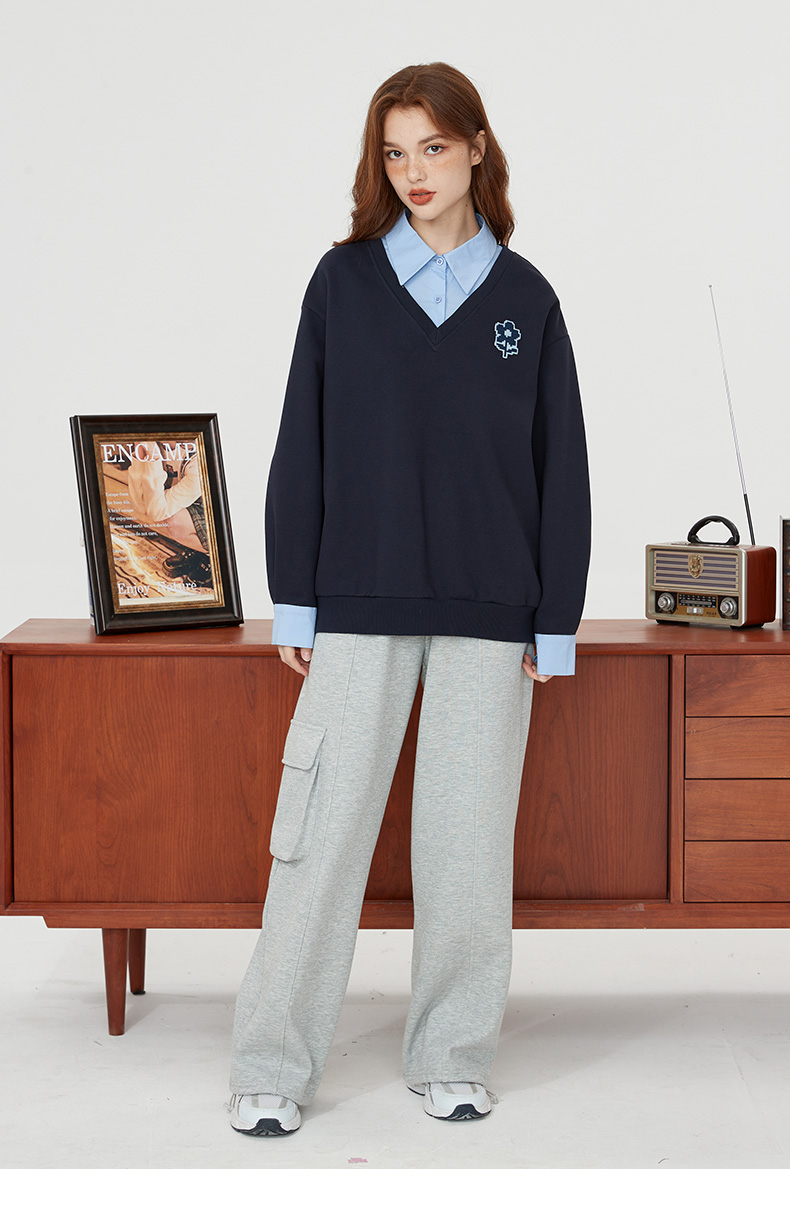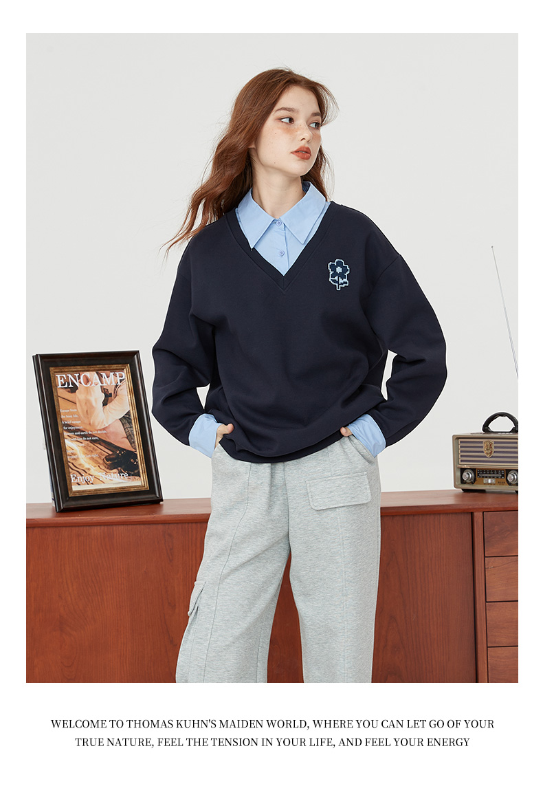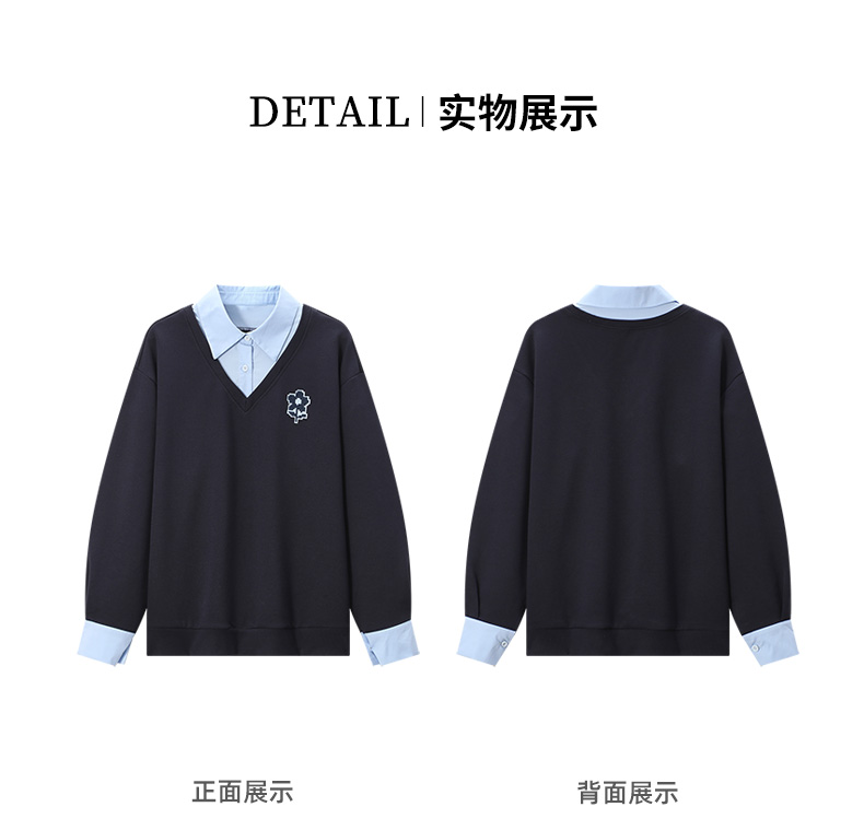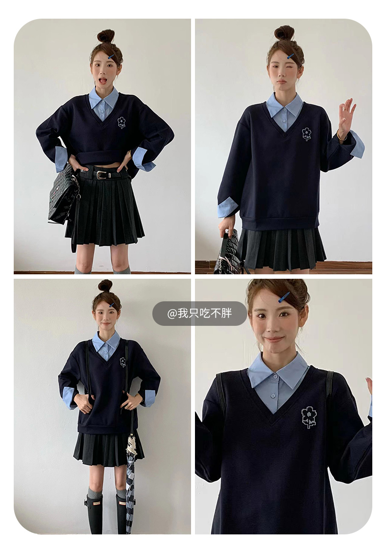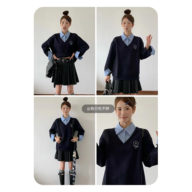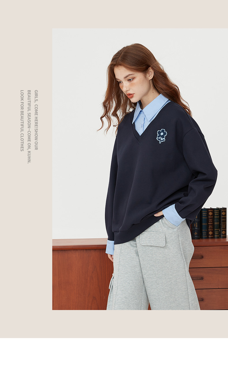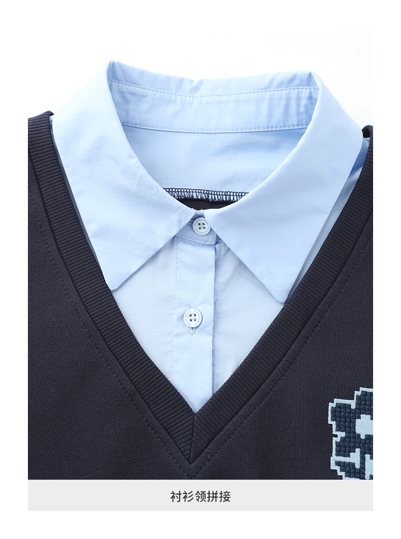 【新風尚】庫恩瑪維學院風假兩件衛衣女2023早秋新款拼接時尚上衣