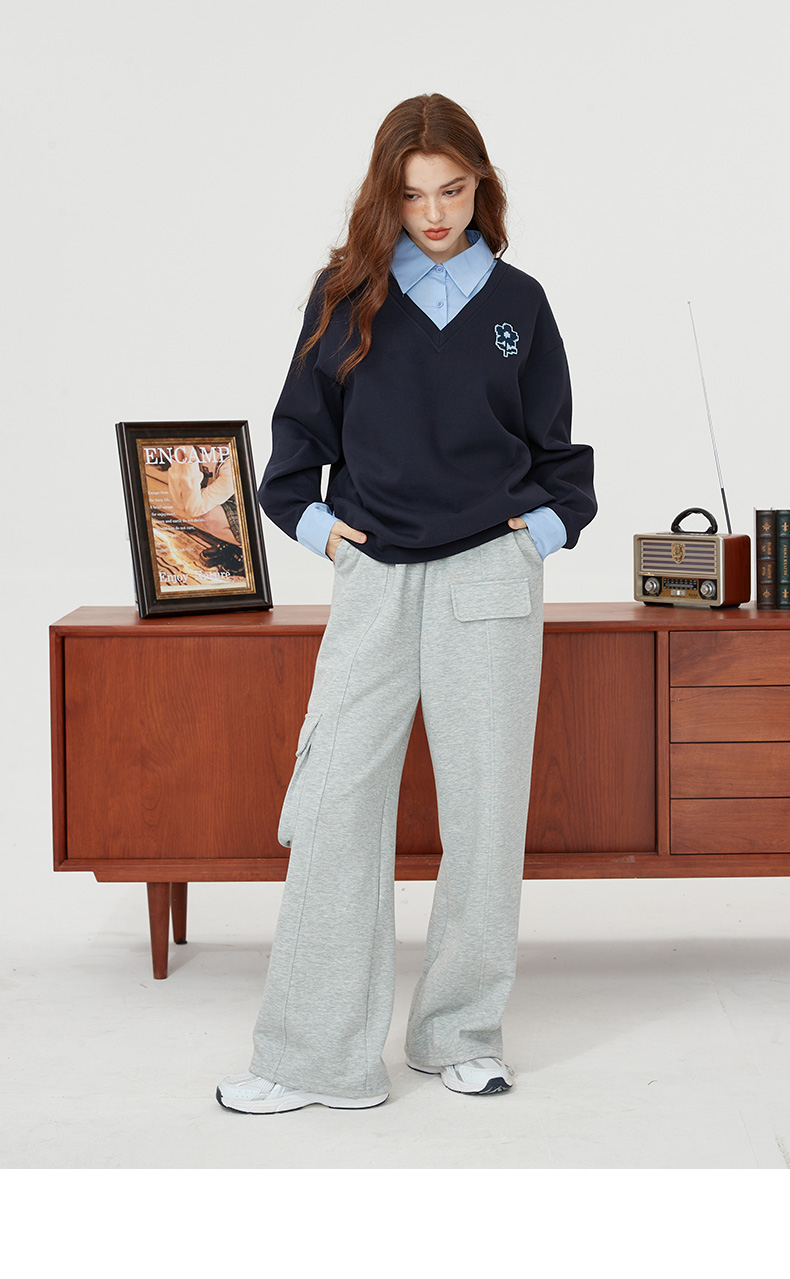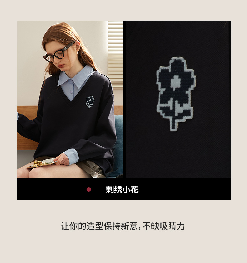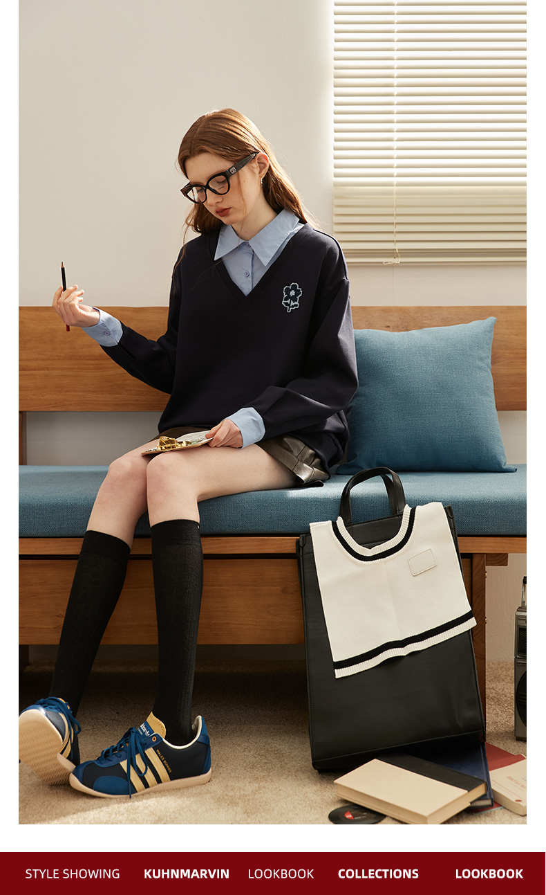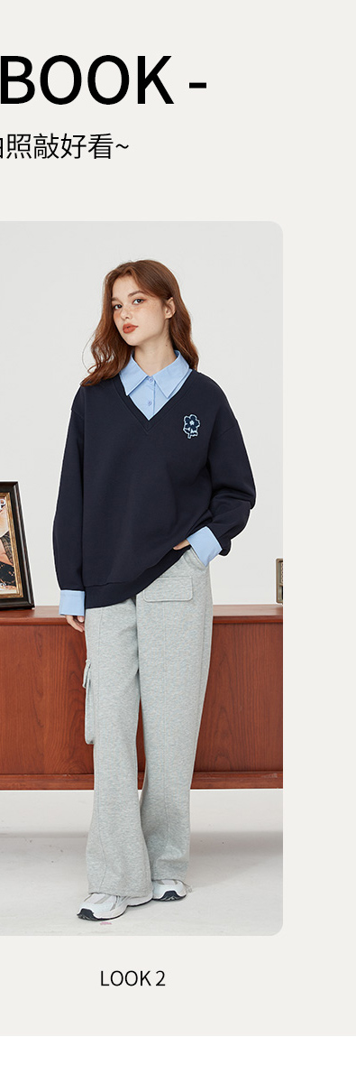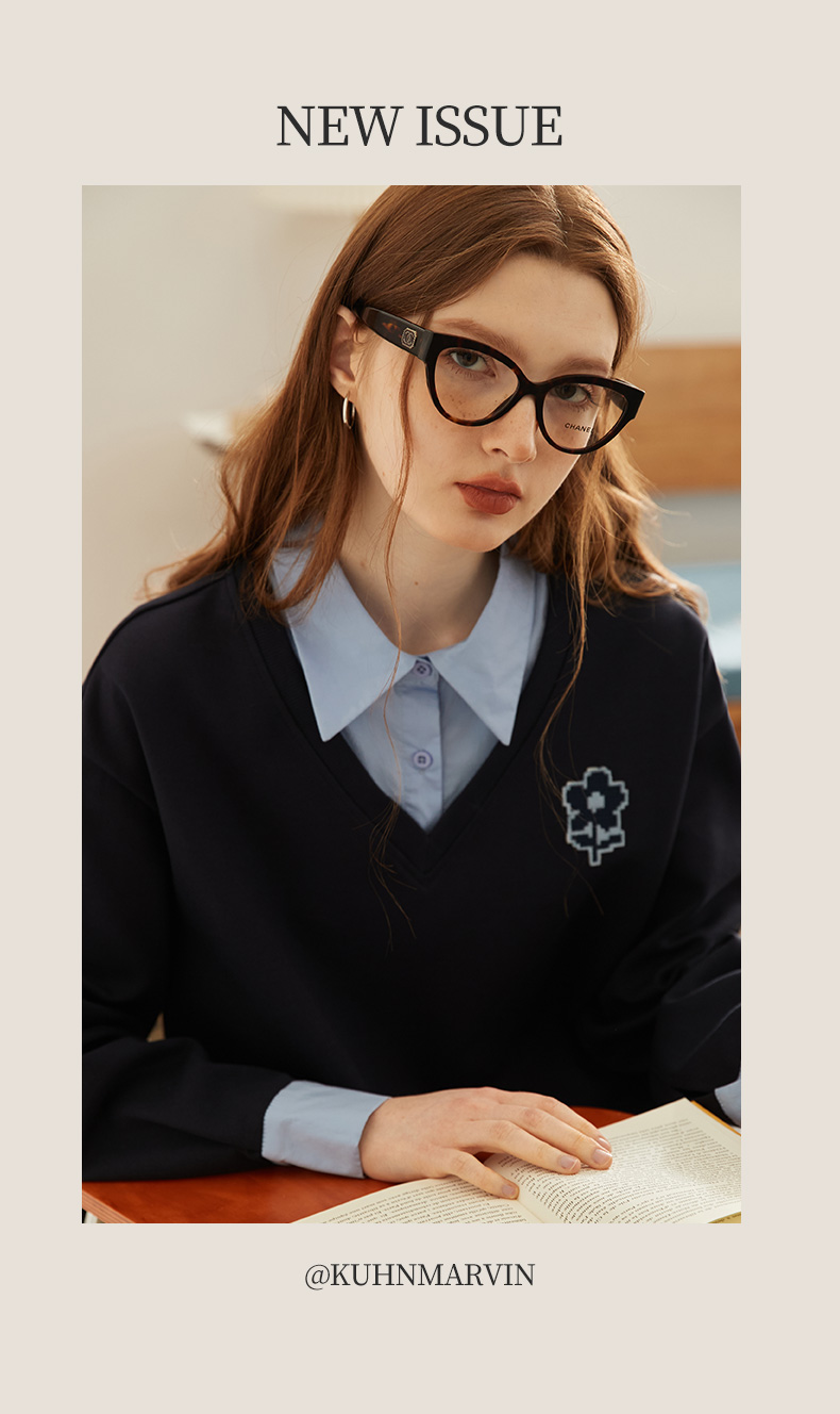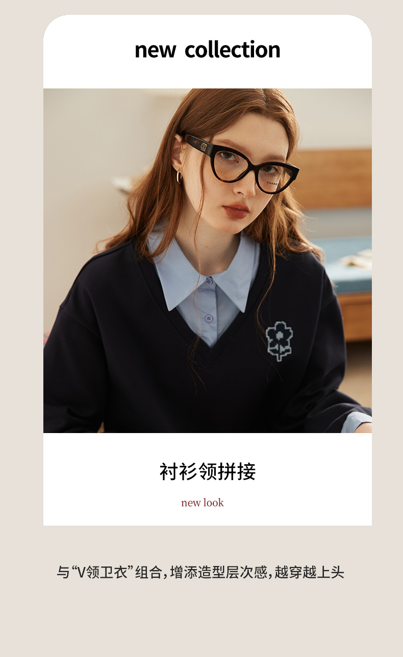 【新風尚】庫恩瑪維學院風假兩件衛衣女2023早秋新款拼接時尚上衣