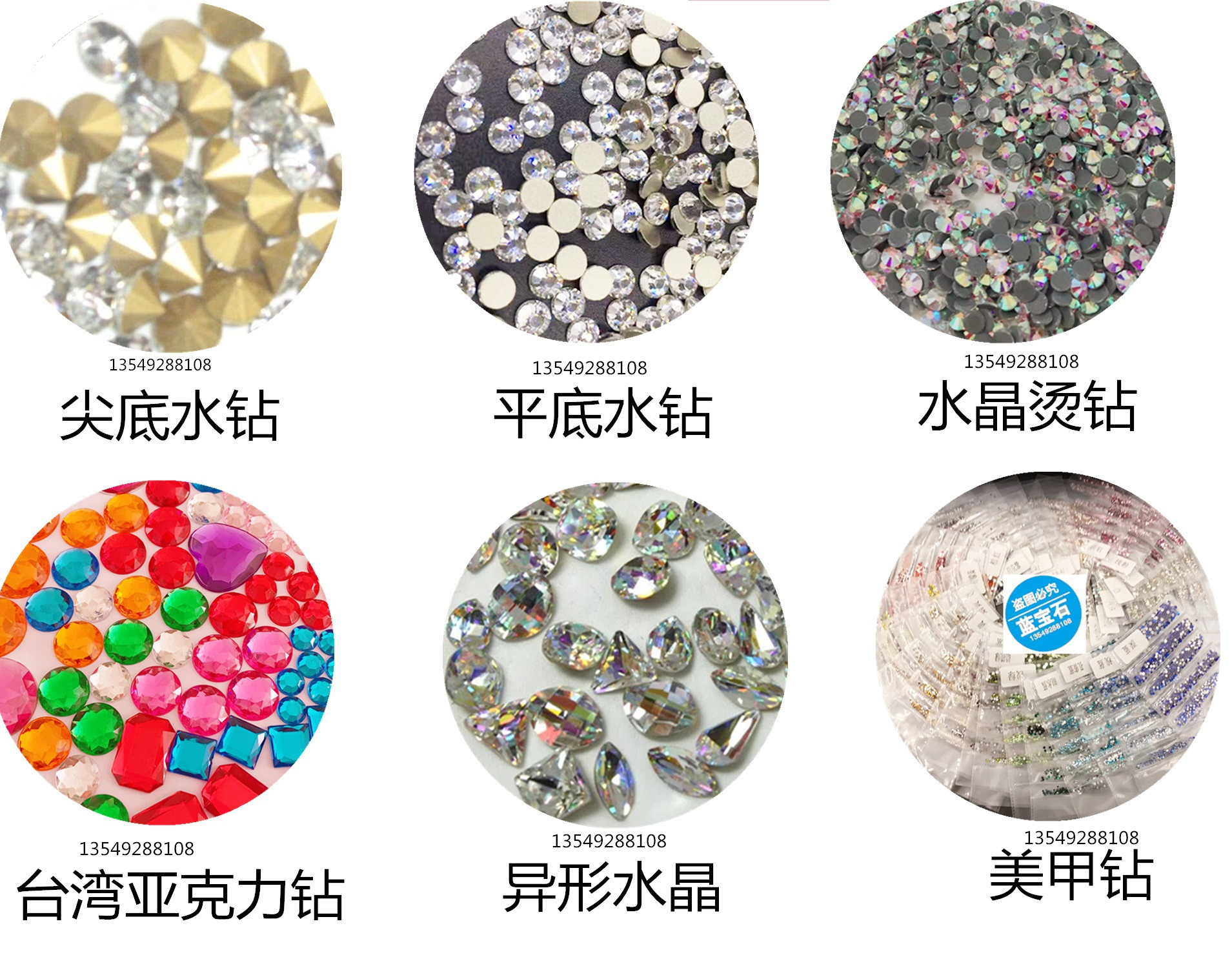 2; 尖底水钻 、平底水钻、烫钻(确定好规格,白色50粒 限3款)彩色最少需要一包起,按大货单价收取