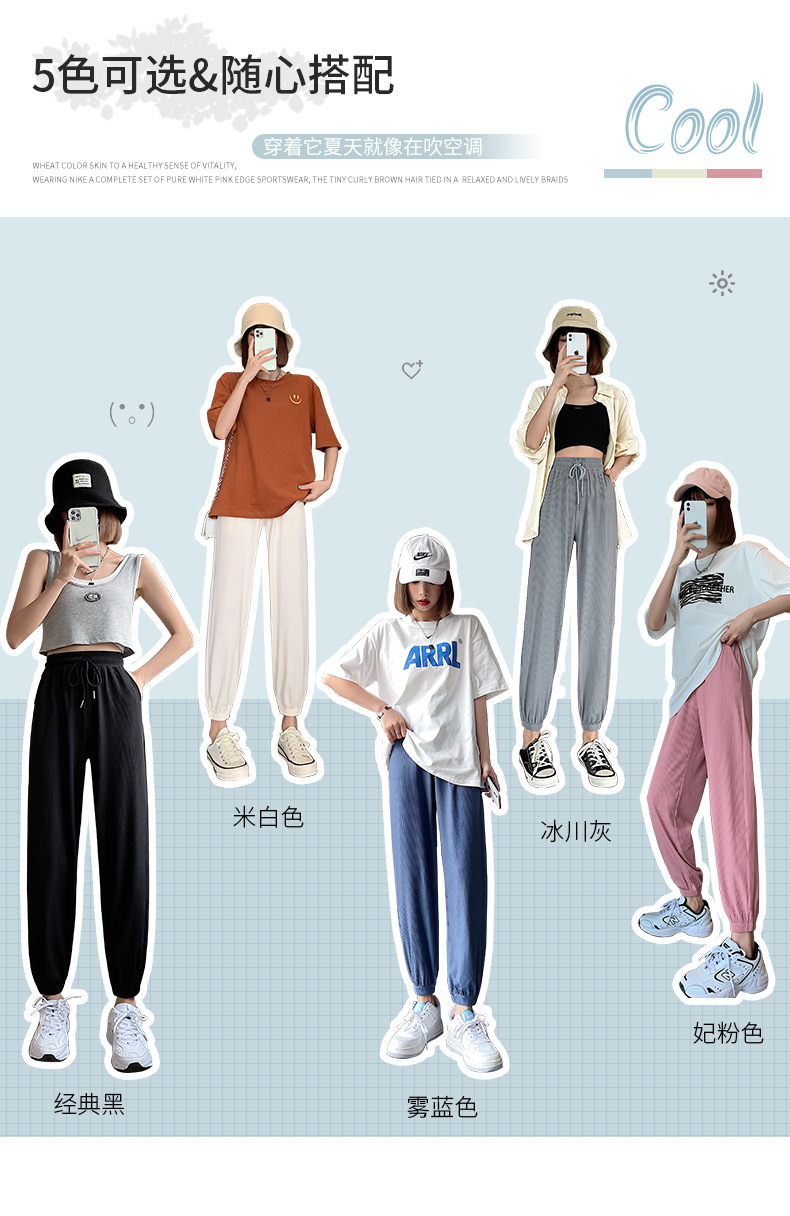 冰丝运动裤女宽松束脚2023夏季薄款显瘦仙女凉凉裤休闲哈伦防蚊裤