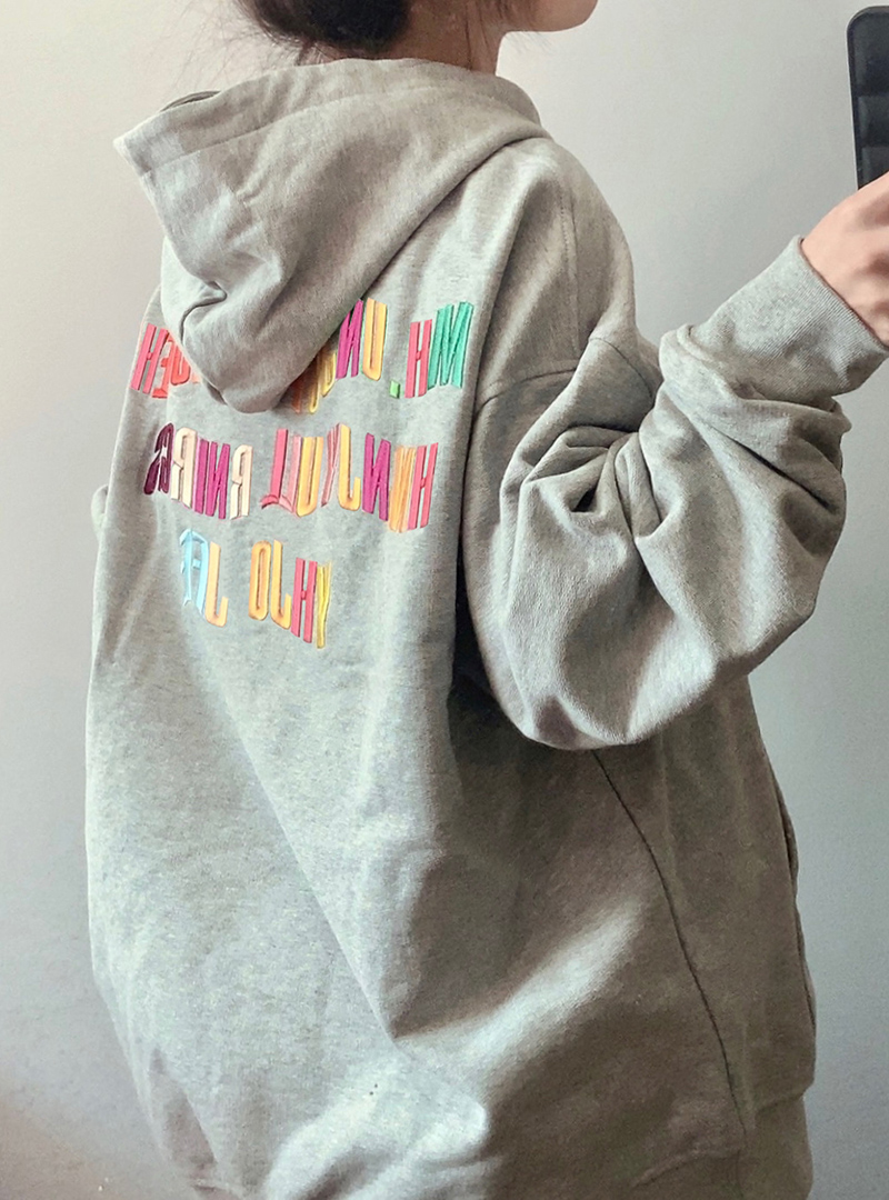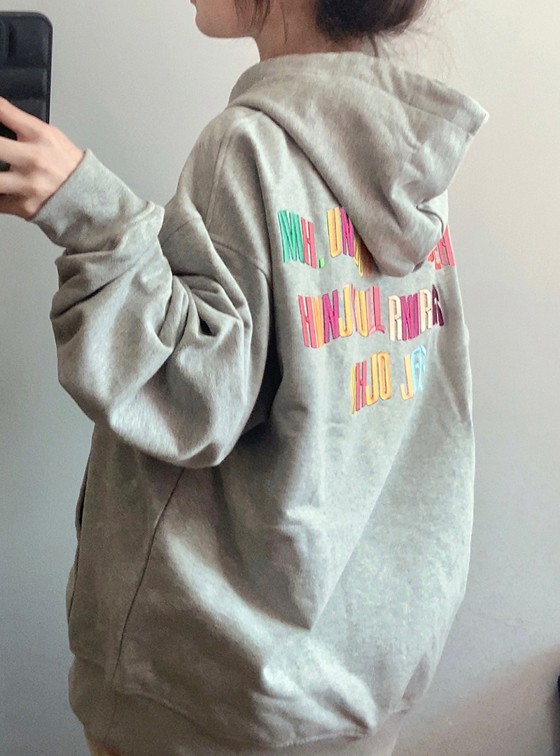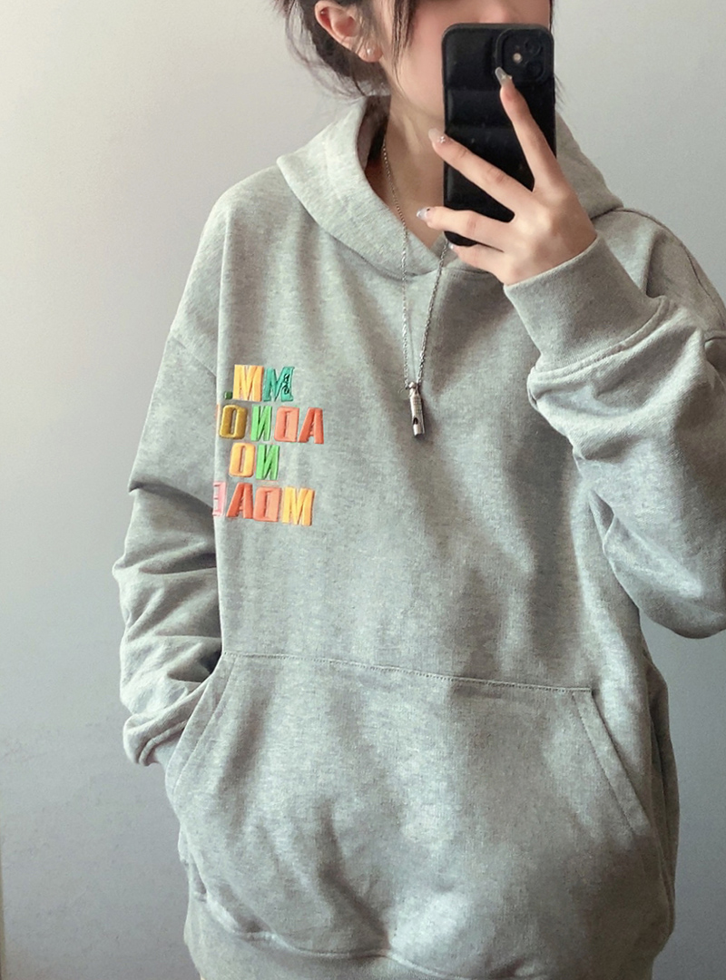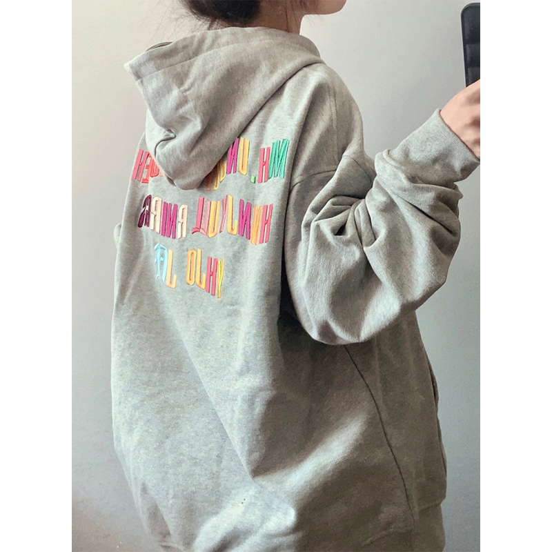 美式復古灰色厚棉T女春秋款2023新款寬鬆oversize小眾設計感外套