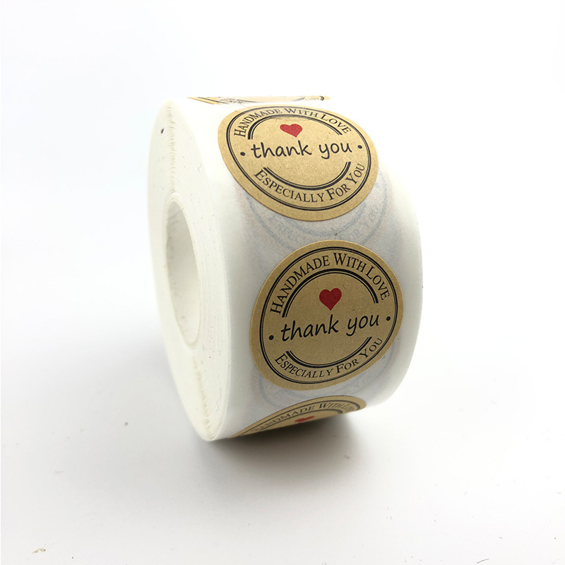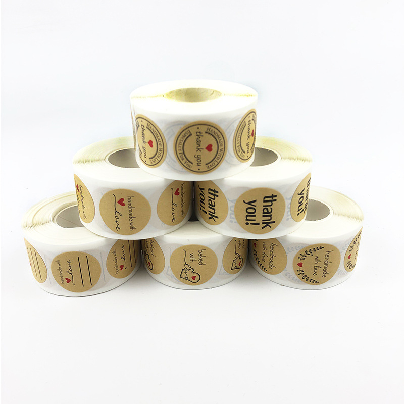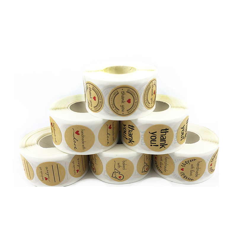 工厂直销牛皮纸不干胶标签 卷装牛皮纸不干胶感谢封口贴 500贴