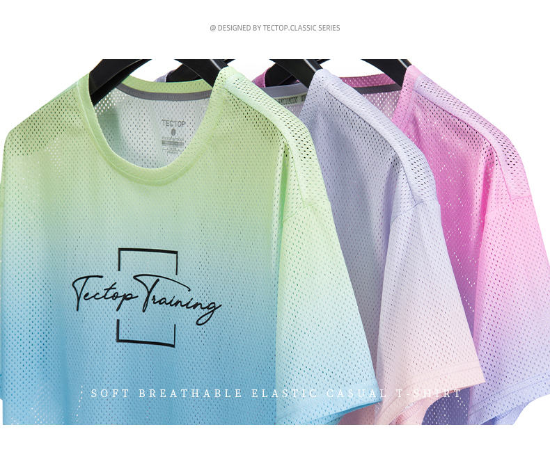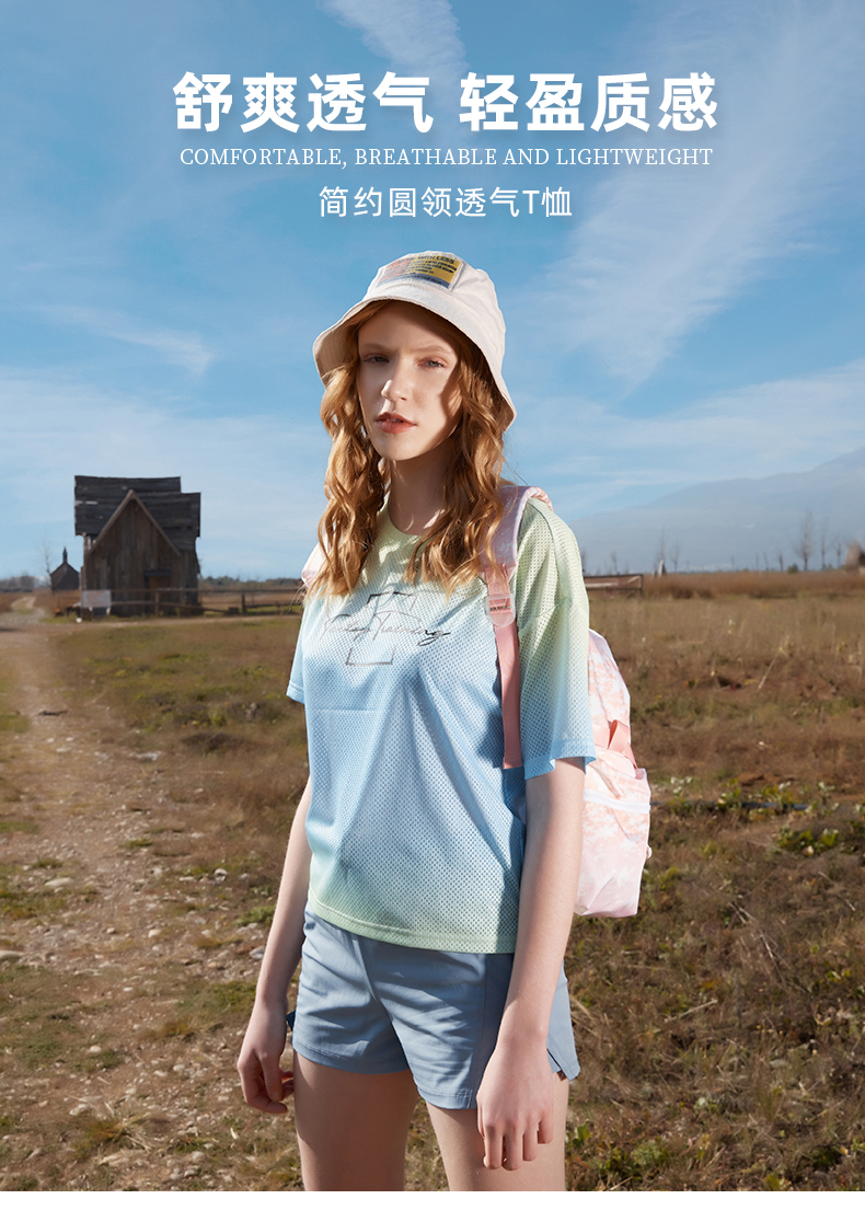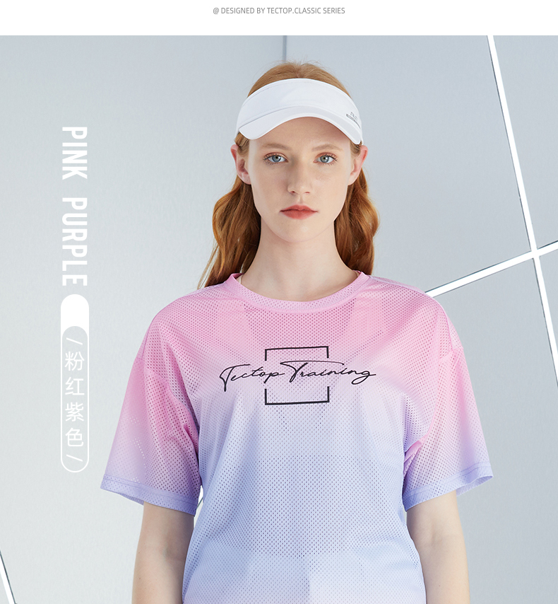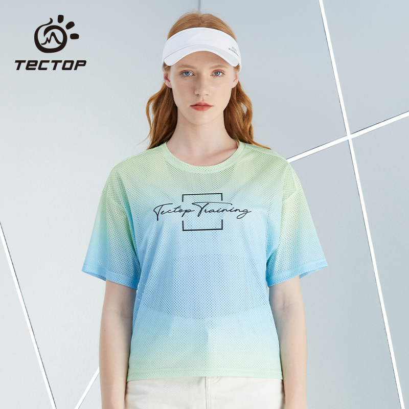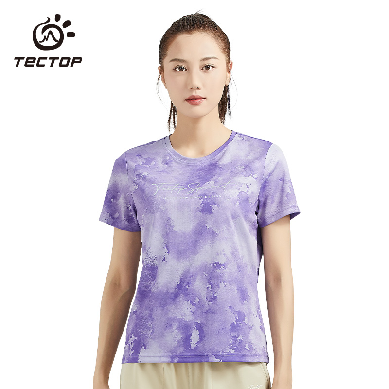 TECTOP探拓戶外速乾T恤女輕薄透氣迷彩炫彩漸層快乾運動健身短袖