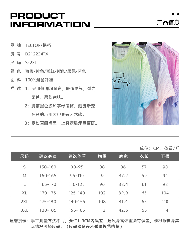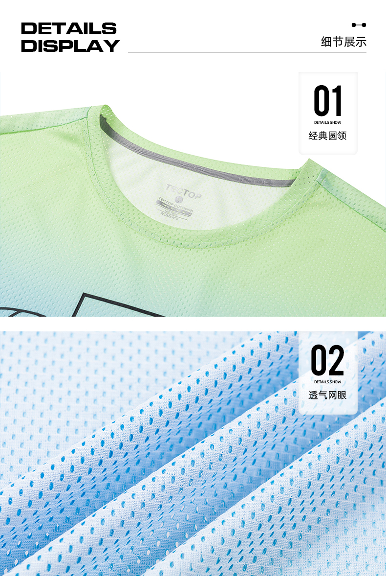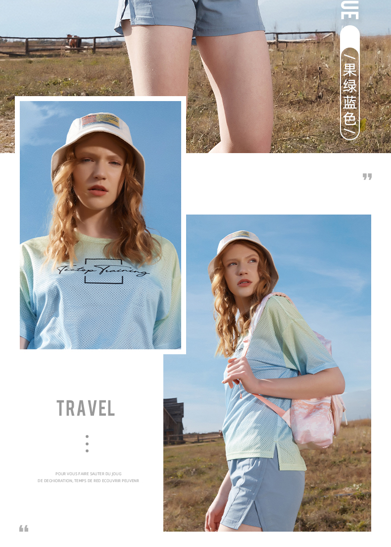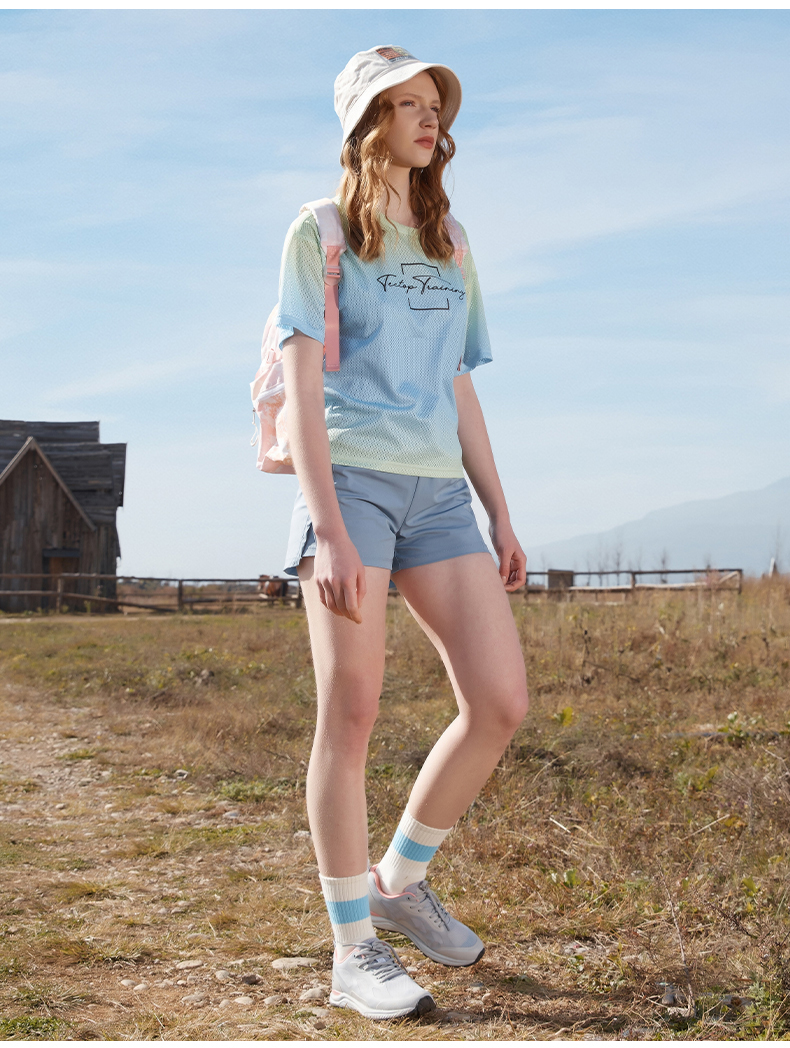 TECTOP探拓戶外速乾T恤女輕薄透氣迷彩炫彩漸層快乾運動健身短袖