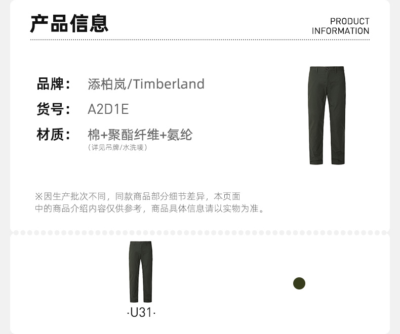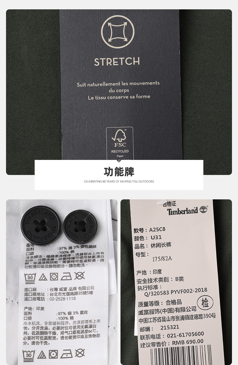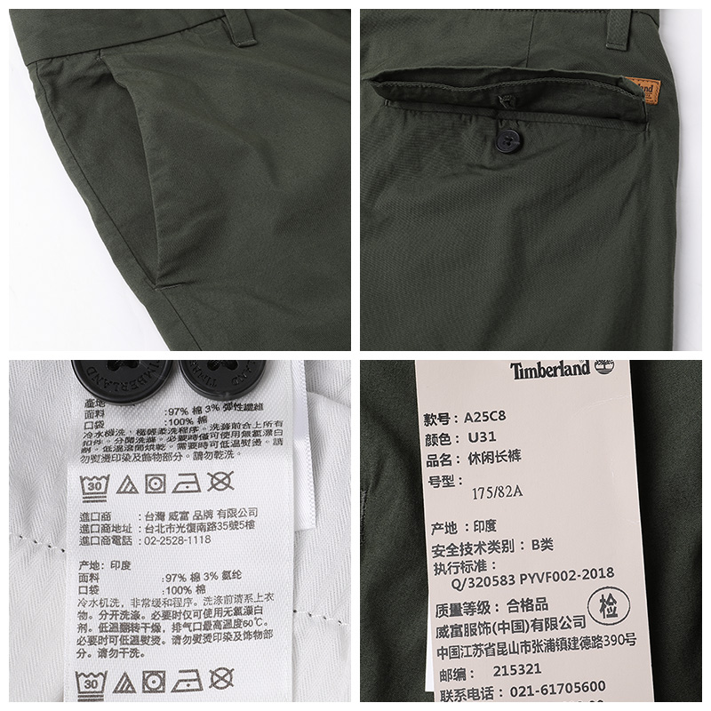 Timberland添柏嵐戶外男褲修身直筒彈性工裝褲休閒長褲A25C8