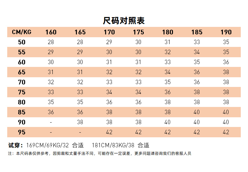 尺碼 28 29 30 31 32 33 34 36 38 35 40 42