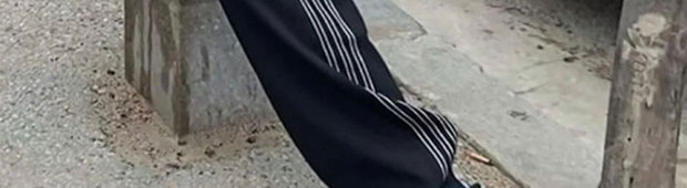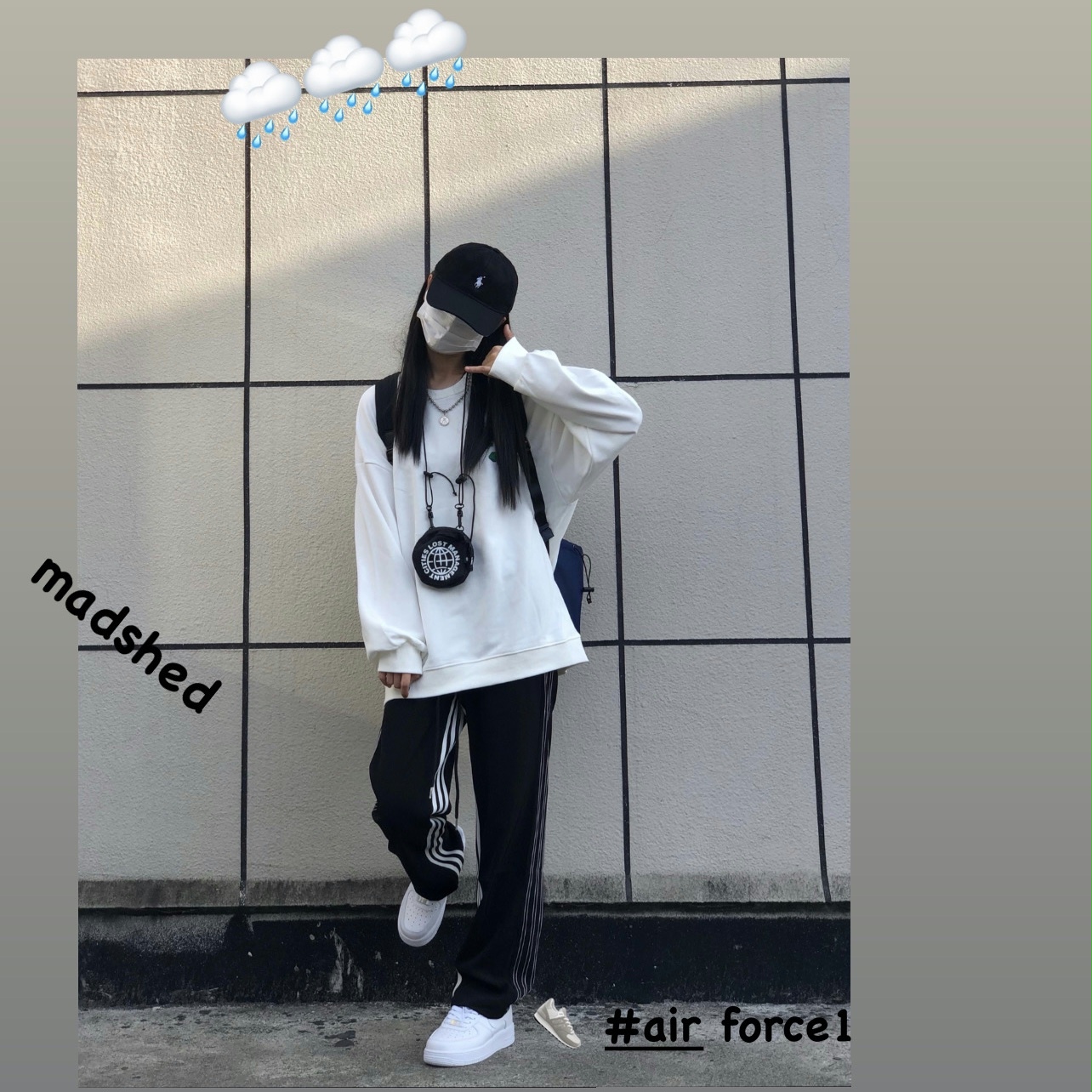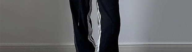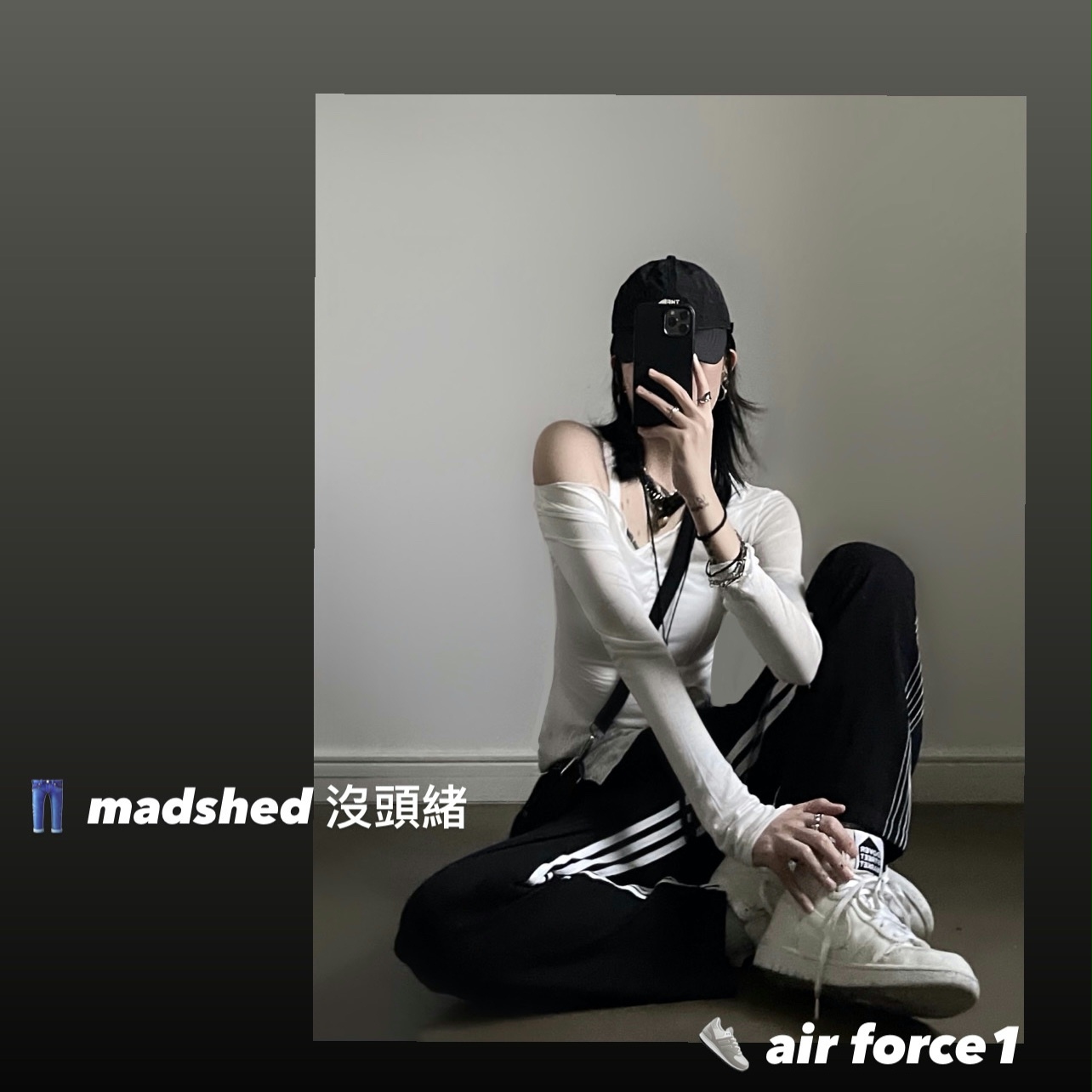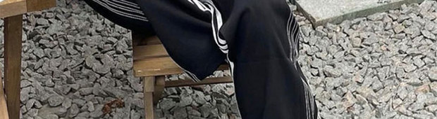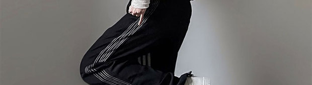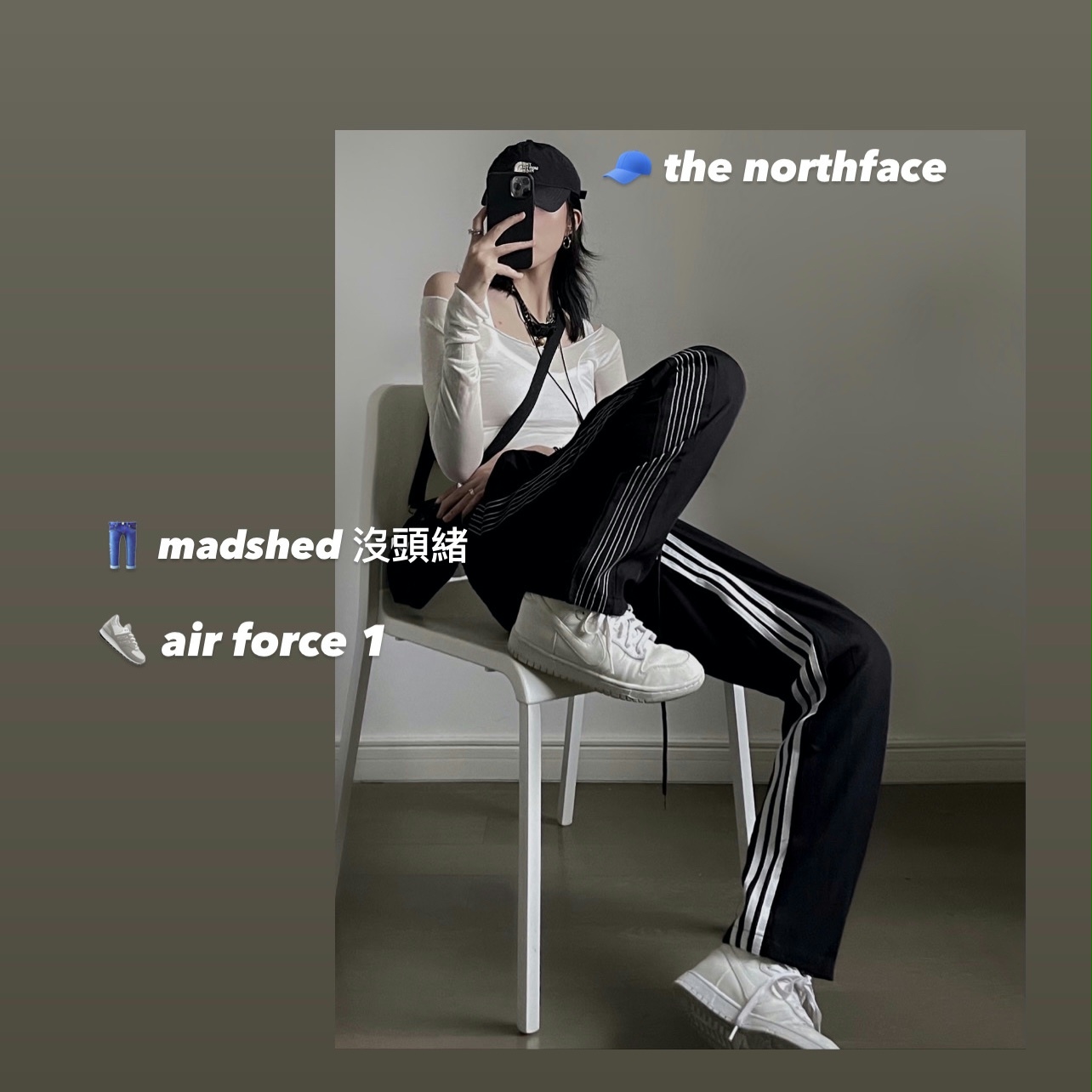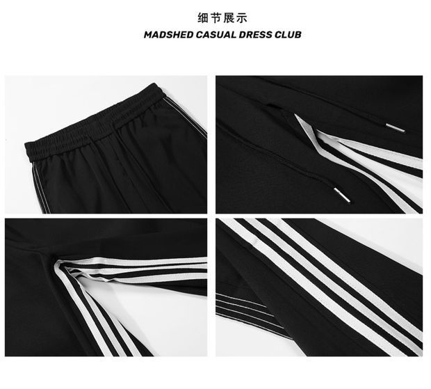 胖mm黑色春秋條紋休閒運動褲大尺碼早秋寬鬆顯瘦直筒垂感拖地長褲女