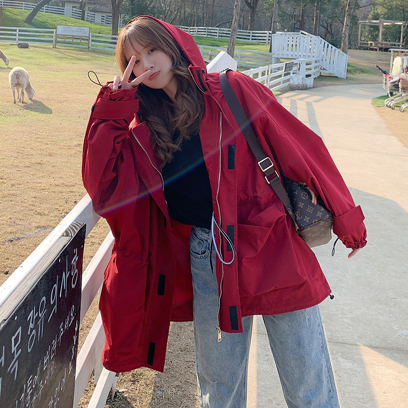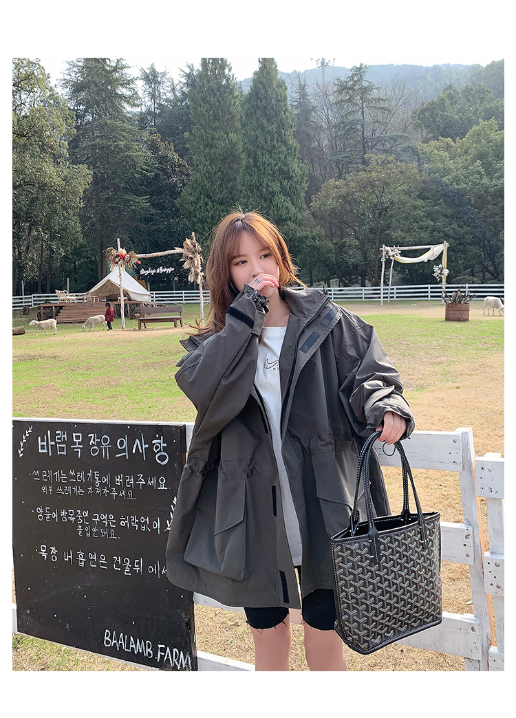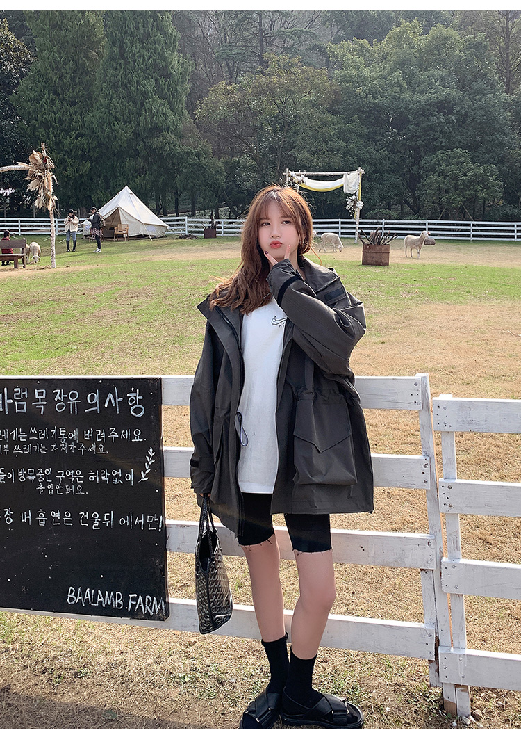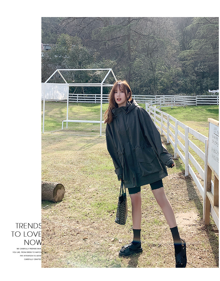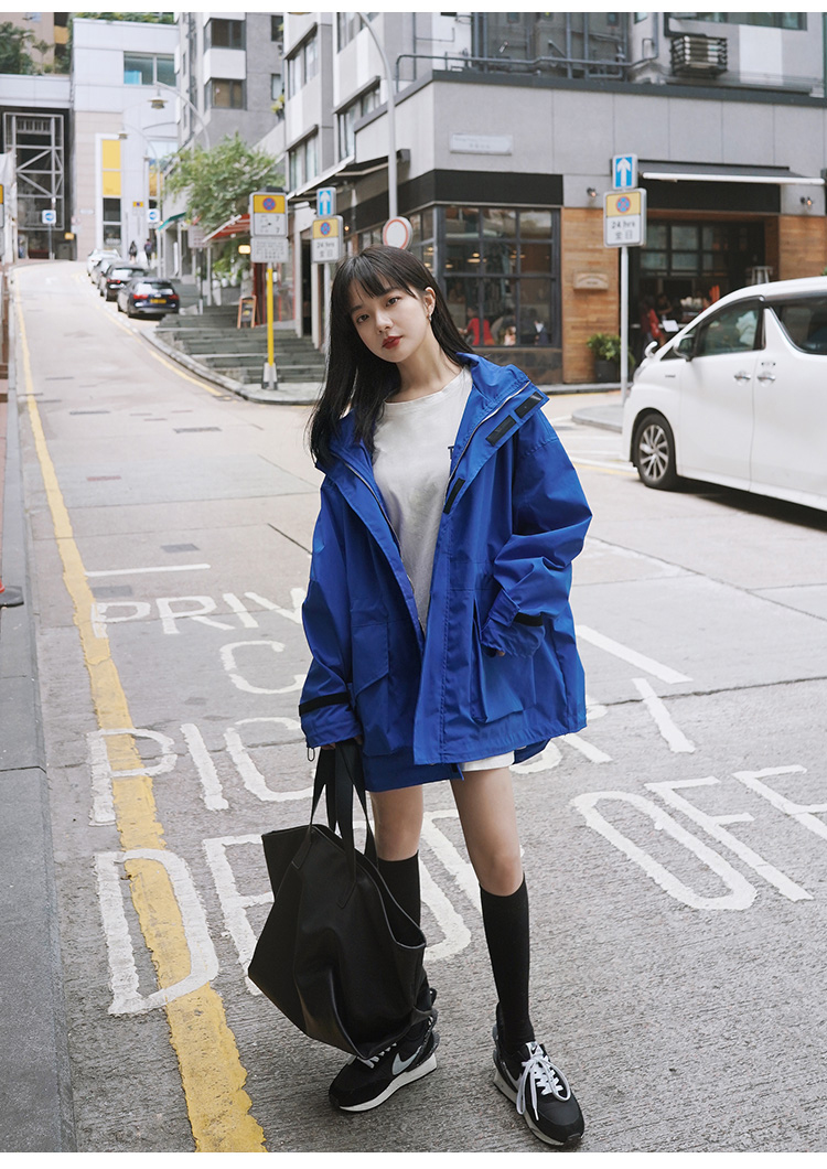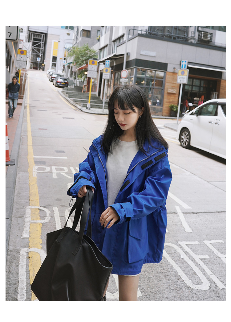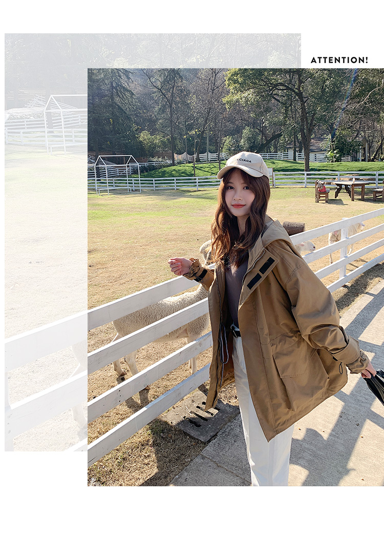工裝短款外套女2023新款韓版寬鬆復古bf春秋休閒學生連帽風衣大尺碼