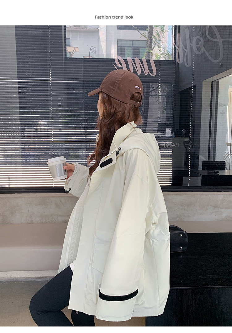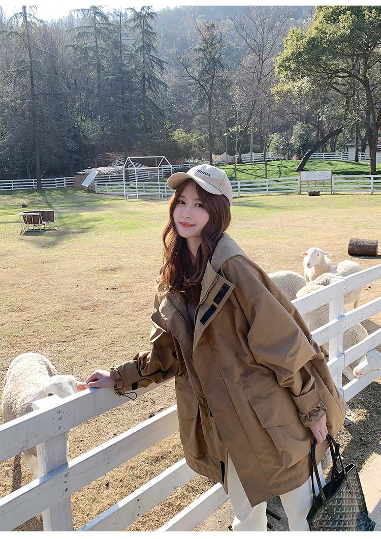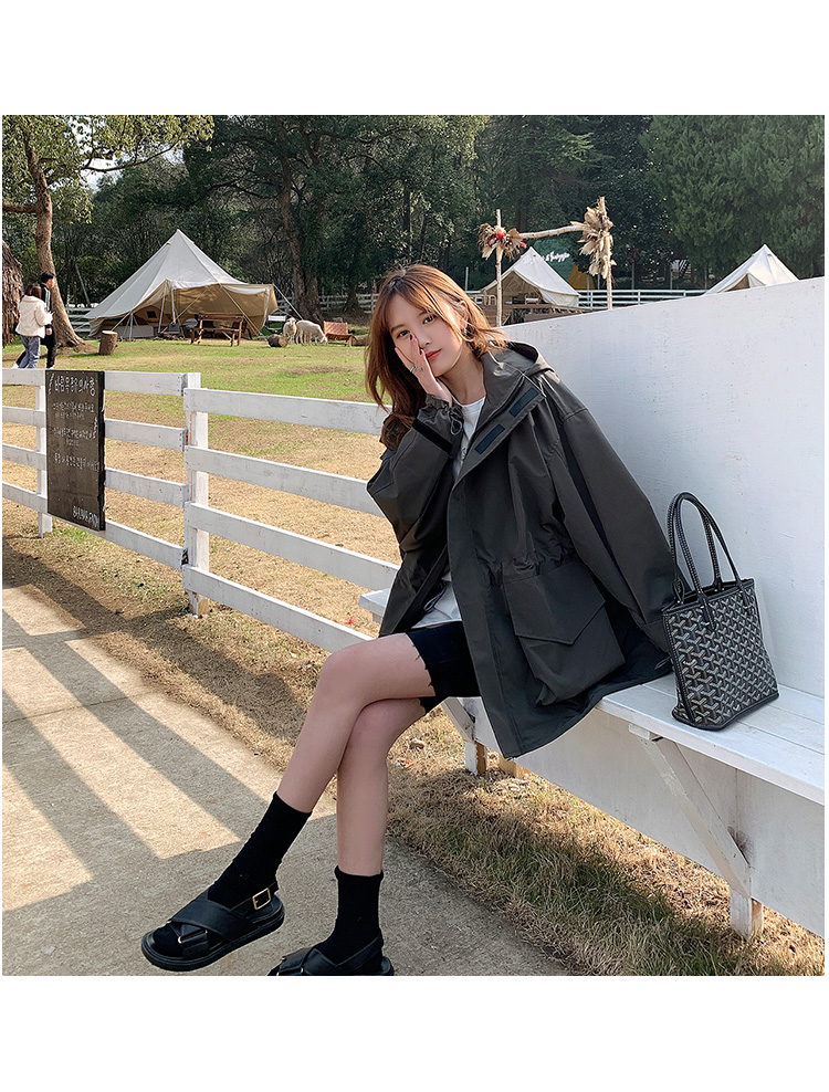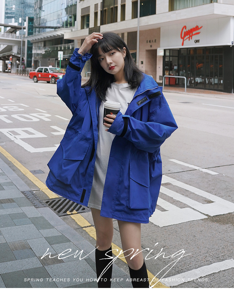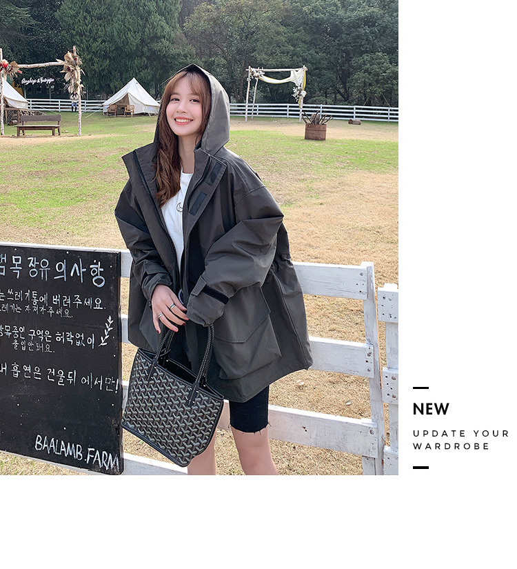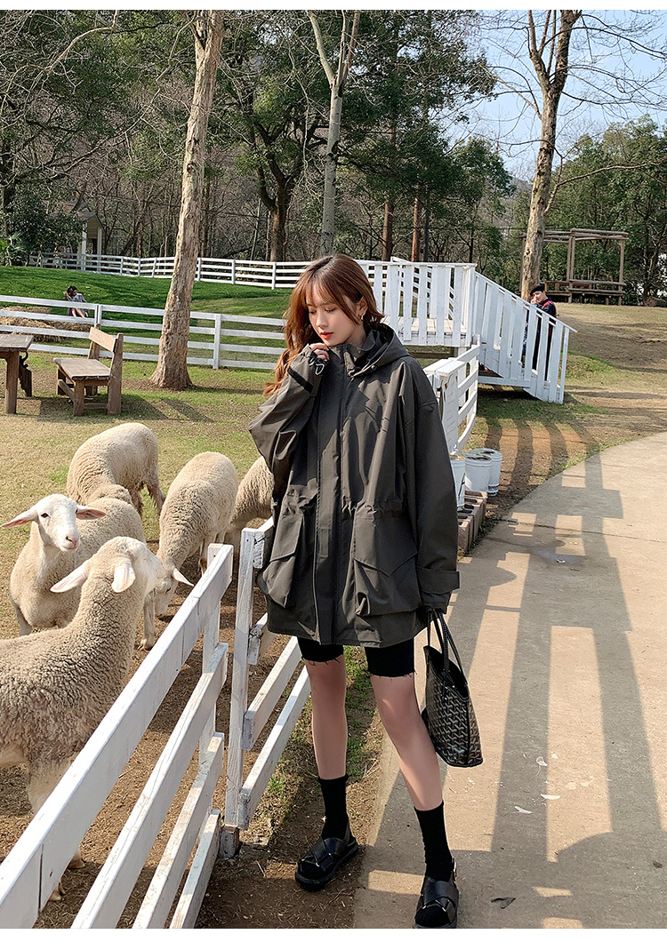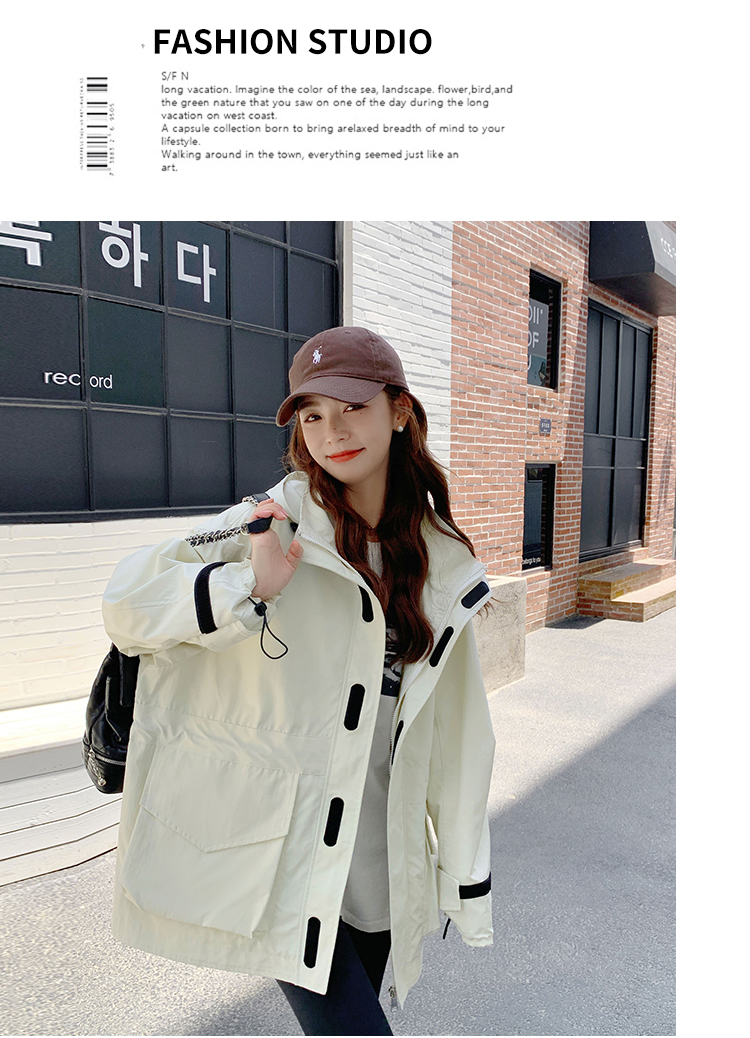 工裝短款外套女2023新款韓版寬鬆復古bf春秋休閒學生連帽風衣大尺碼