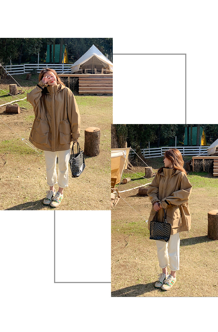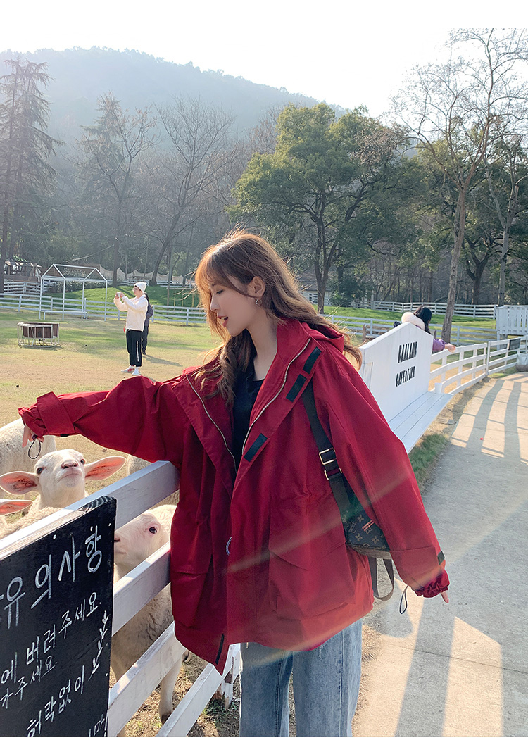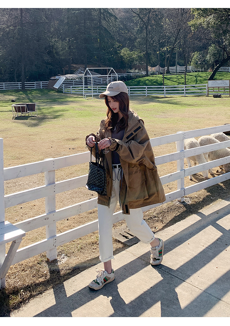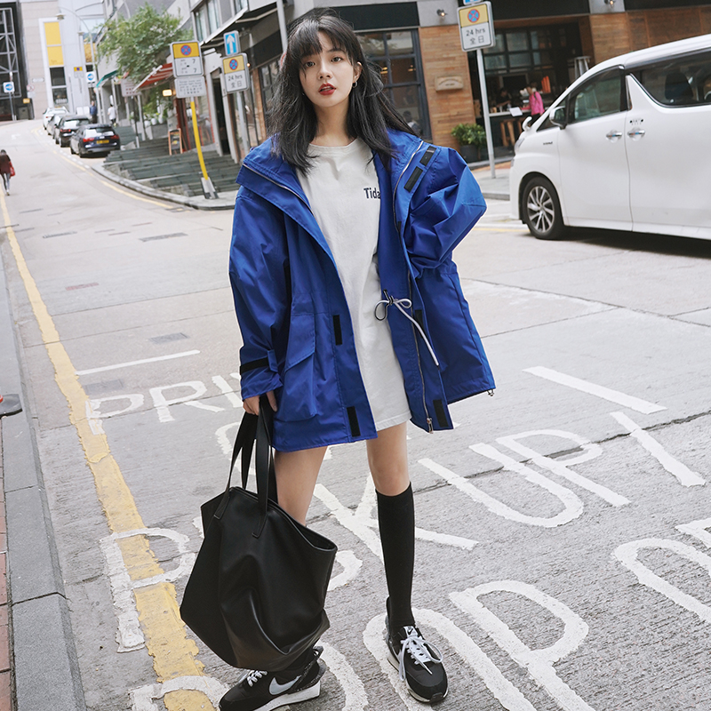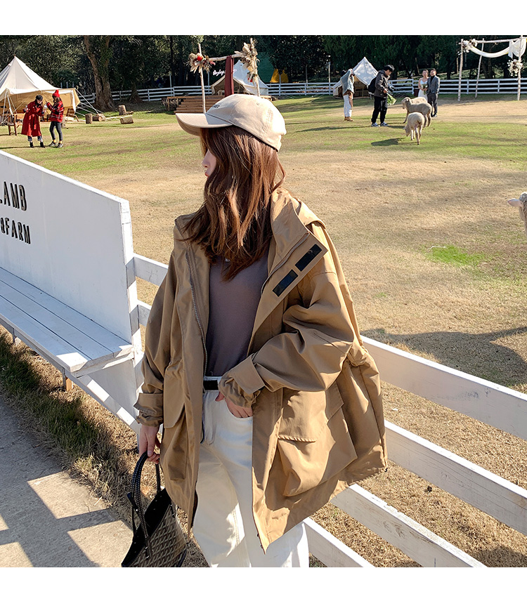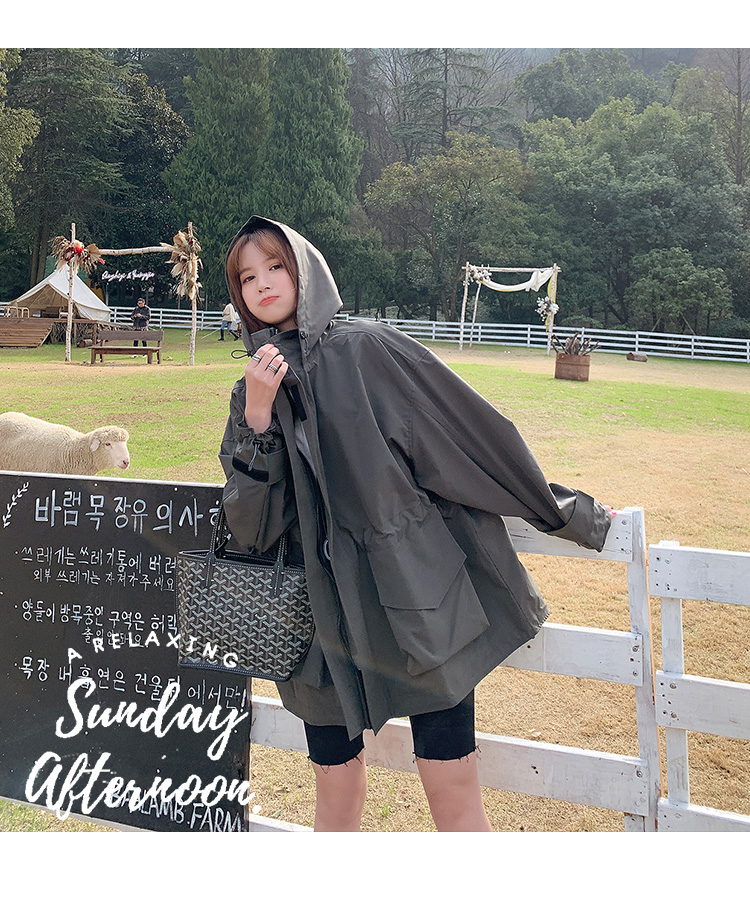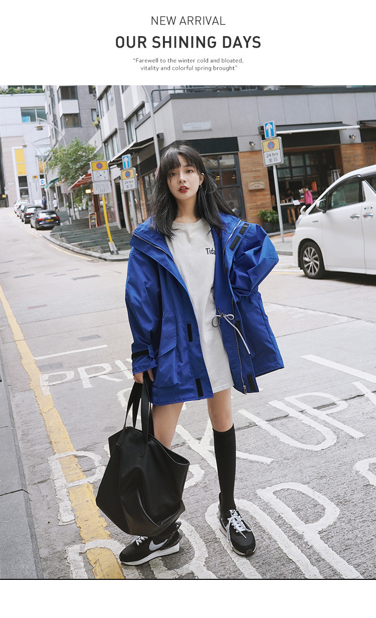 工裝短款外套女2023新款韓版寬鬆復古bf春秋休閒學生連帽風衣大尺碼