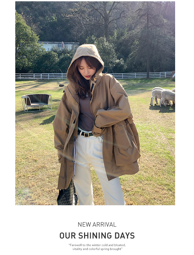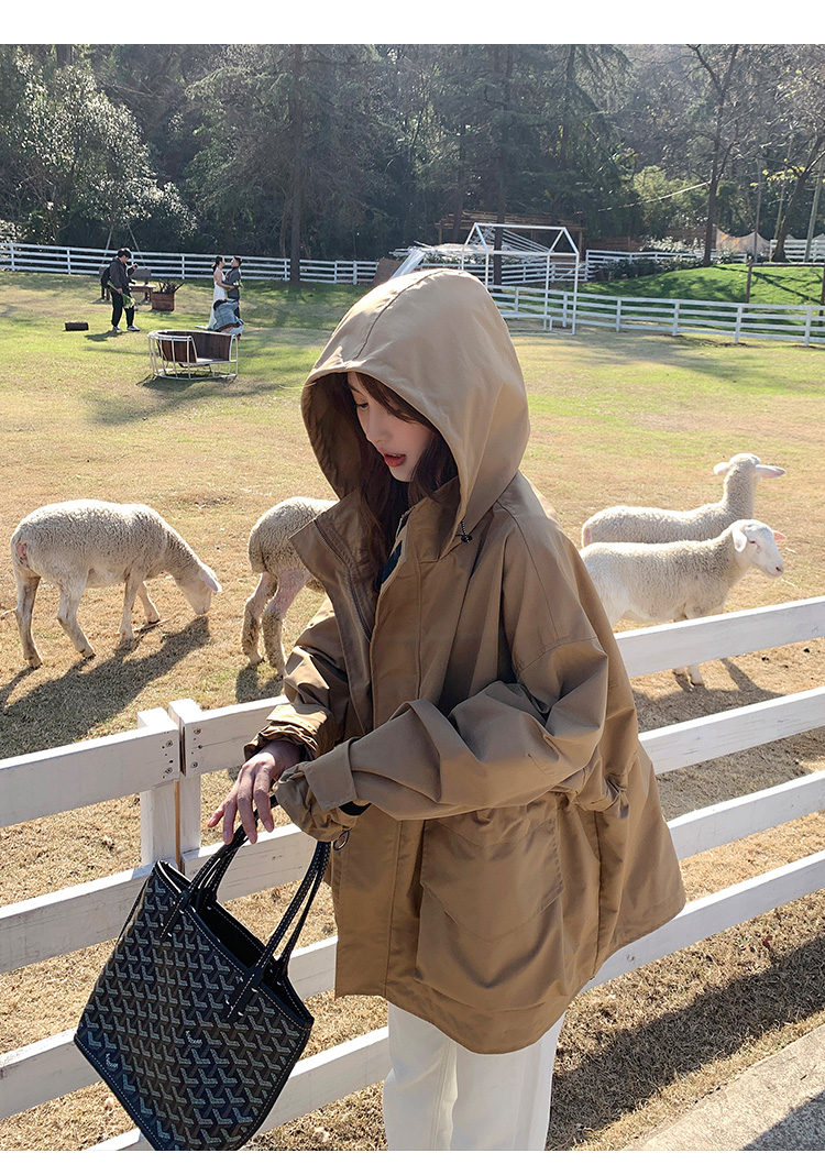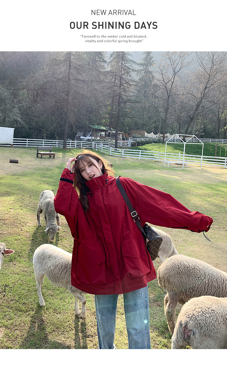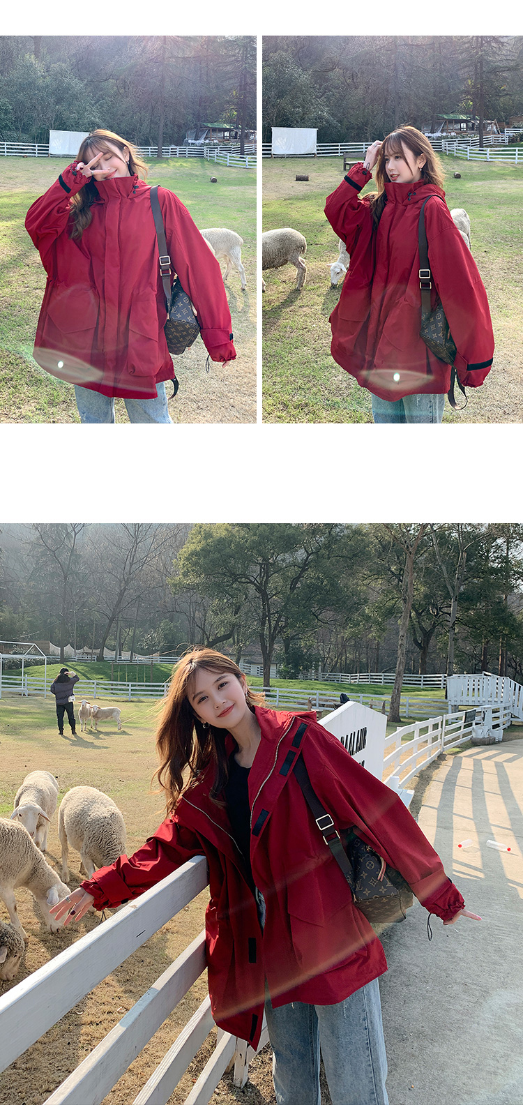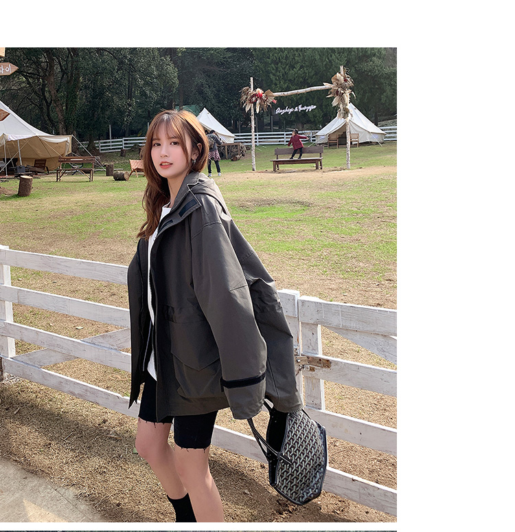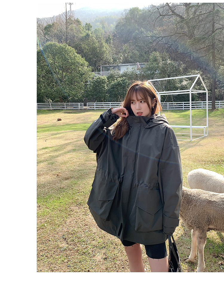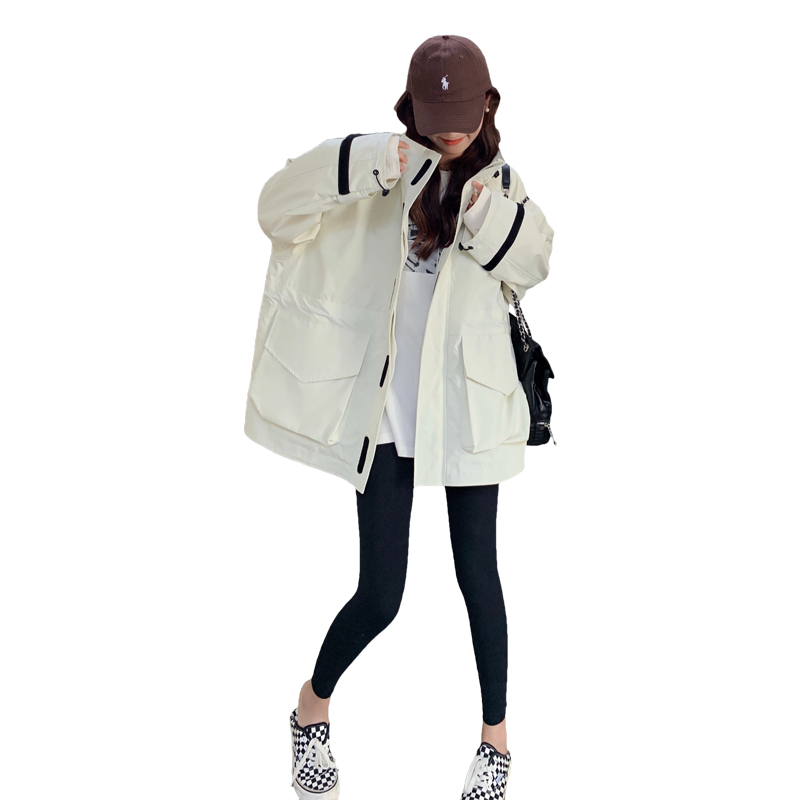 工裝短款外套女2023新款韓版寬鬆復古bf春秋休閒學生連帽風衣大尺碼
