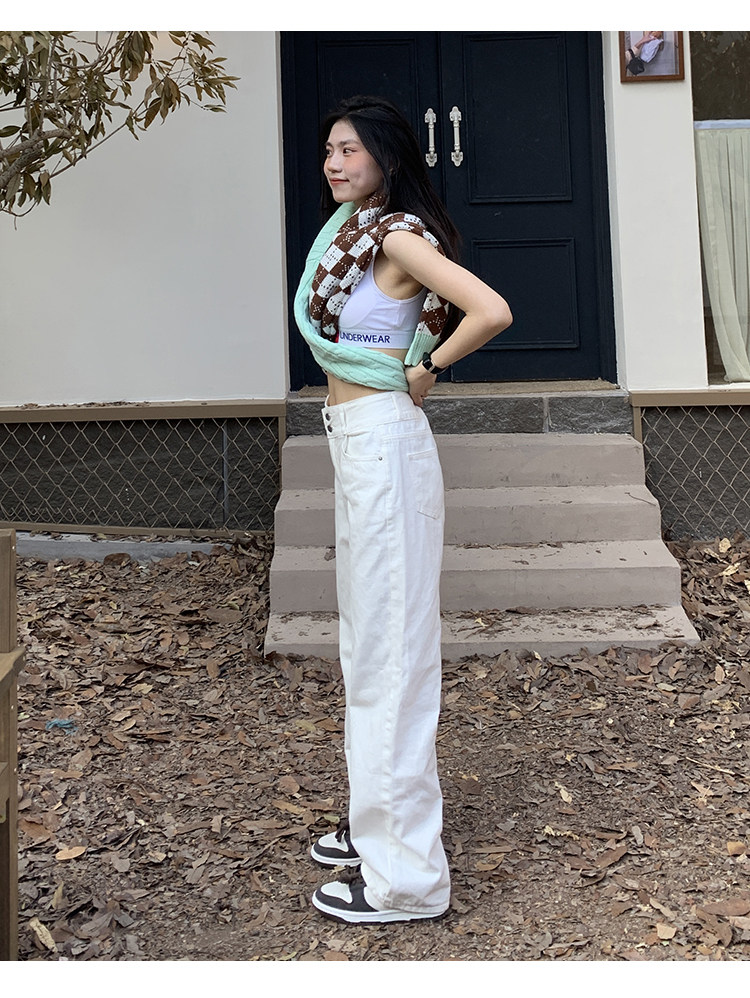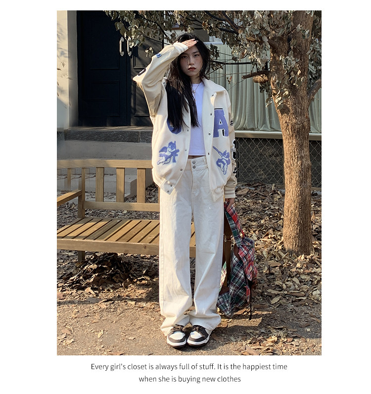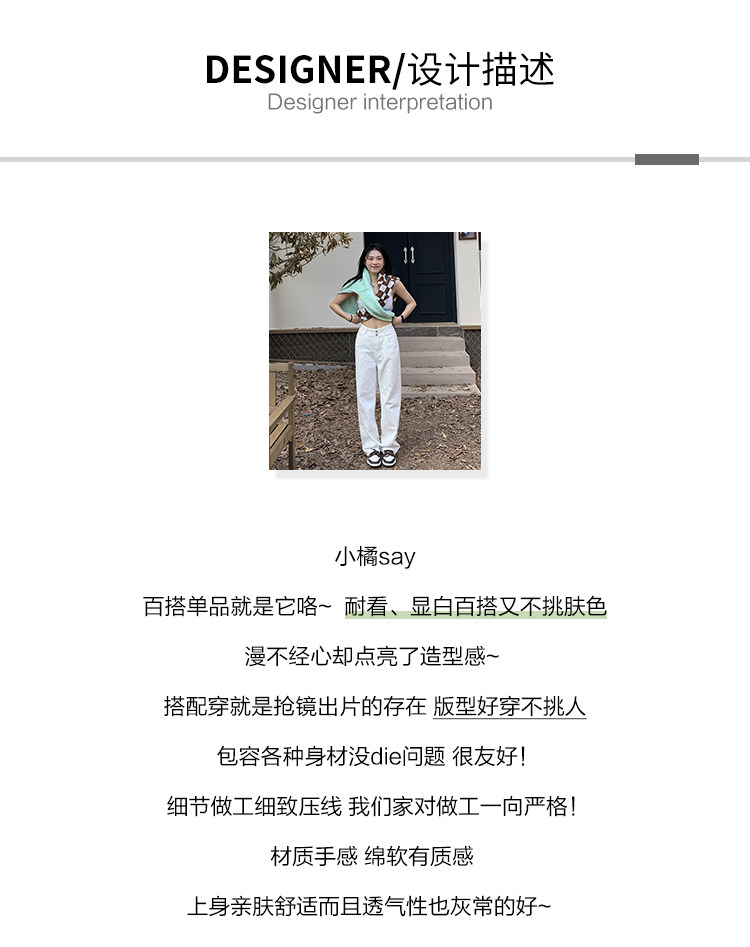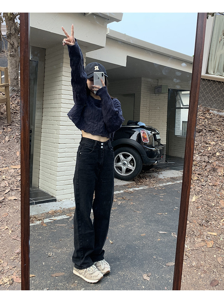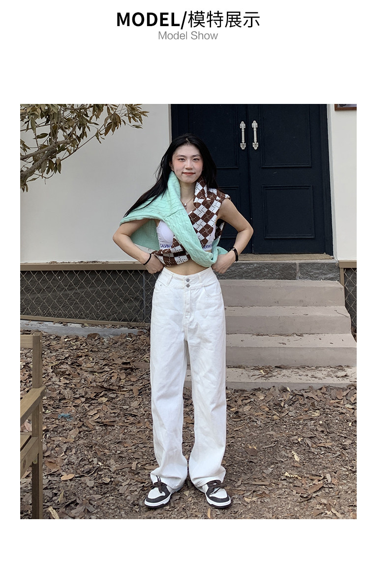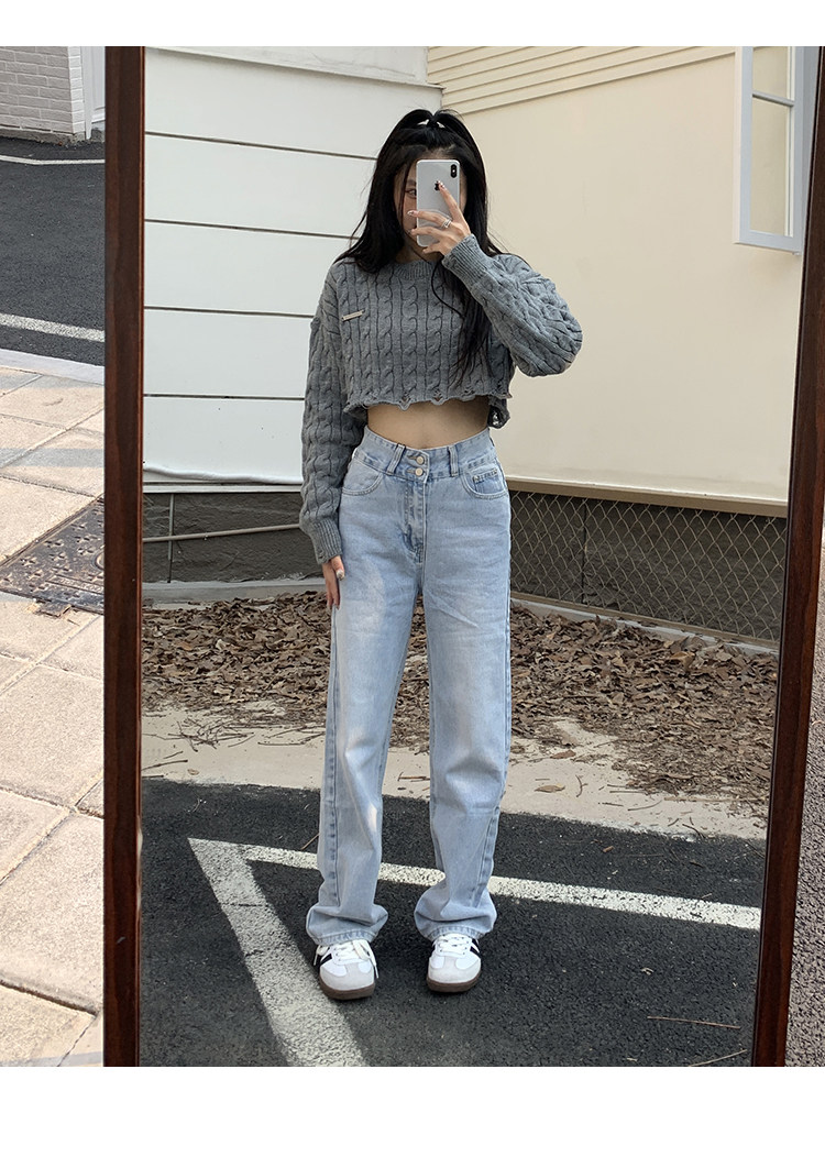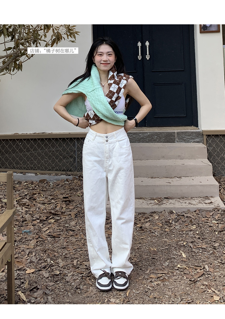 橘子樹在哪兒設計感雙排扣直筒牛仔褲女春寬鬆百搭高腰顯瘦拖地褲
