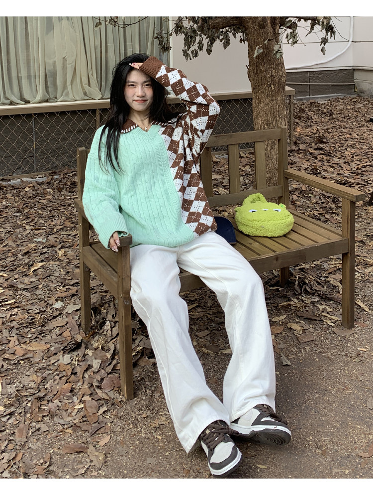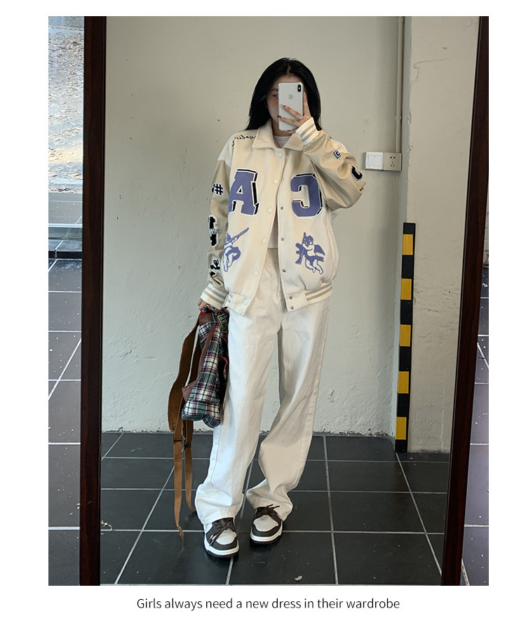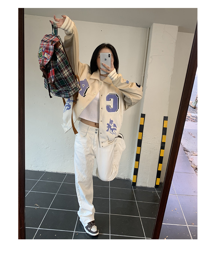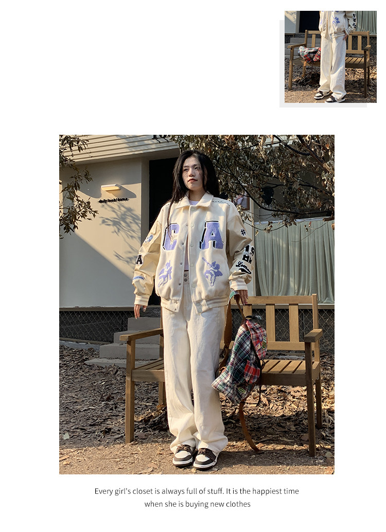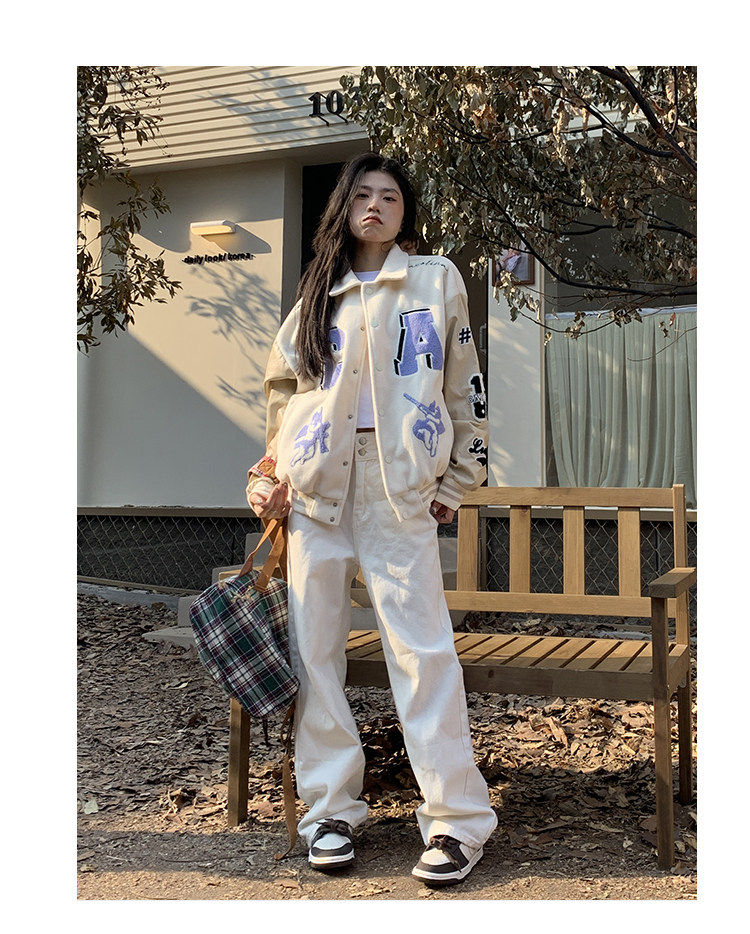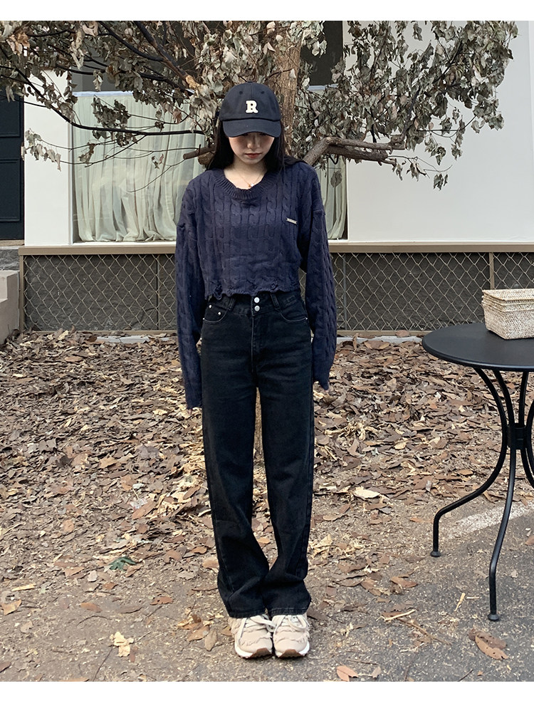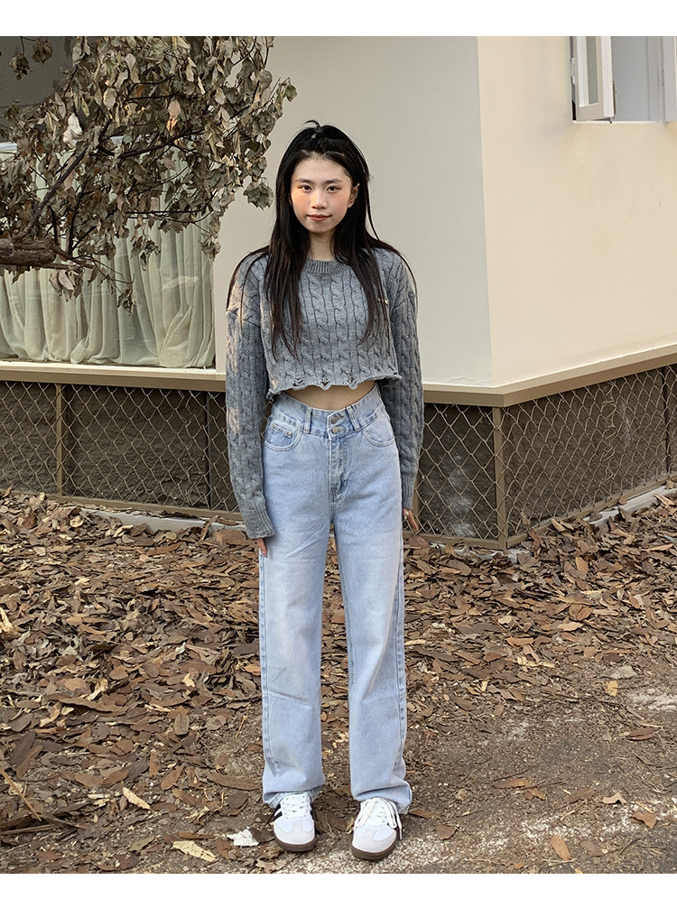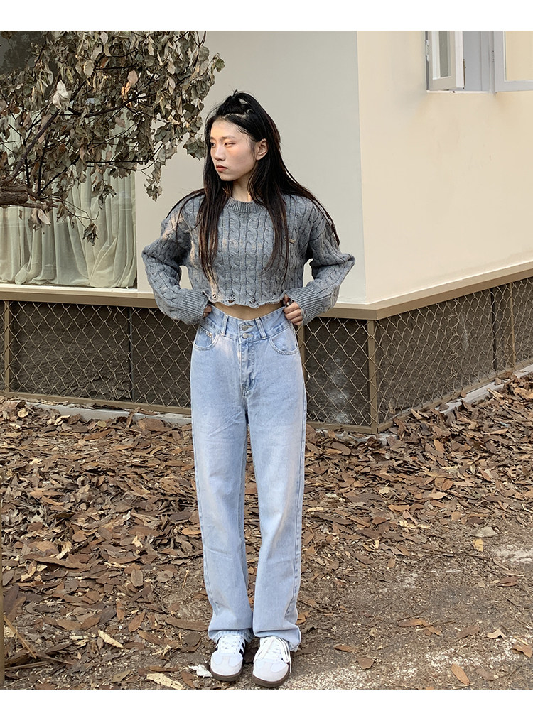 橘子樹在哪兒設計感雙排扣直筒牛仔褲女春寬鬆百搭高腰顯瘦拖地褲