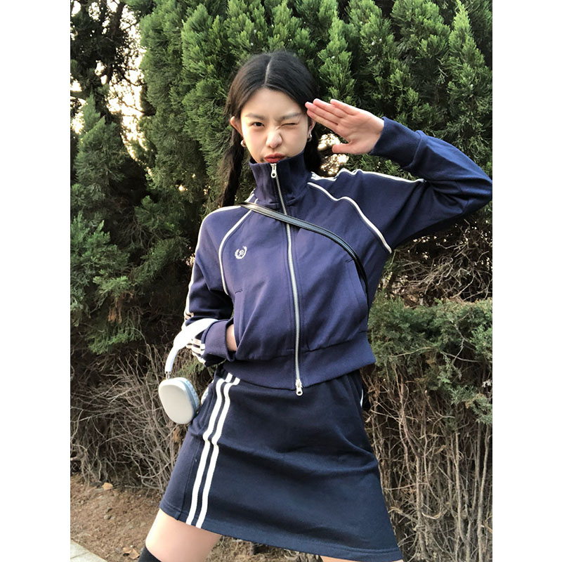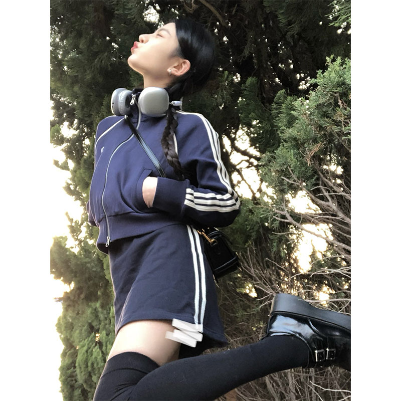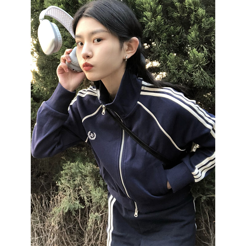 美式復古學院風短版衛衣外套女早春修身設計感休閒運動厚棉套裝潮