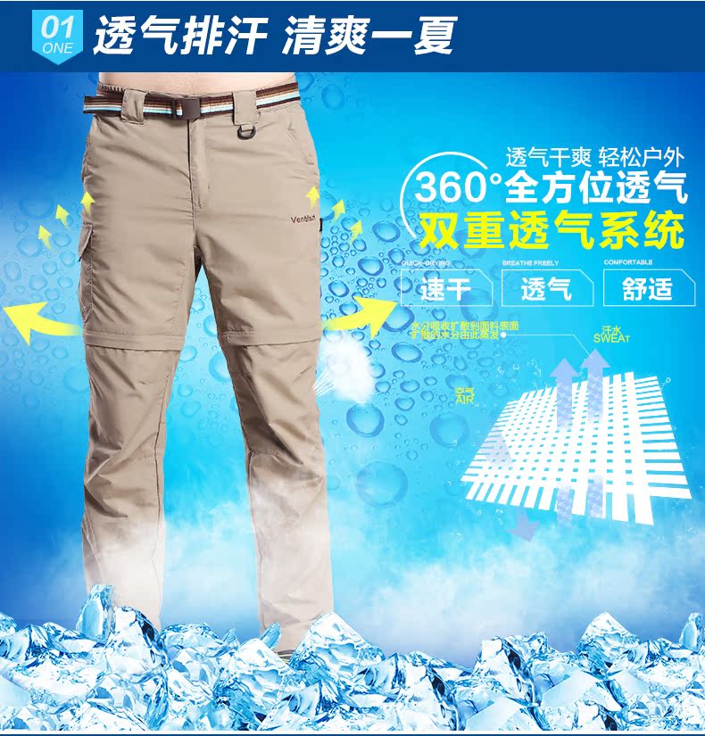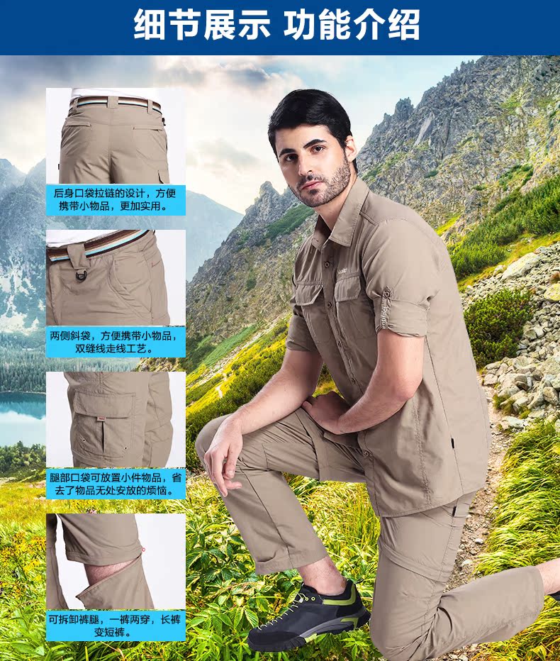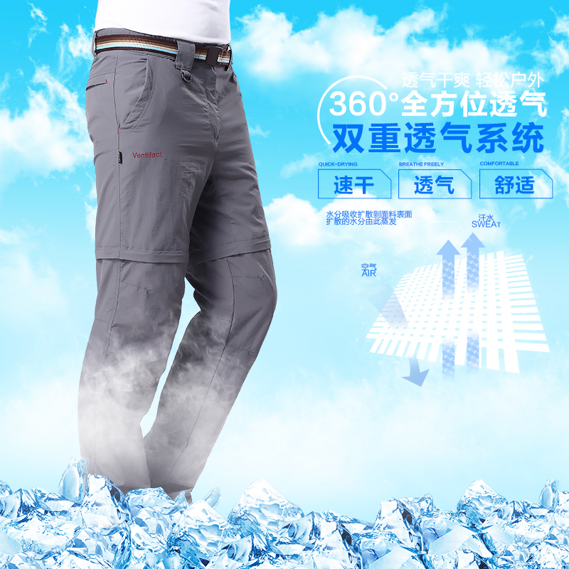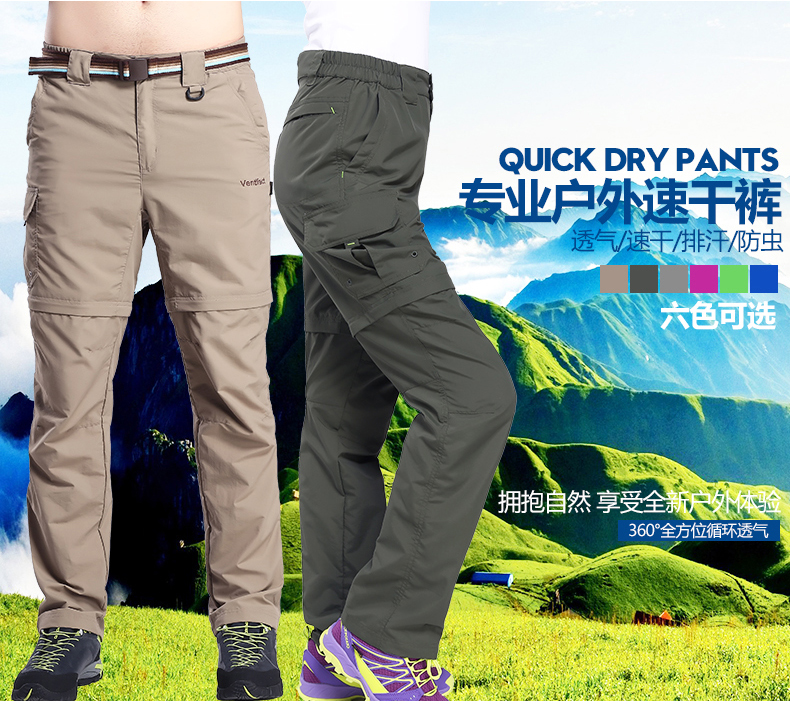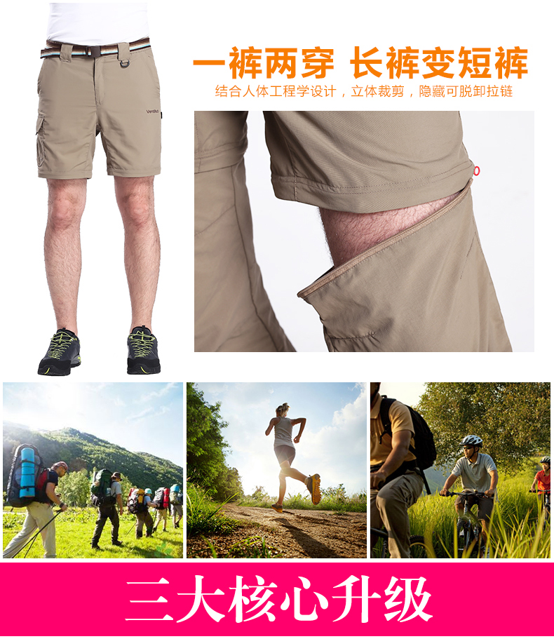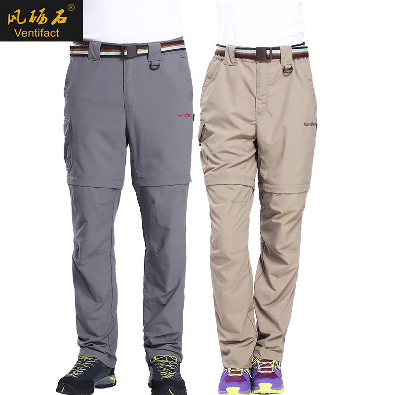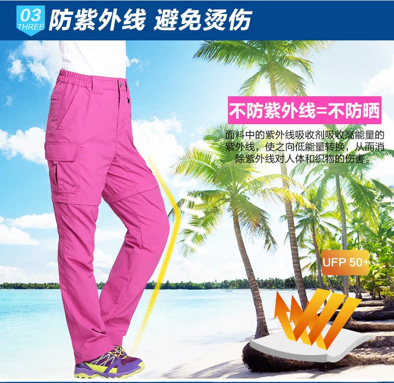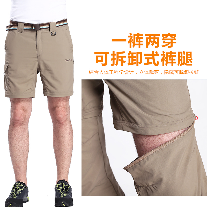 夏季戶外速乾褲男運動長褲防曬透氣薄款登山褲女兩截可拆卸快乾褲