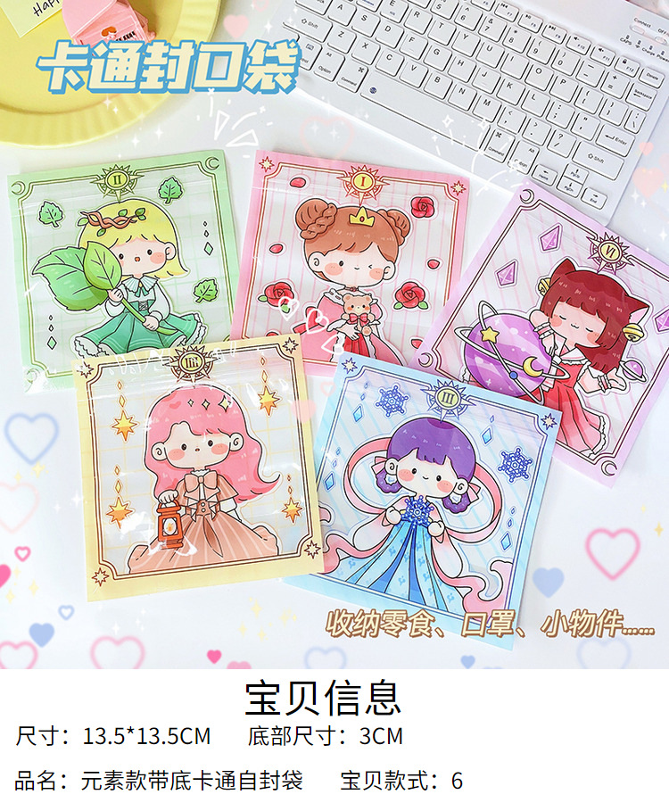 颜色 自封袋带底粉色玫瑰元素女孩,自封袋带底绿色绿叶元素女孩,自封袋带底紫色水晶元素女孩,自封袋带底粉色魔法元素女孩,自封袋带底蓝色雪花元素女孩,自封袋带底黄色星星元素女孩