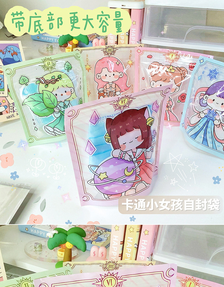 卡通韩国带底元素款零食自封袋少女心小熊饼干糖果小号收纳包装
