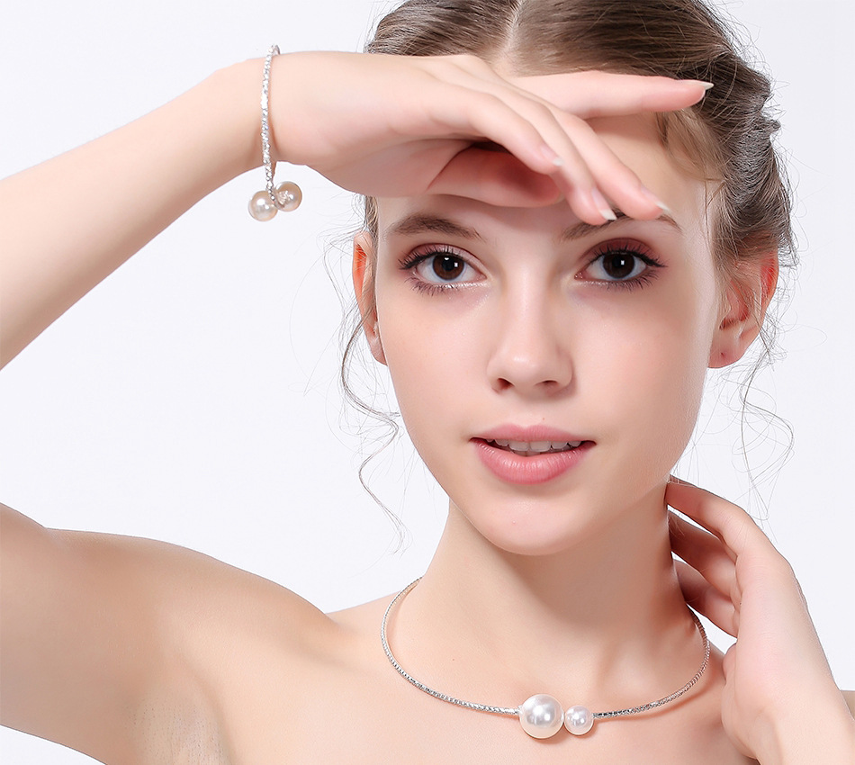 特价批发供应欧美流行单排镀银项圈手链套装珍珠项圈速卖通热销