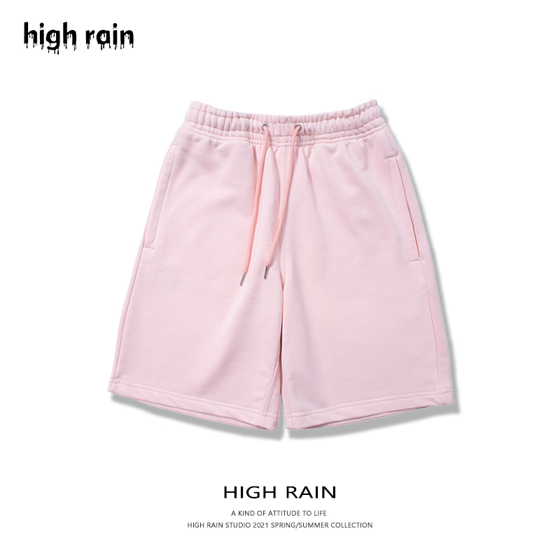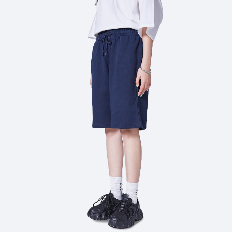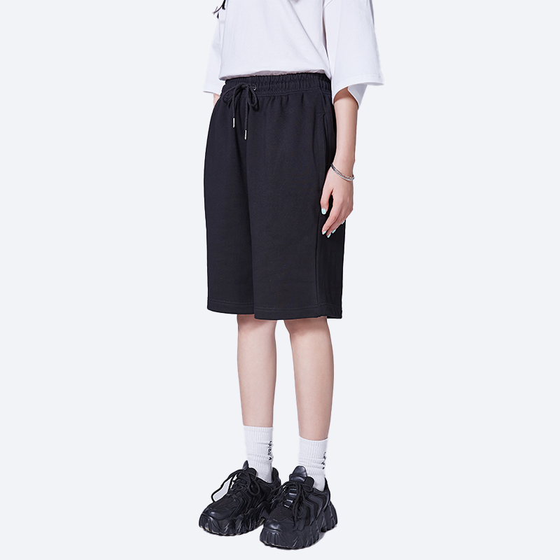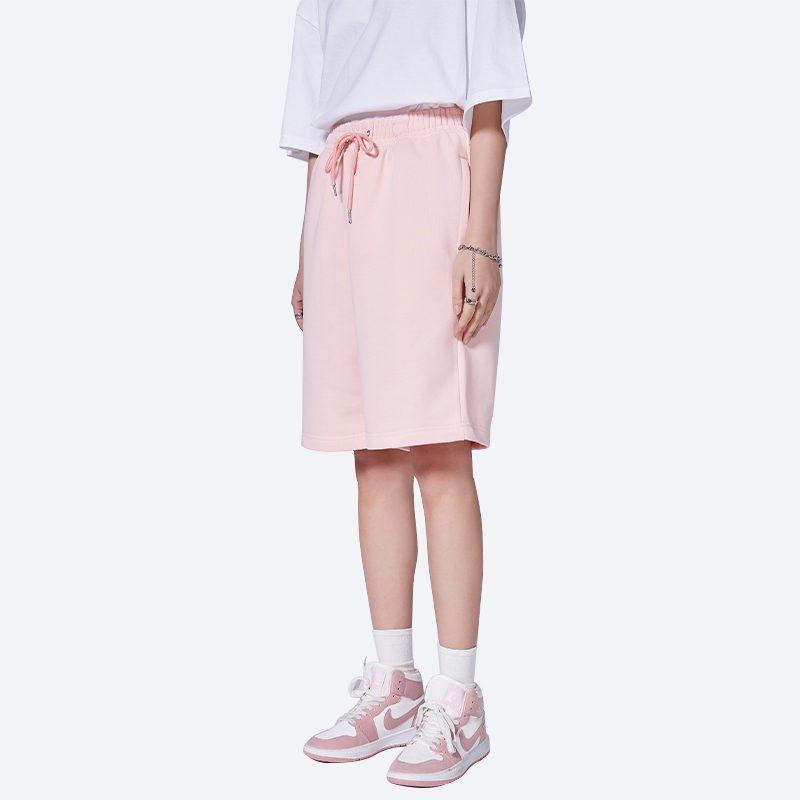 很潤工作室 抽繩純色短褲子五分休閒女夏季新款寬鬆高腰情侶潮