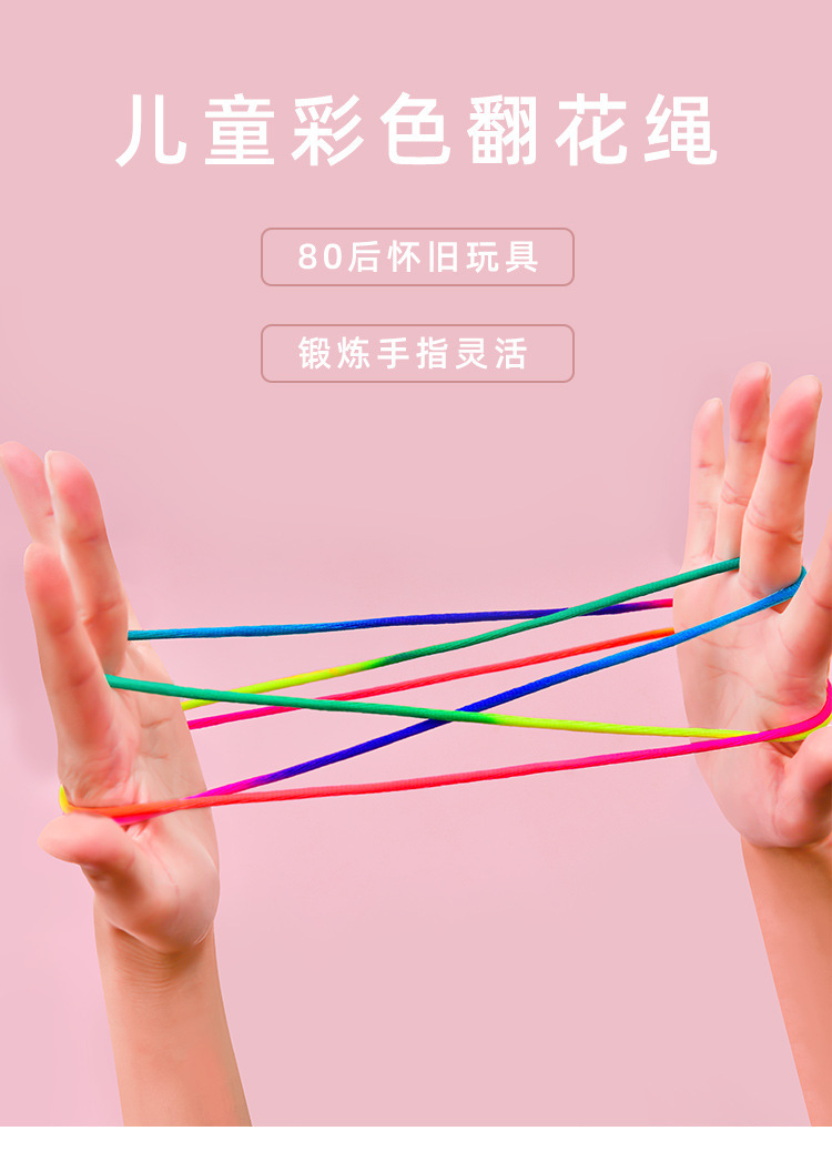 儿童翻花绳的花绳子专用绳学生彩虹彩色绳小学生挑花绳编花绳玩具
