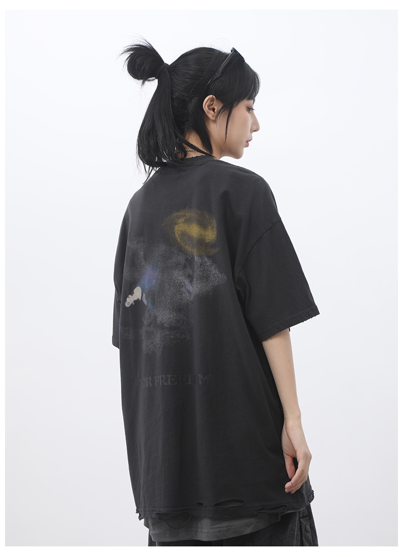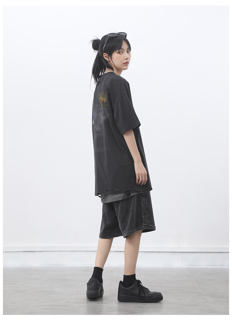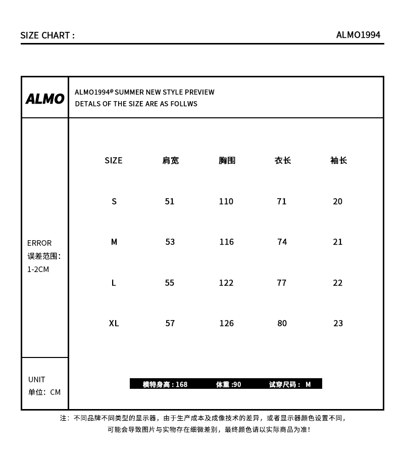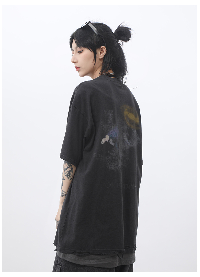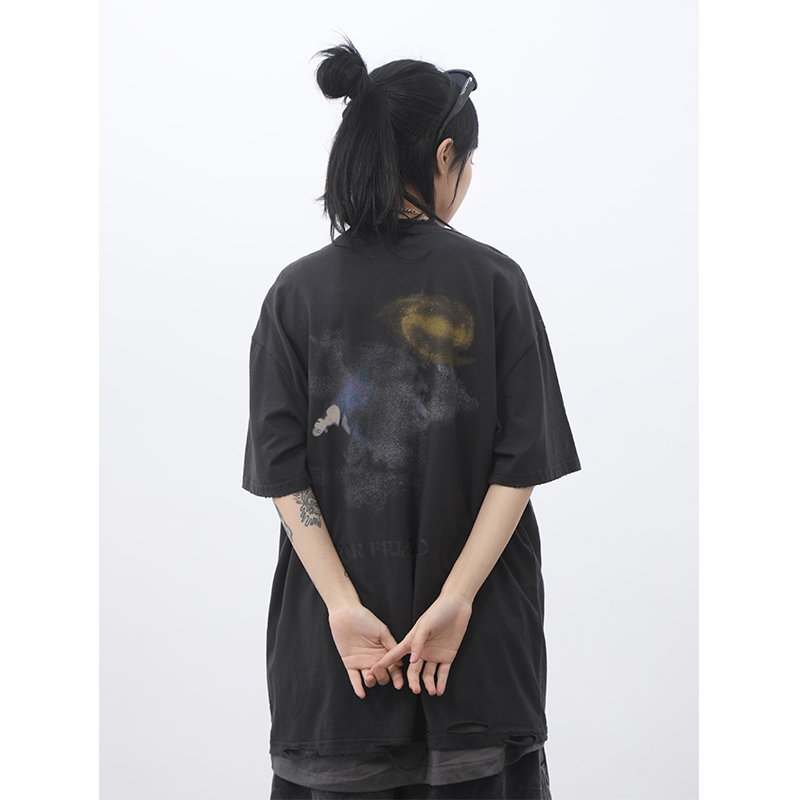 ALMO1994高街美式復古做舊洗水寬鬆短袖T恤男女INS國潮牌半袖上衣