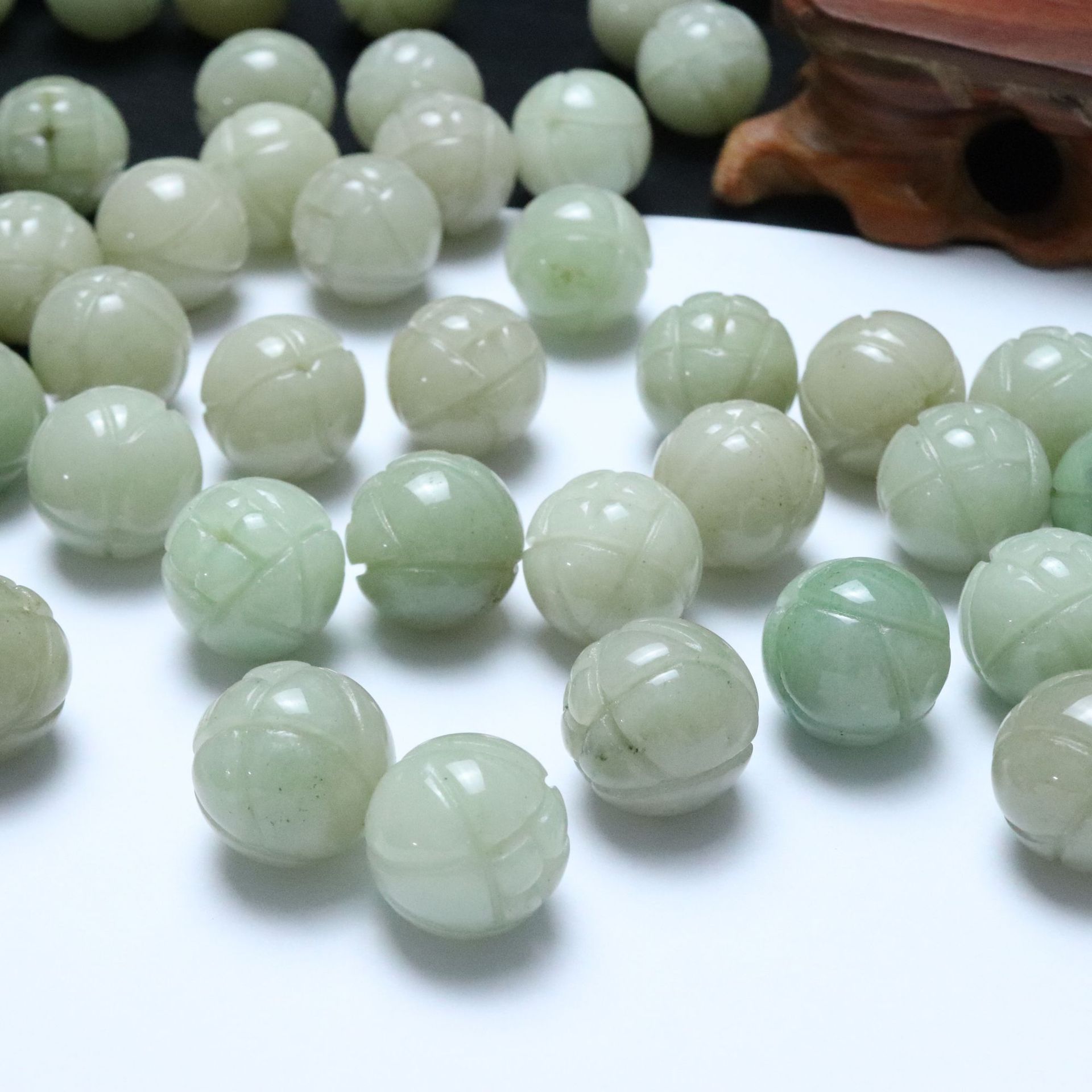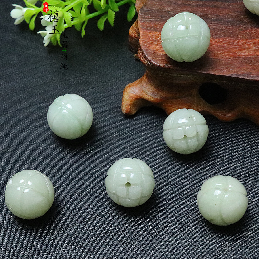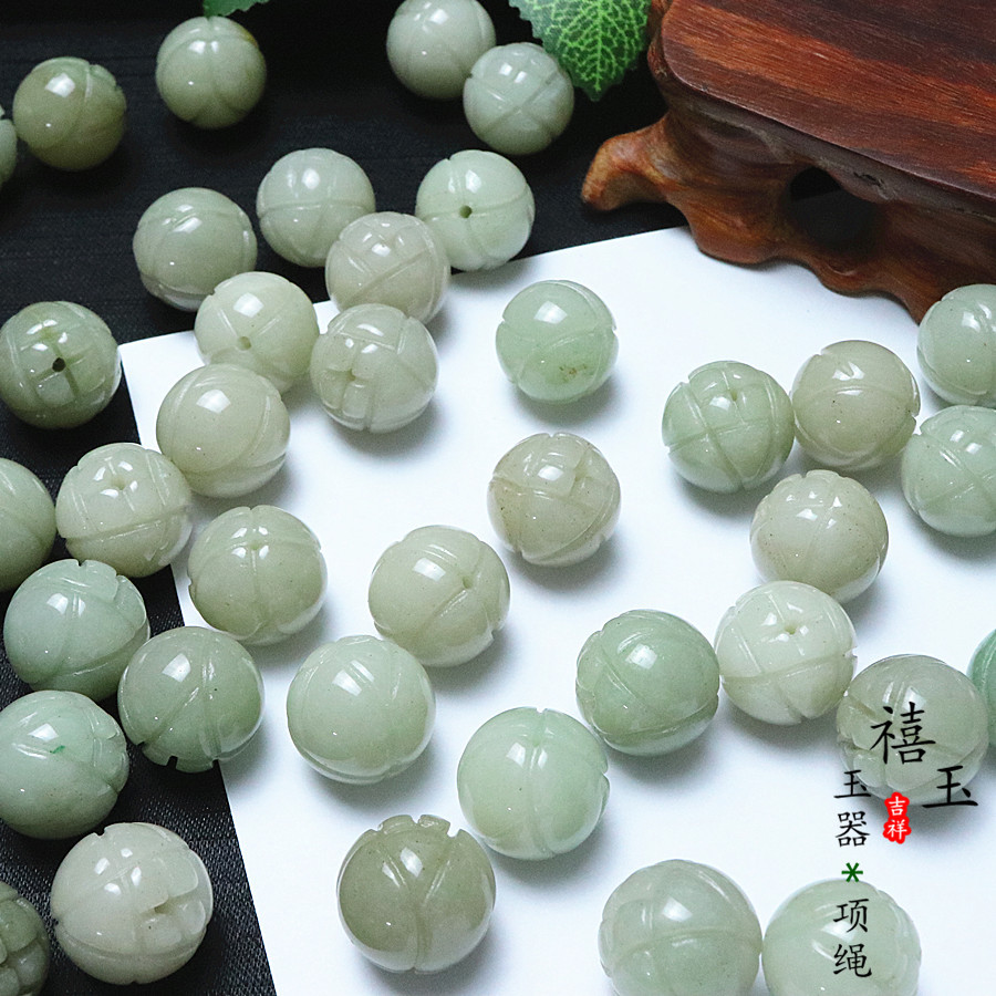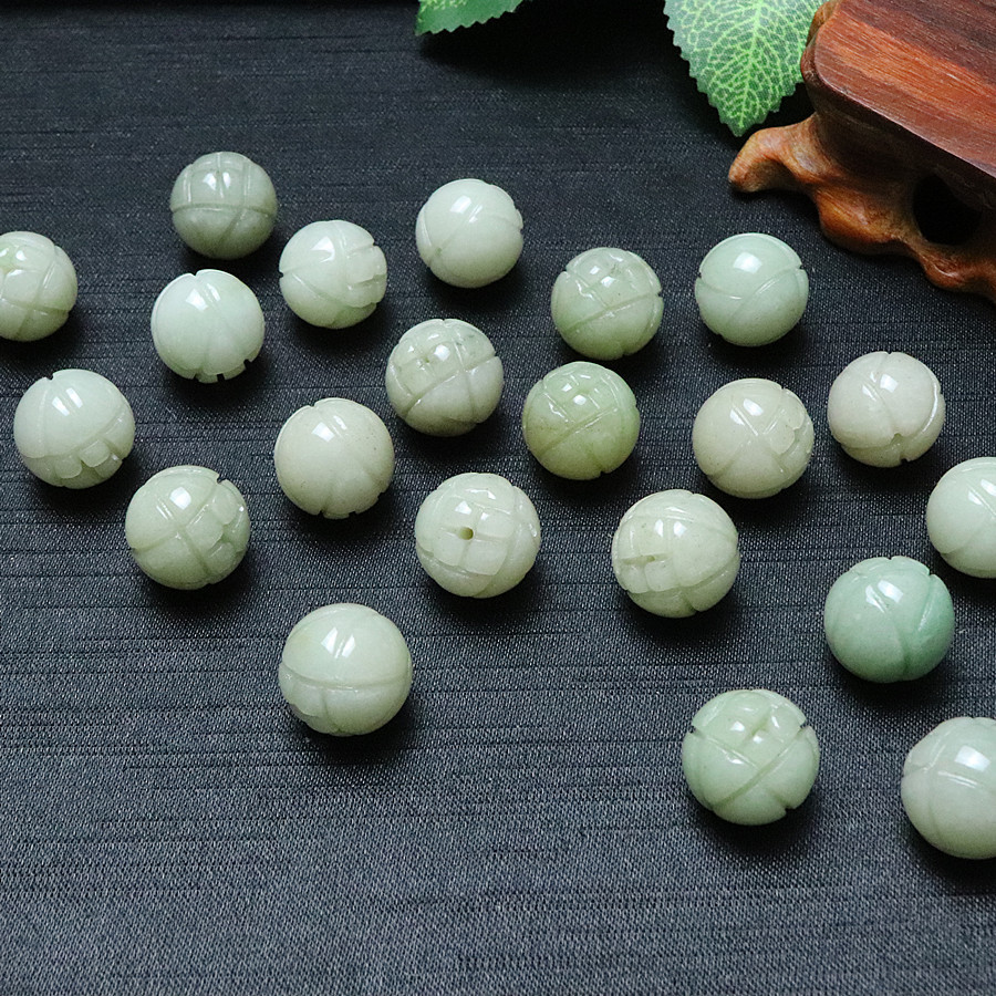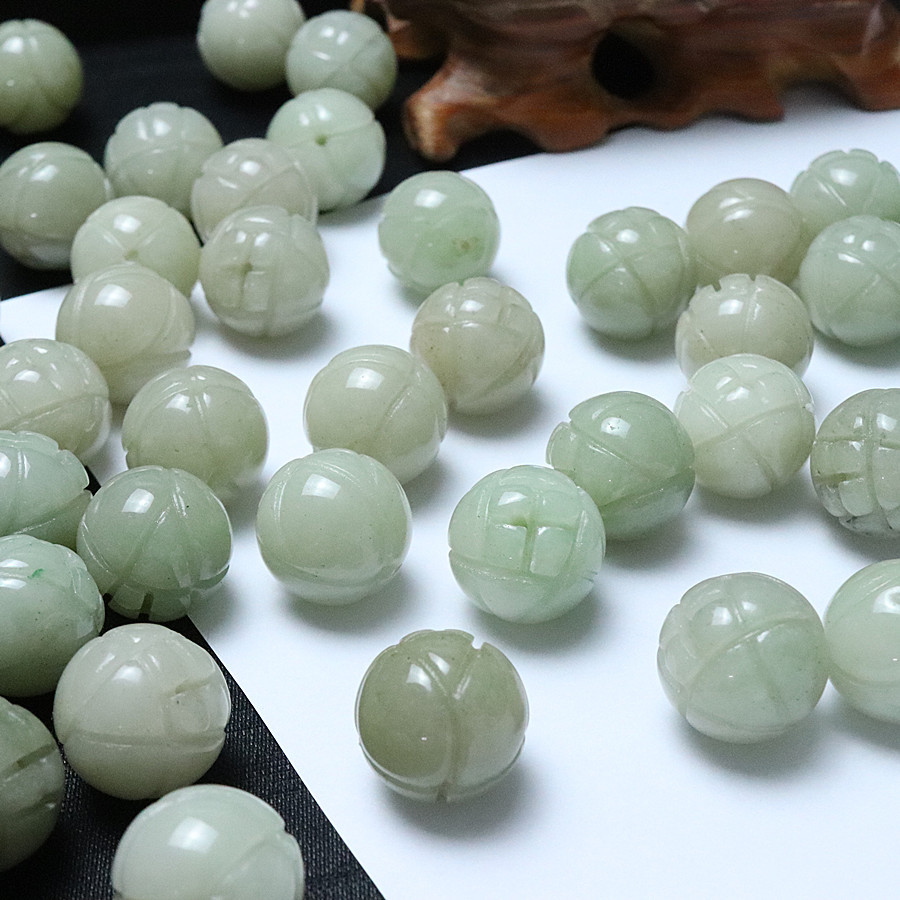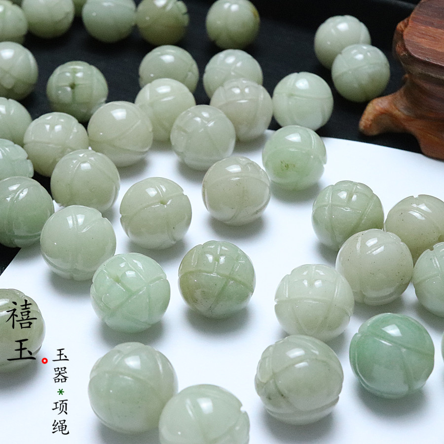 A货佘太翠玉石珠子莲花珠子16MM天然散珠玉石饰品配件DIY圆珠