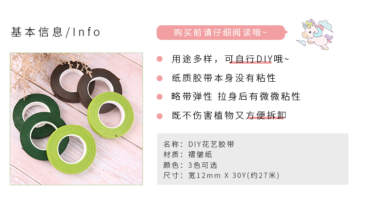 手工材料花纸花杆包边胶布花纸绿色花艺胶带辅料纸胶带园艺胶