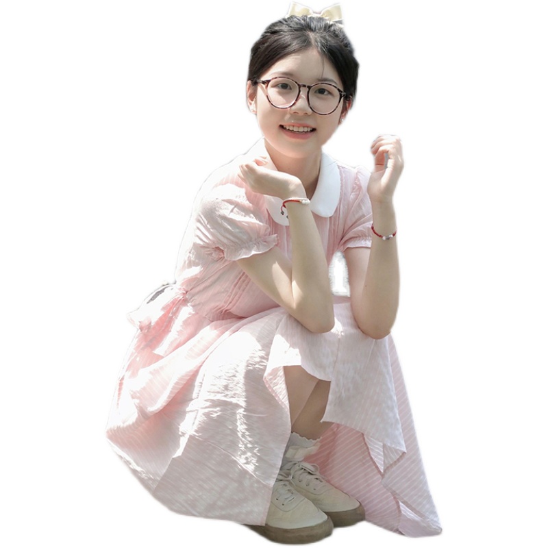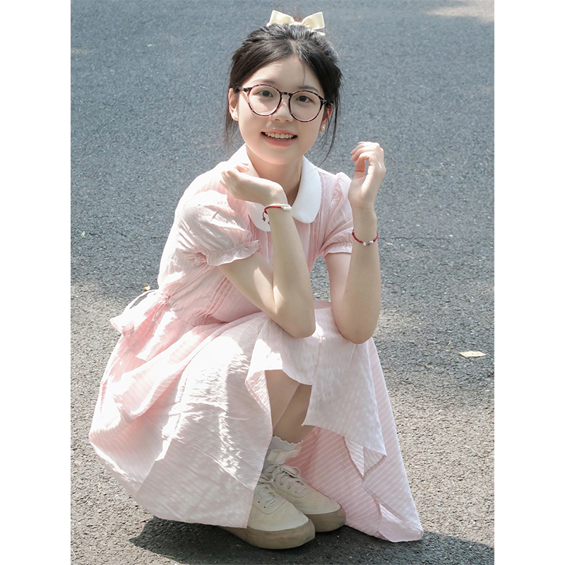 甜美公主風洋裝女夏季2023新款設計感小眾娃娃領收腰顯瘦裙子