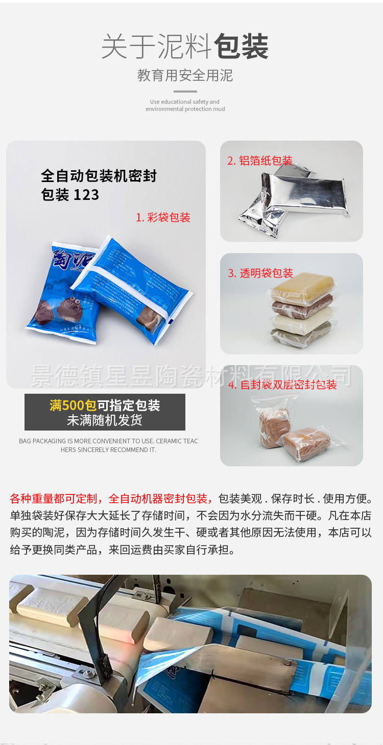 颜色 黄泥500克/袋,普白泥500克/袋,高白泥500克/袋,特白泥500克/袋,中白泥500克/袋,捏雕泥500克/袋,超白泥500克/袋,黑陶泥500克/袋,红陶泥500克/袋,灰陶泥500克/袋,黄陶泥500克/袋,白陶泥500克/袋,紫砂泥500克/袋,细陶泥500克/袋,粗陶泥500克/袋,雪泥500克/袋,红铁泥500克/袋,明火紫砂500克/袋