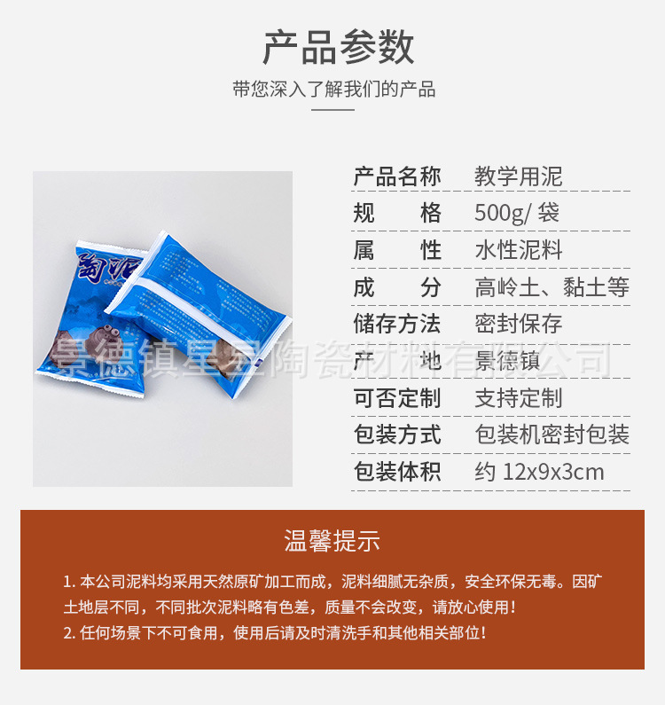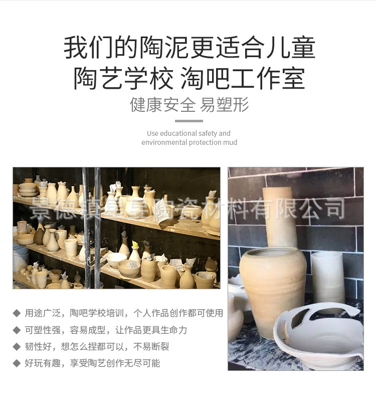 软陶泥粘土景德镇陶土瓷泥500g儿童手工陶艺免烤白泥厂家批发陶泥