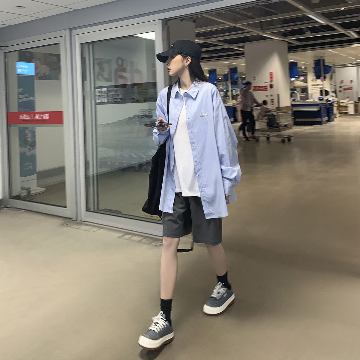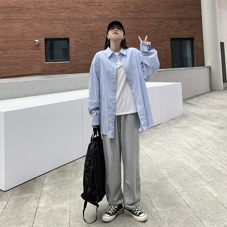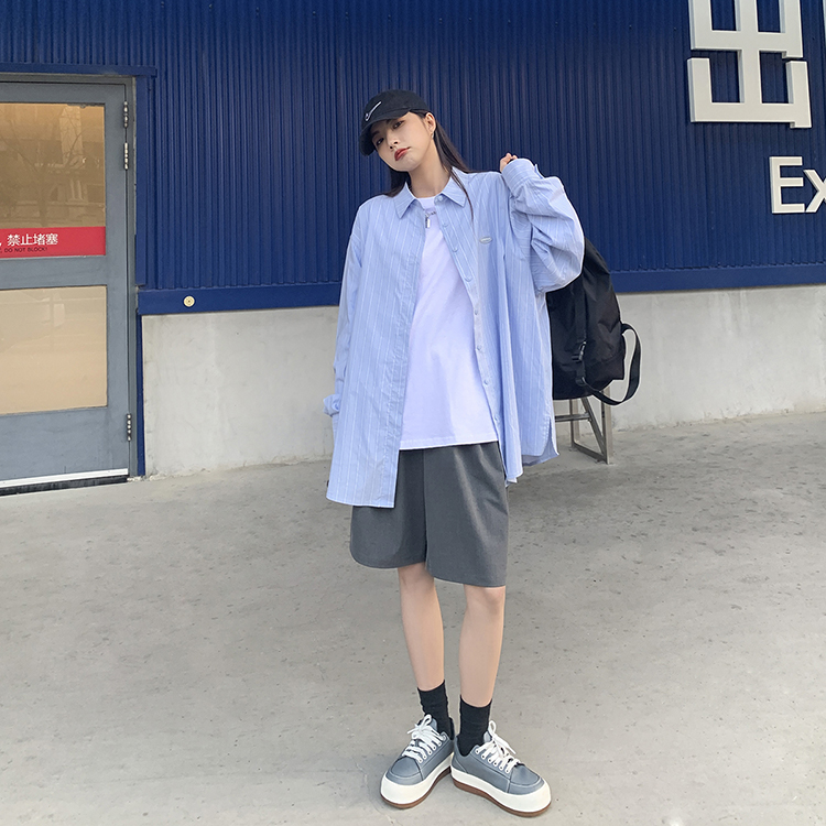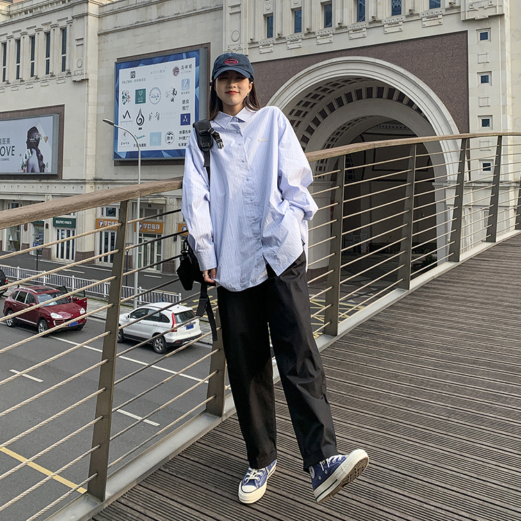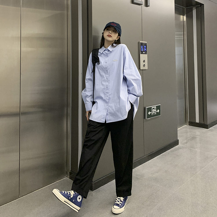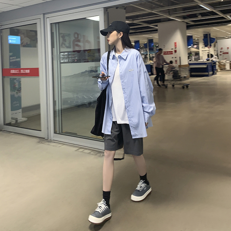 SIXI四喜家春季 立體小標 條紋襯衫女寬鬆設計感疊穿內搭長袖襯衫