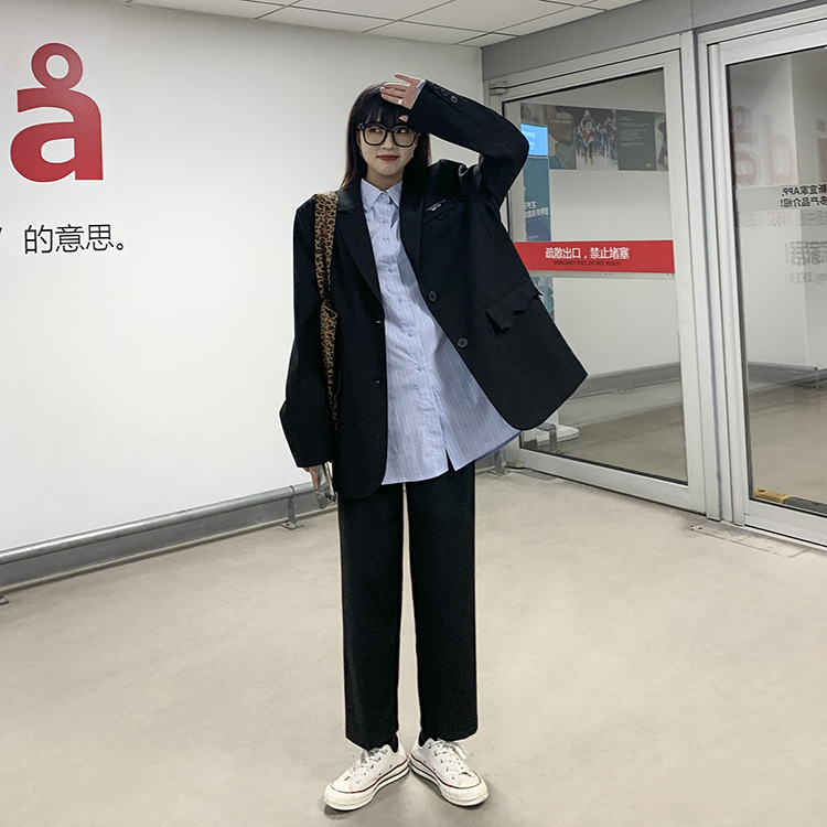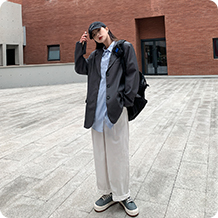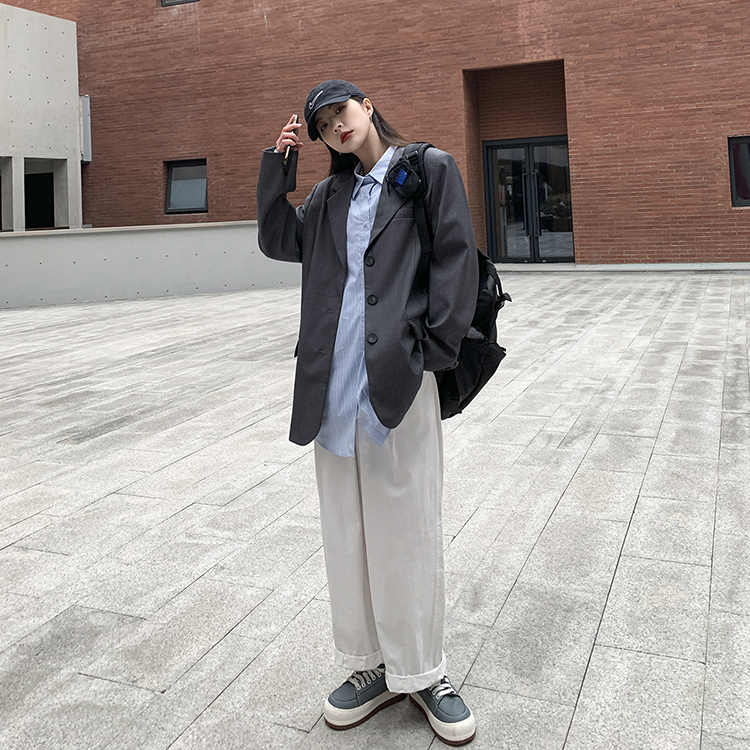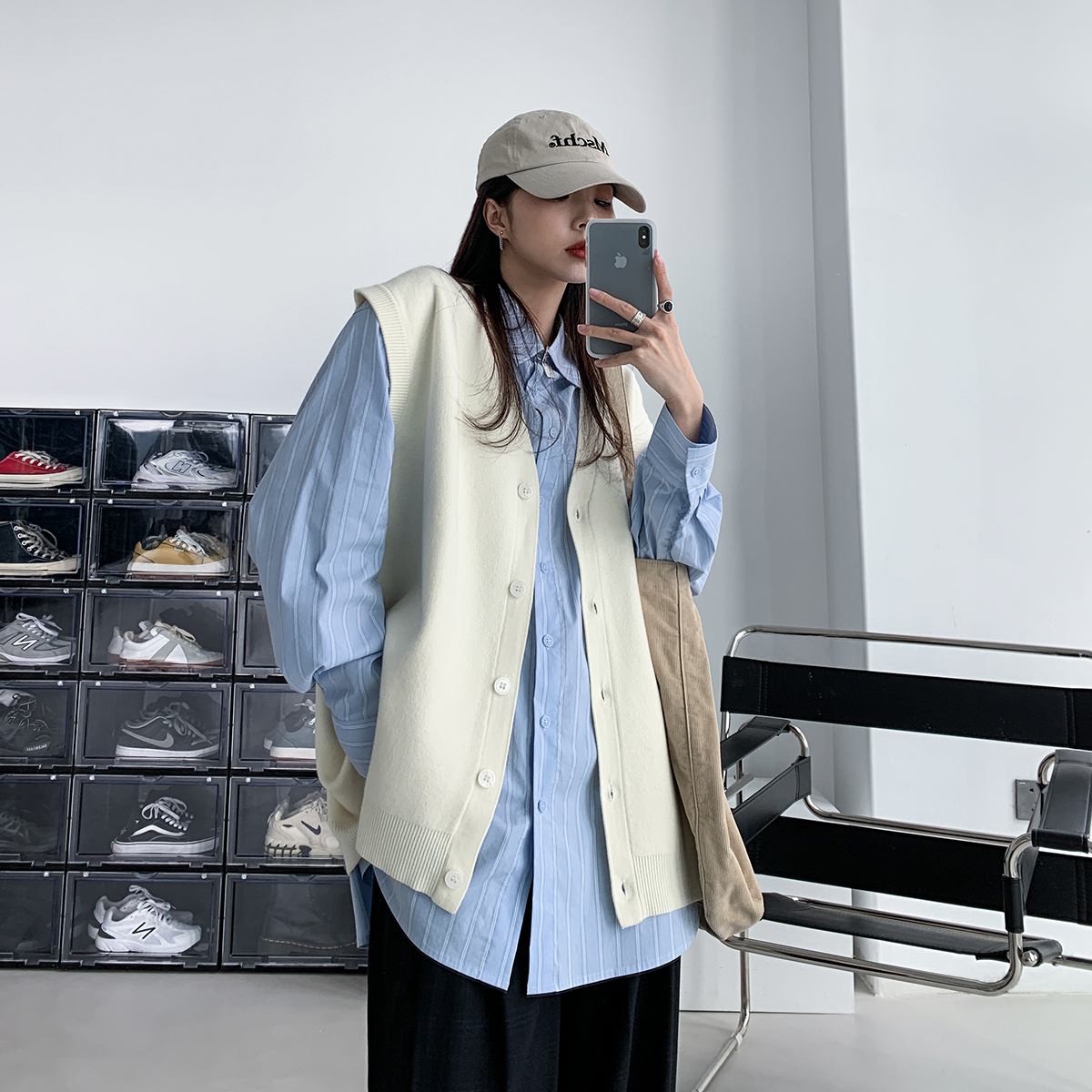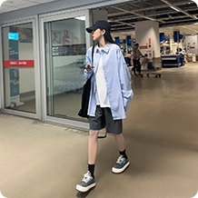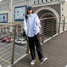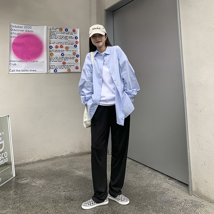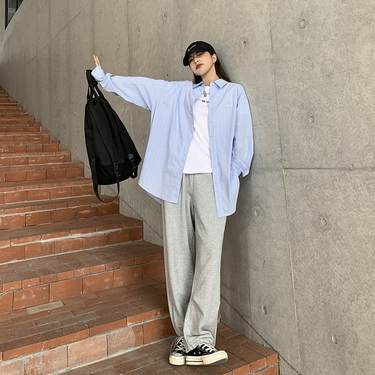 SIXI四喜家春季 立體小標 條紋襯衫女寬鬆設計感疊穿內搭長袖襯衫
