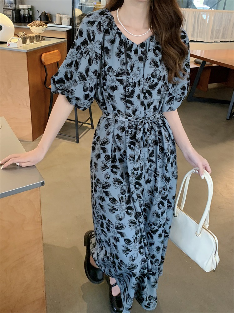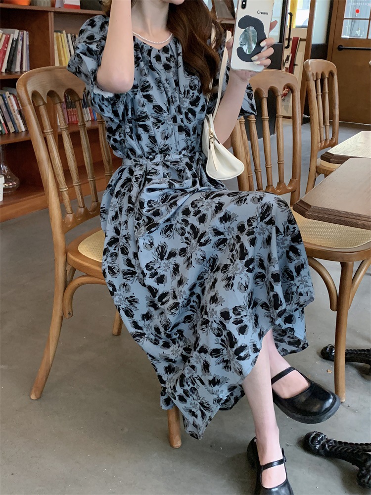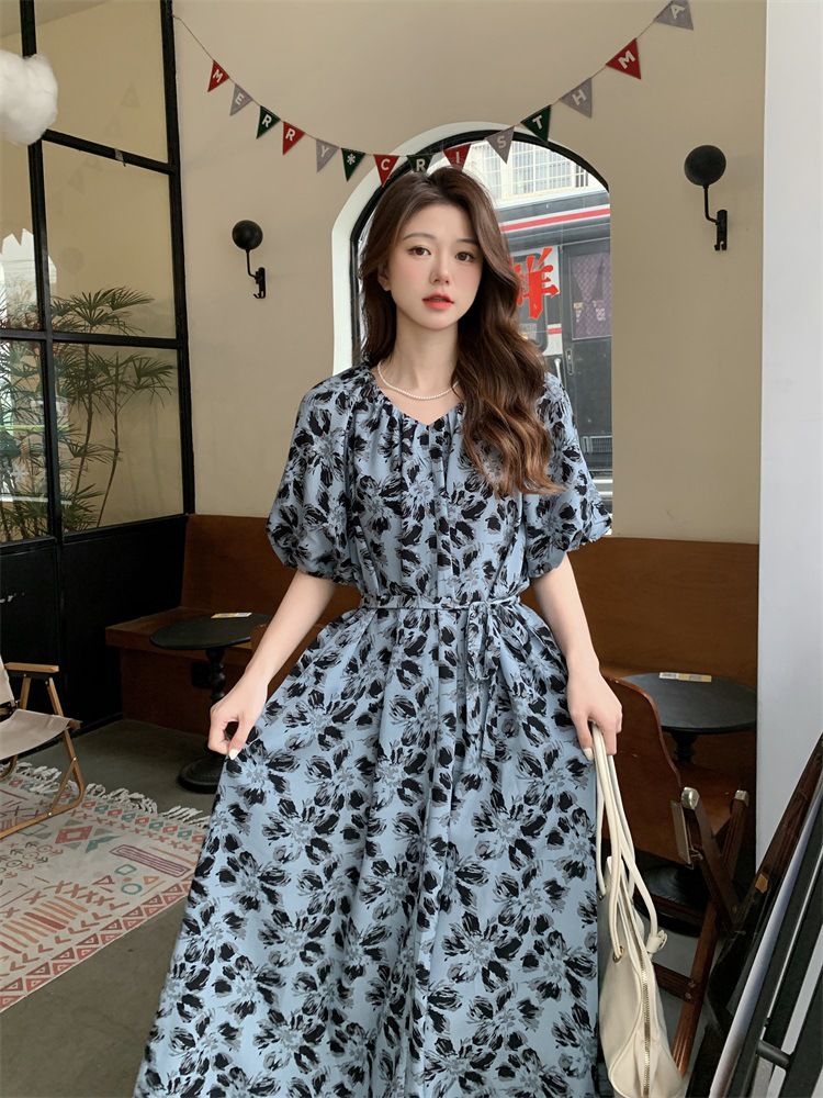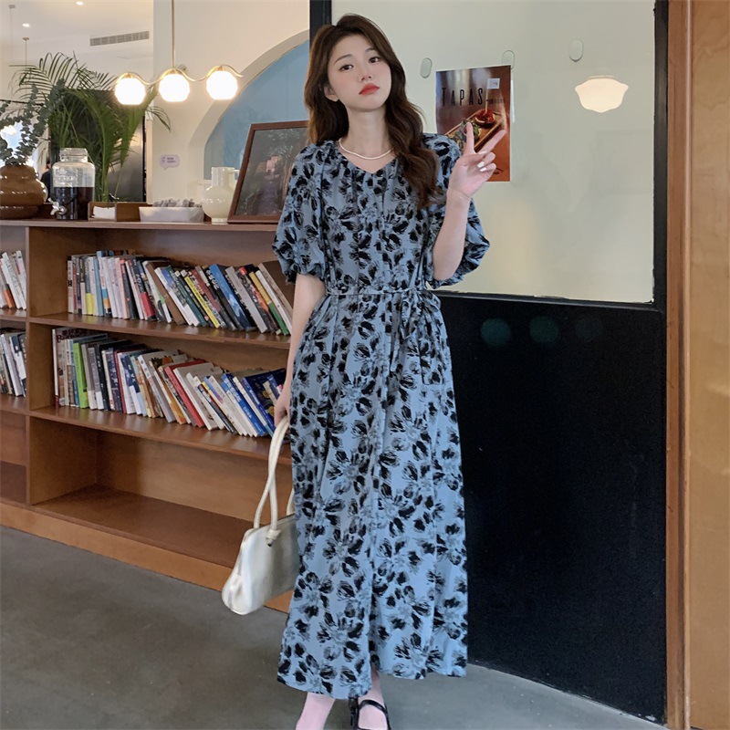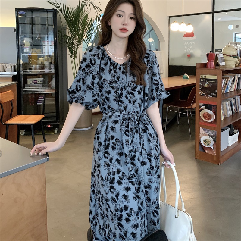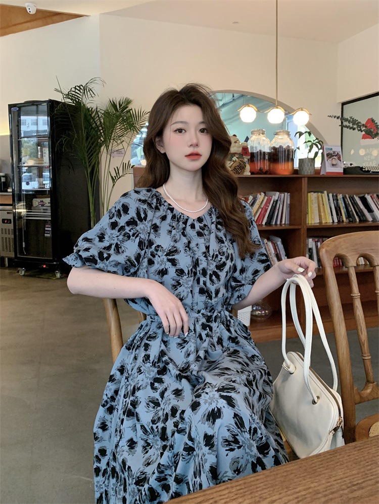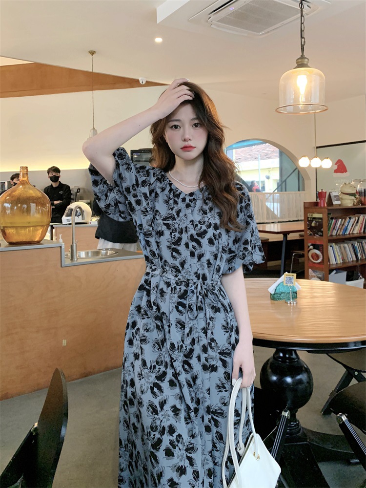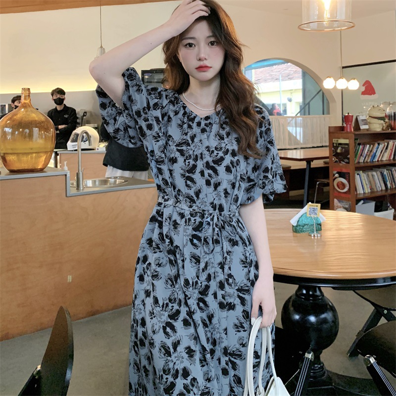 2023大码设计感法式复古中长款碎花连衣裙女夏简约气质胖MM长裙潮