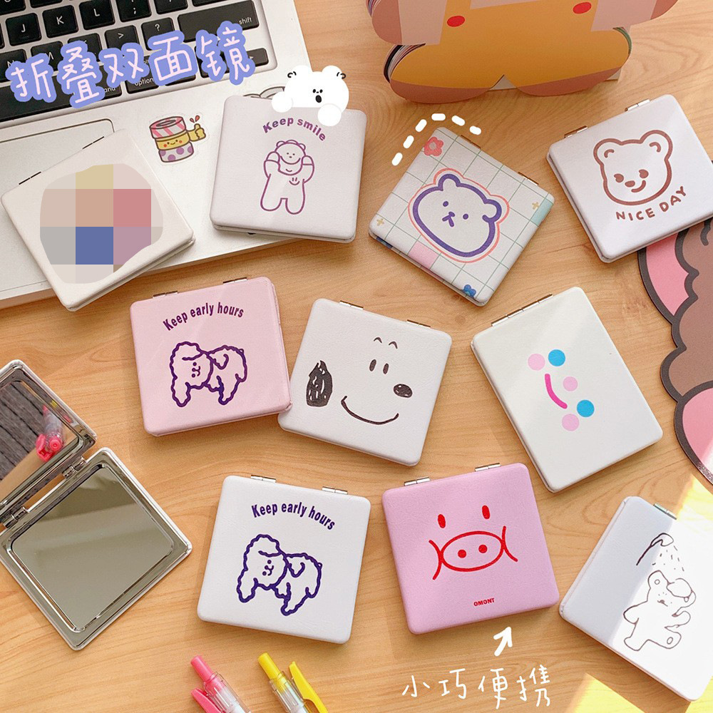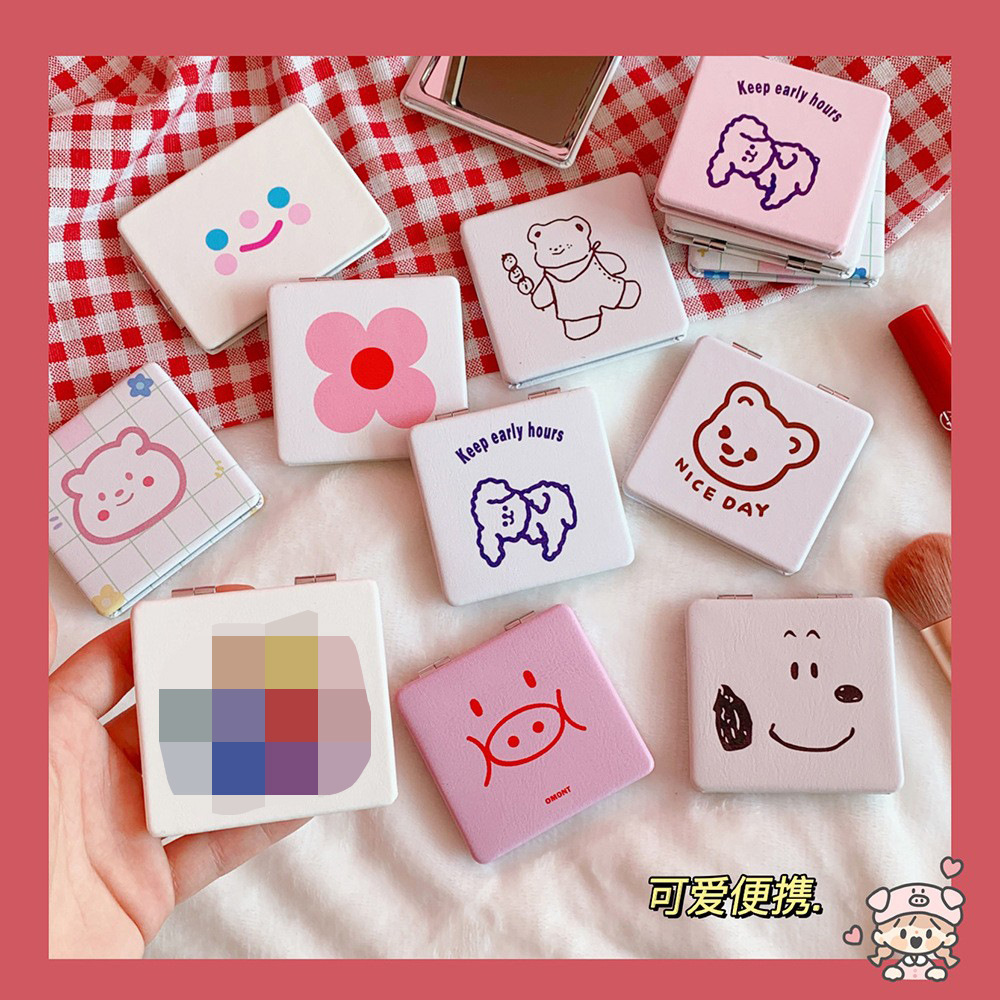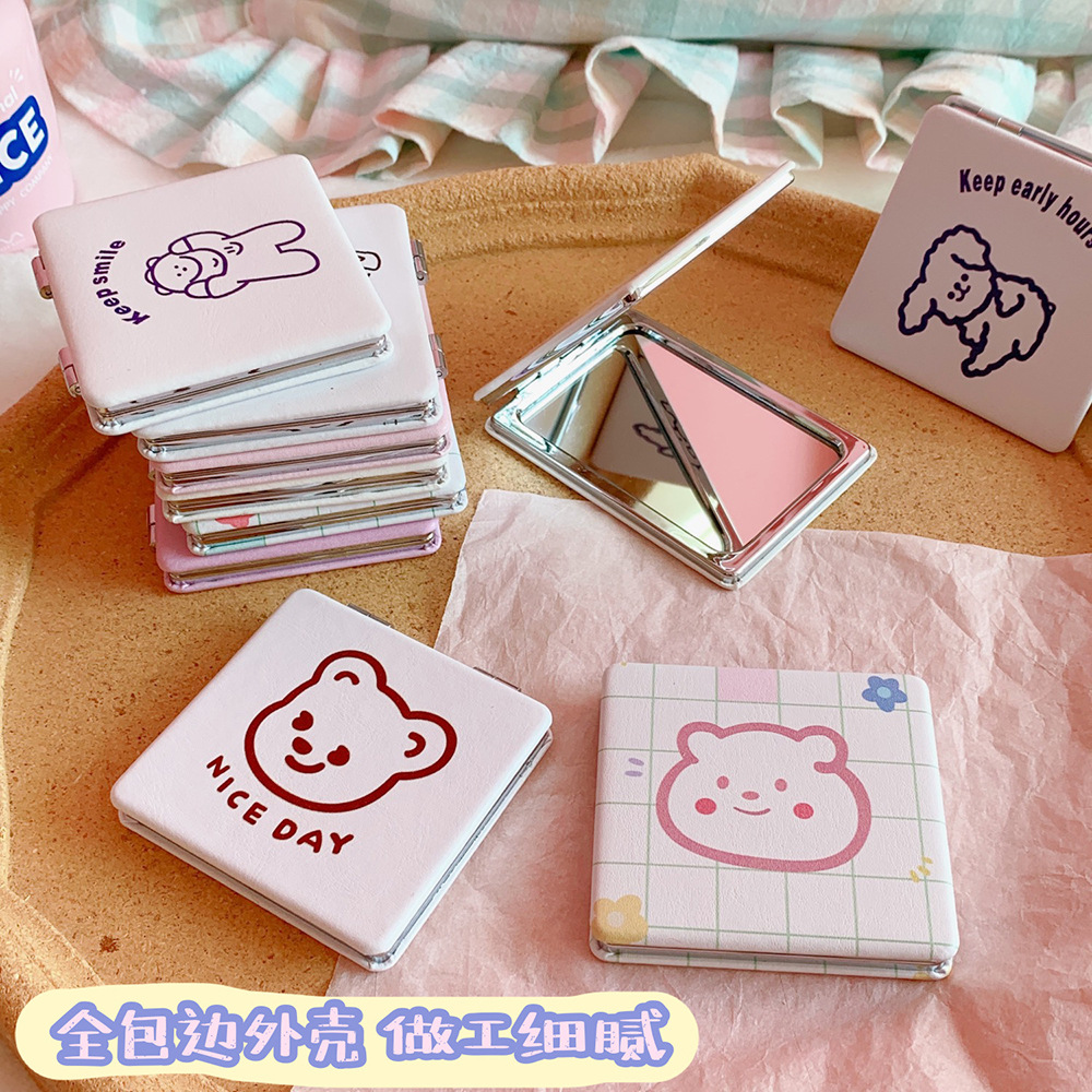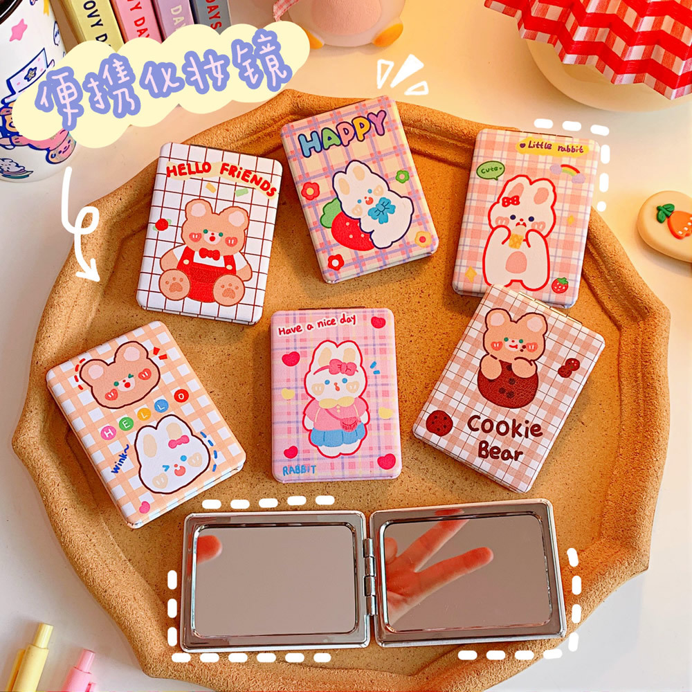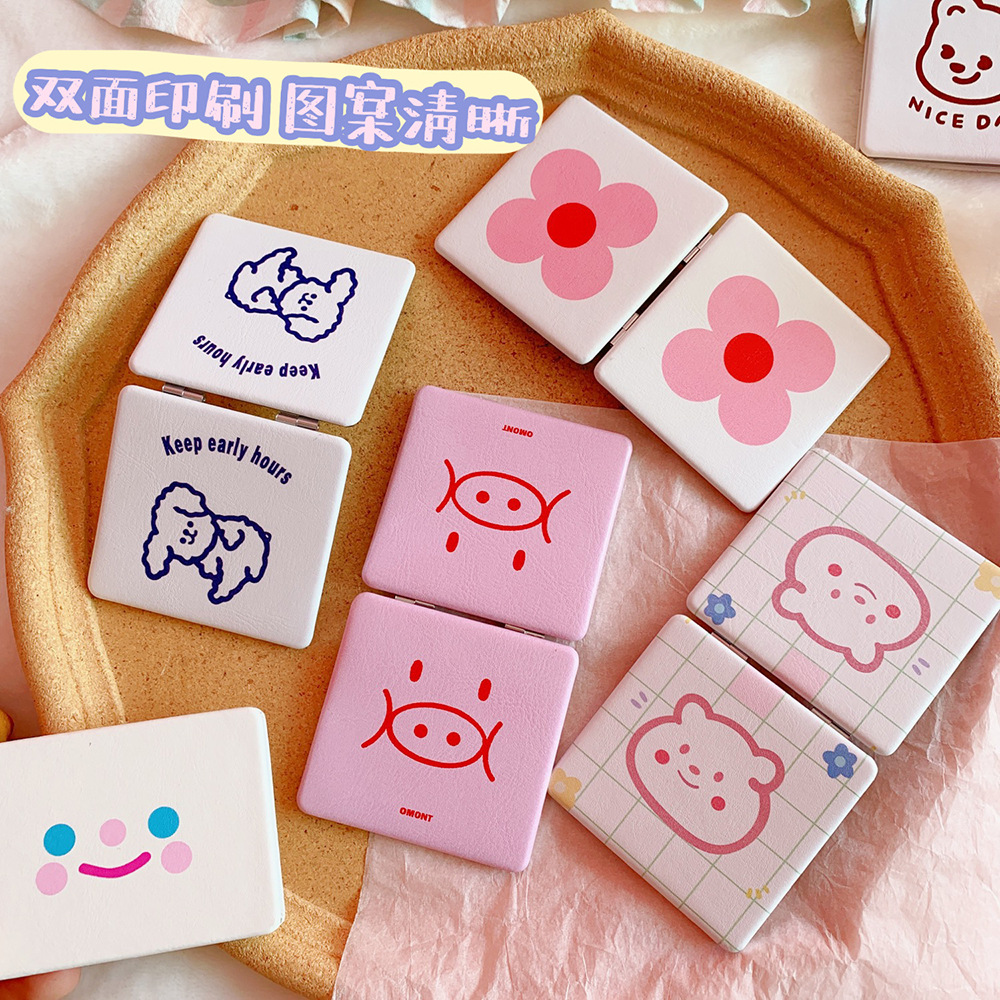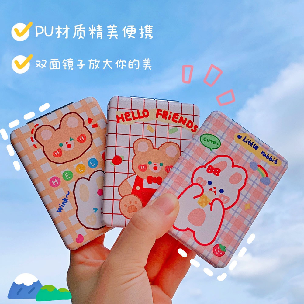 ins风可爱双面镜便携迷你随身小号化妆镜卡通云朵小熊日系镜子女