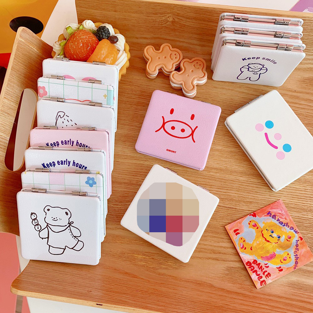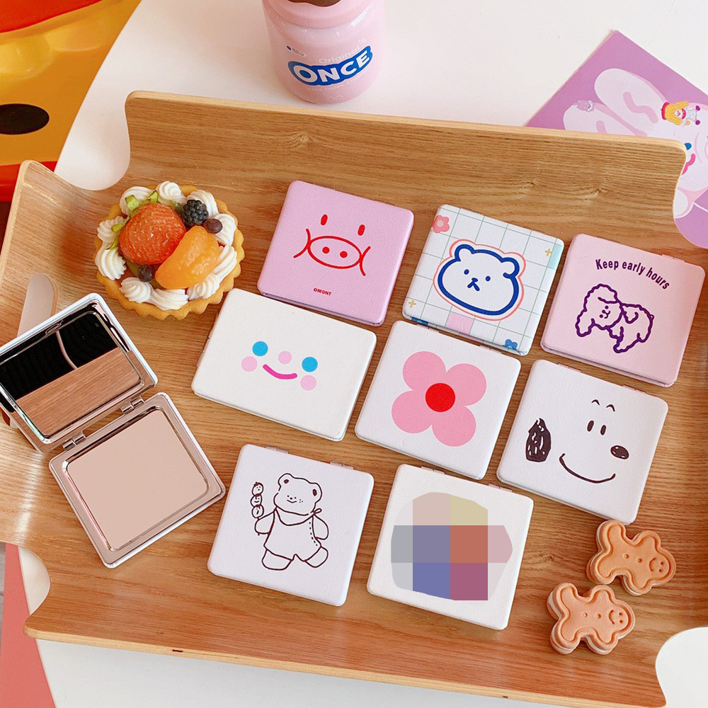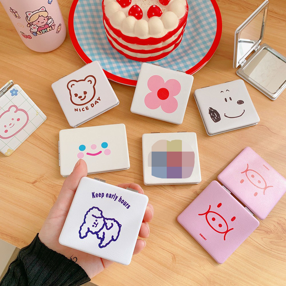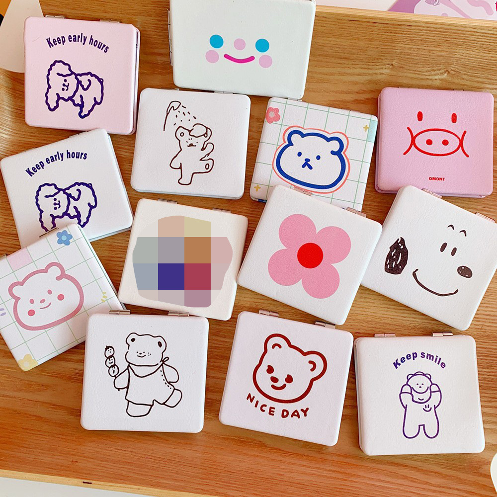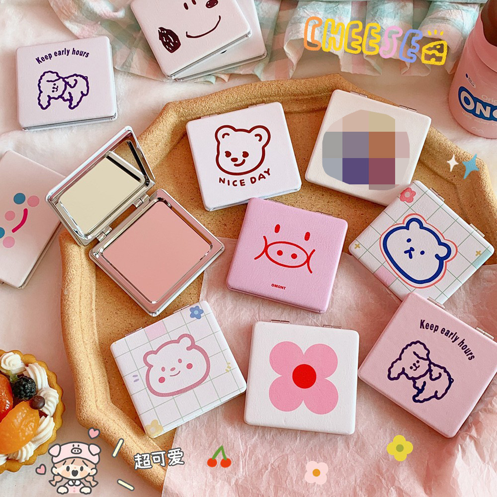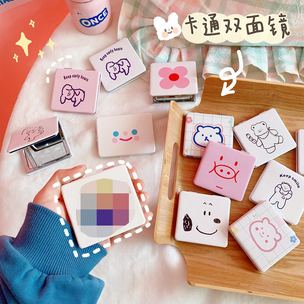 ins风可爱双面镜便携迷你随身小号化妆镜卡通云朵小熊日系镜子女