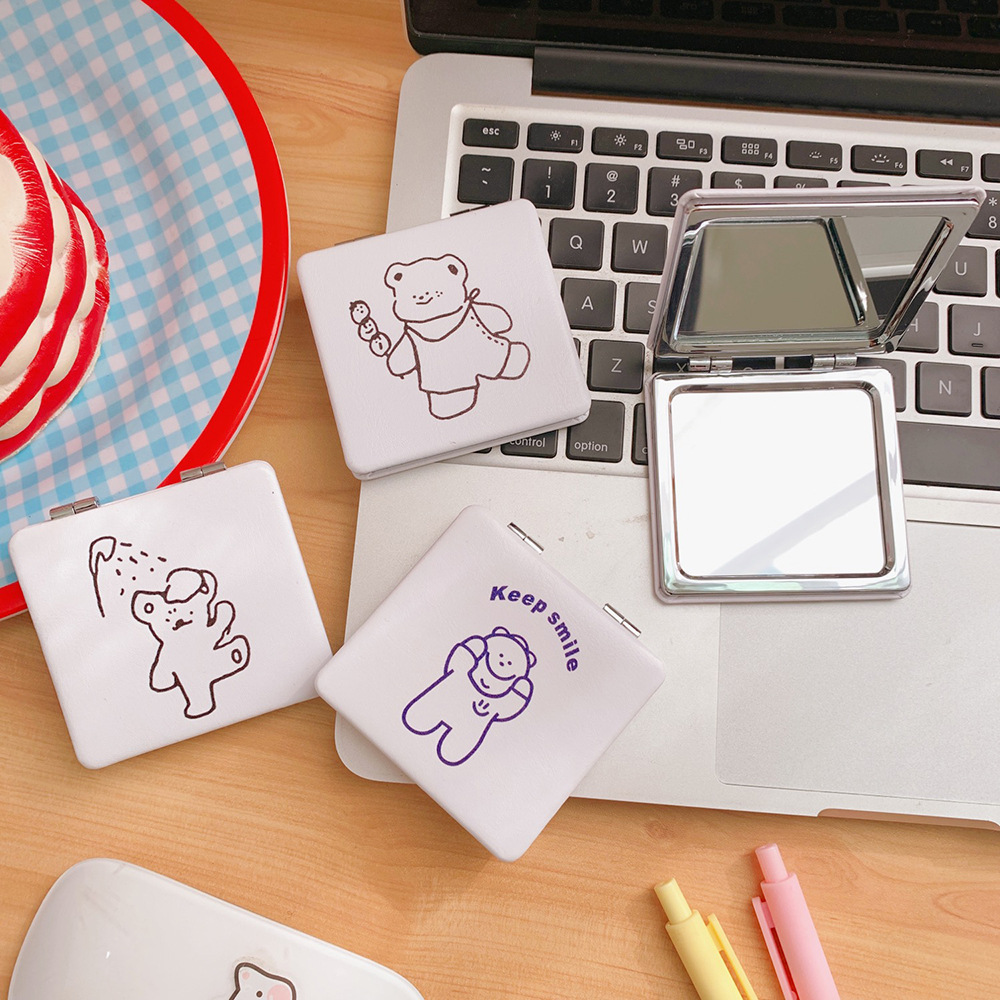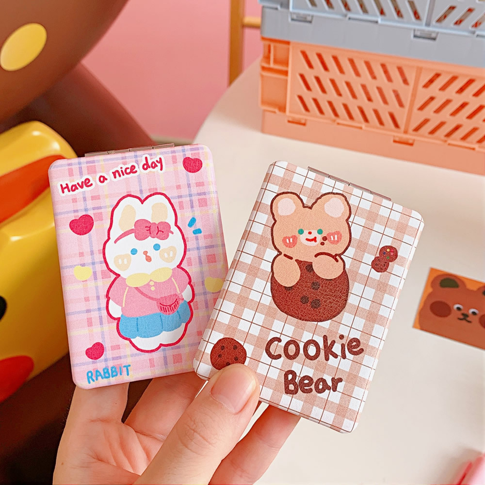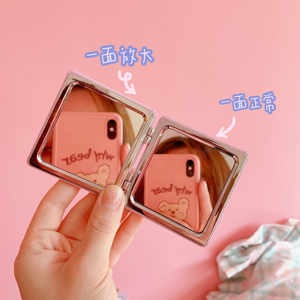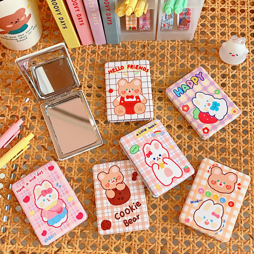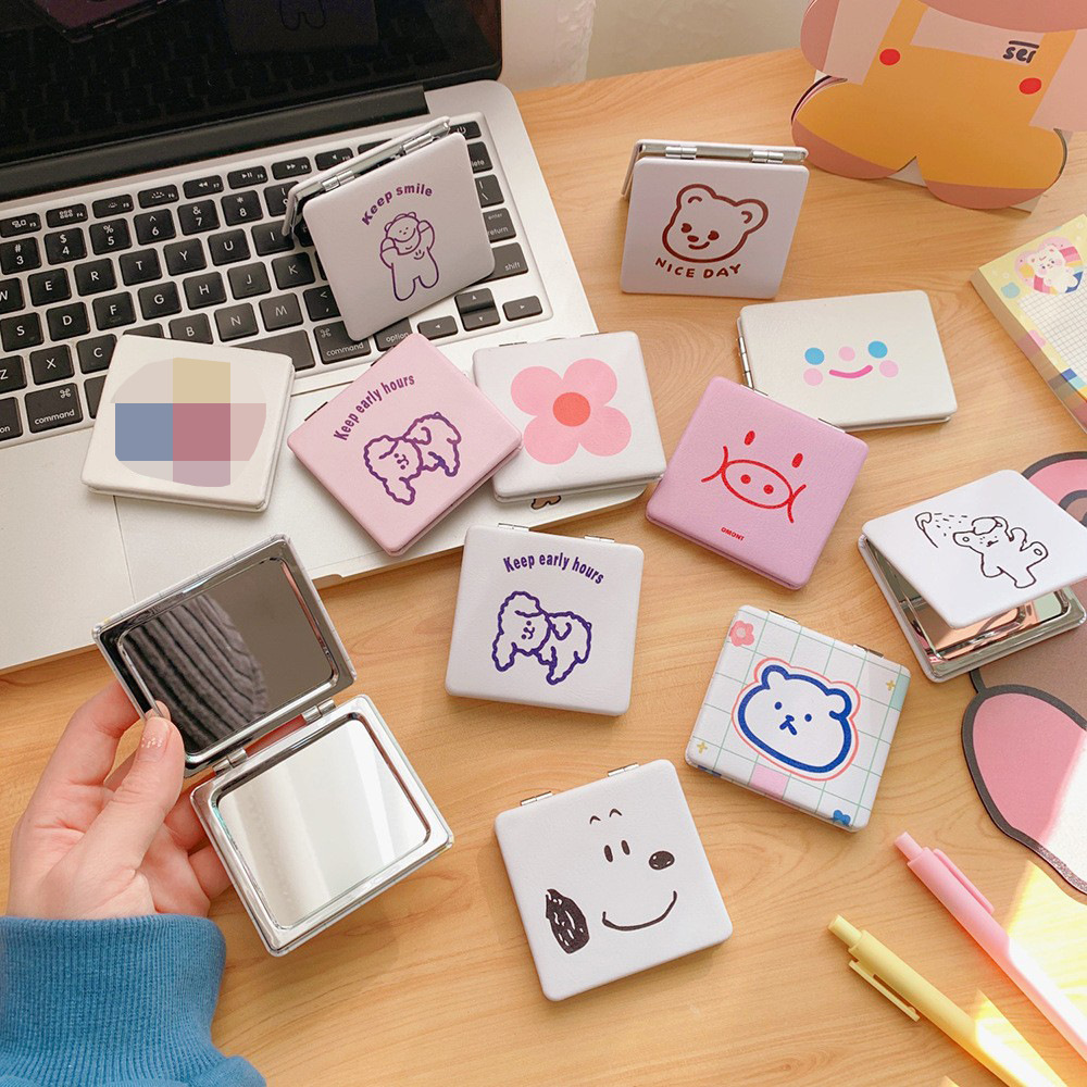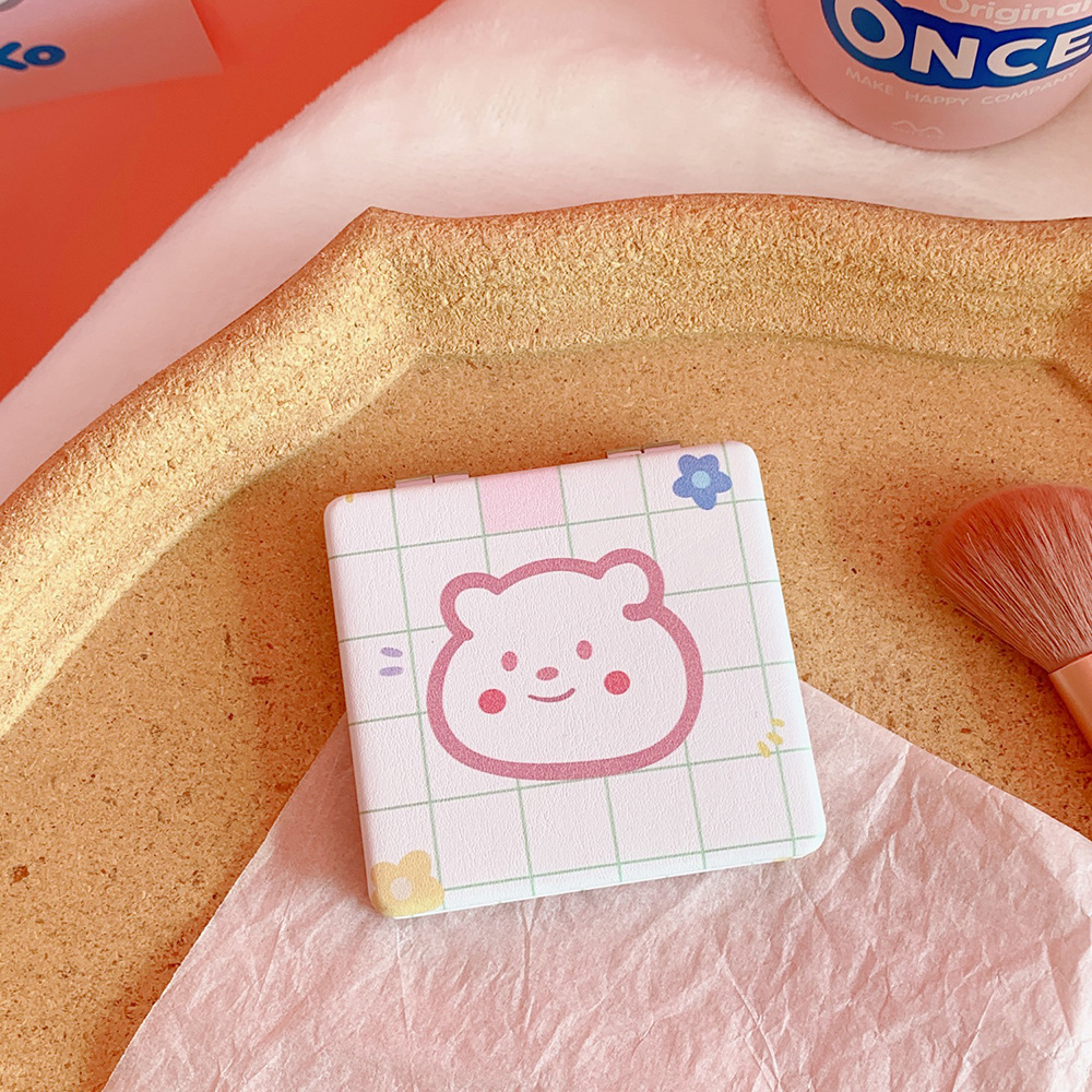 ins风可爱双面镜便携迷你随身小号化妆镜卡通云朵小熊日系镜子女