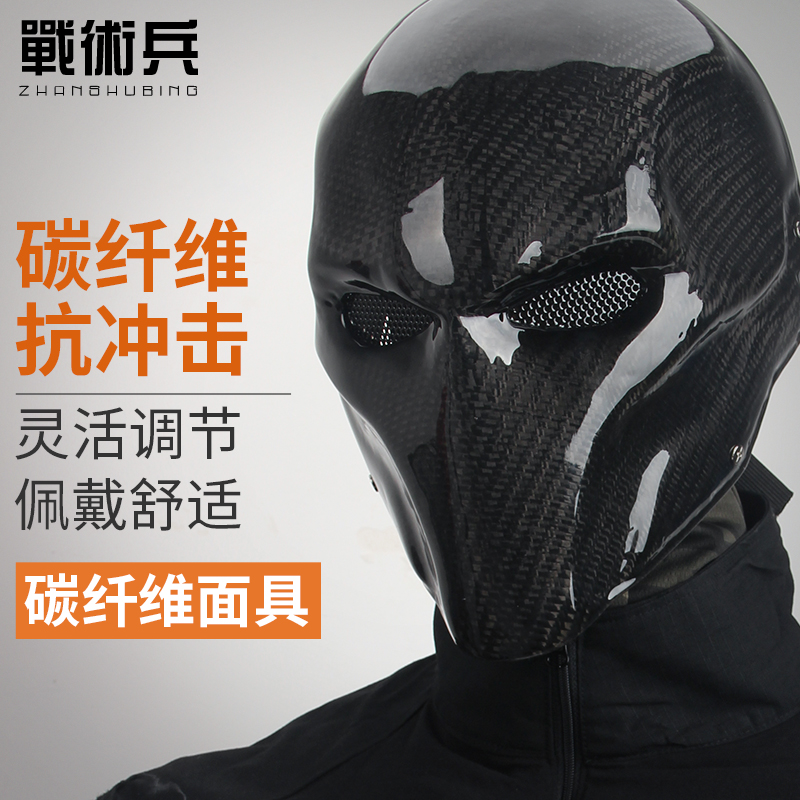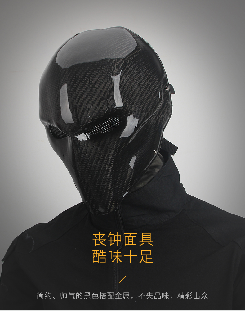 戰術兵碳纖維全臉面具戰術護臉萬聖節反派喪鐘黑色聚會街舞面罩