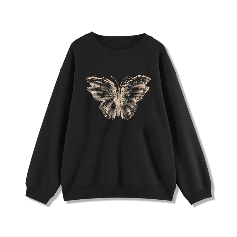 美式復古衛衣女春秋薄款2023新款爆款韓版寬鬆圓領長袖無帽上衣潮