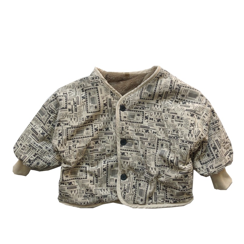 清新风印象花冬季新款儿童韩版个性加绒棉袄男女童加绒收口外套潮