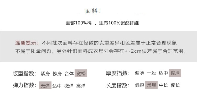 主面料成分含量 100