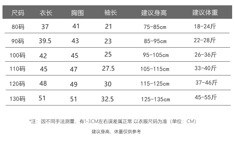 适合身高 80cm,90cm,100cm,110cm,120cm,130cm